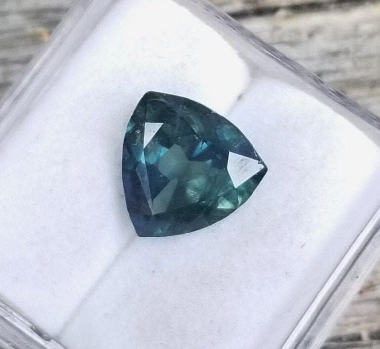One of kind large sapphire triangle shape September gemstone weight: 2.84ct. size: 9x8.9 mm pear triangle. clarity: some noticeable inclusions factored into the sapphire price. origin: Ceylon. Inventory