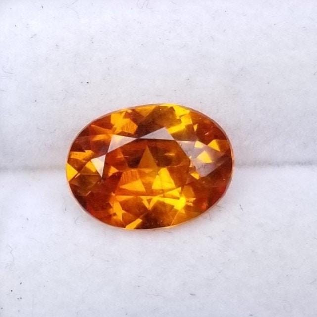Unique sapphire for jewellery. weight: 1.83 cts. size: 9 x 6.7 mm oval. clarity: eye clean color: golden orange. origin: Ceylon.