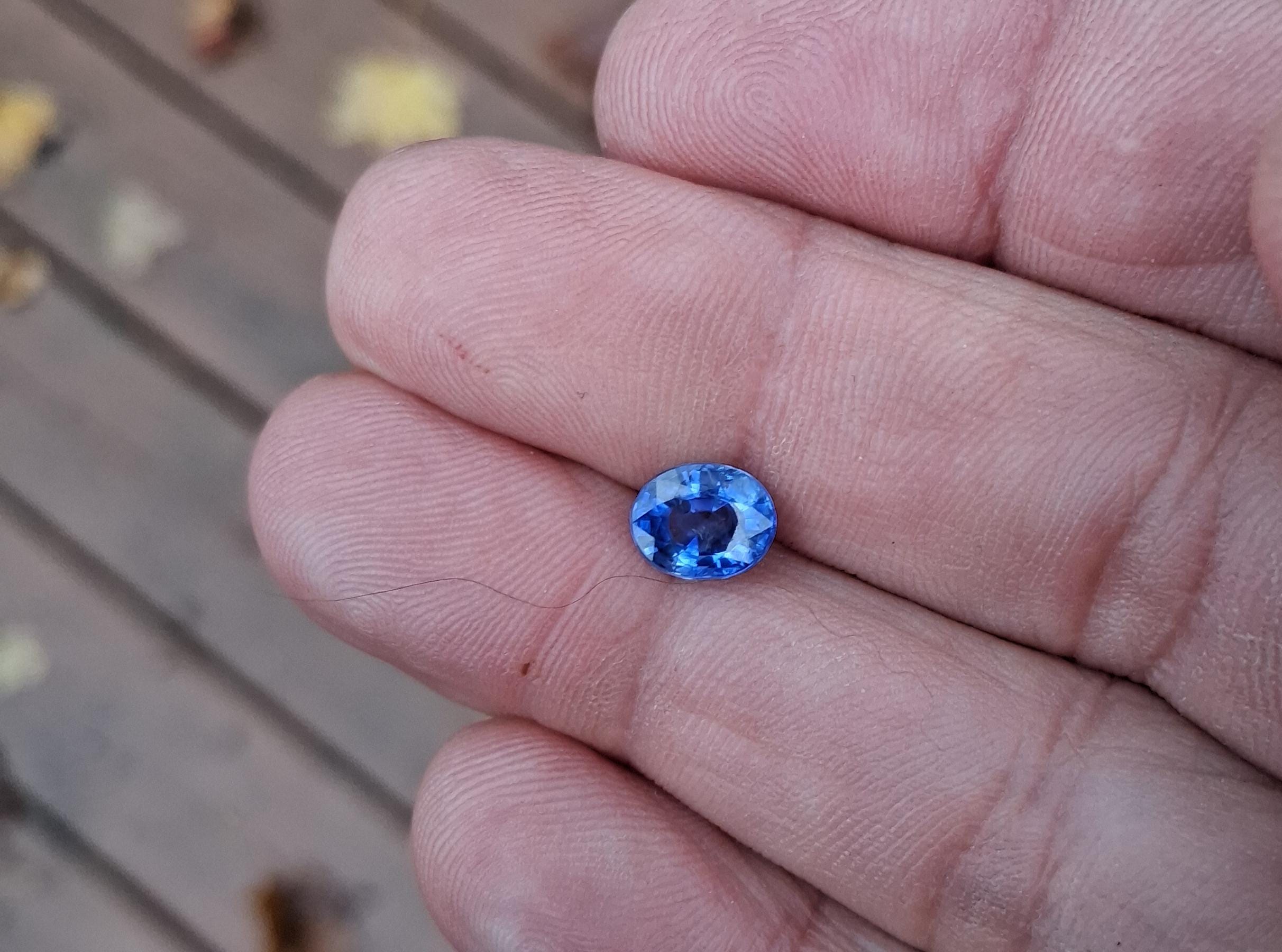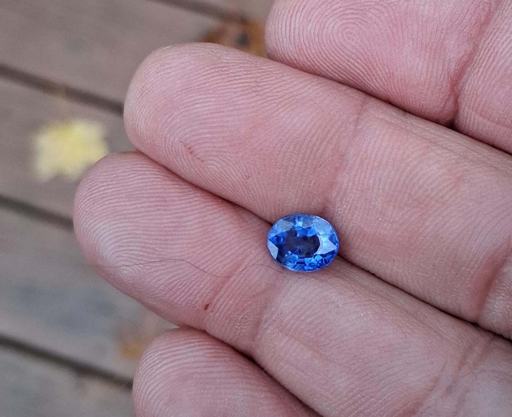 Natural velvet blue sapphire for engagement ring. weight: 1.66 ct size: 7.5x 5.5 mm color: medium blue. clarity: minor inclusions but not detrimental to the beauty of the gemstone, shape: oval. origin: Ceylon.
