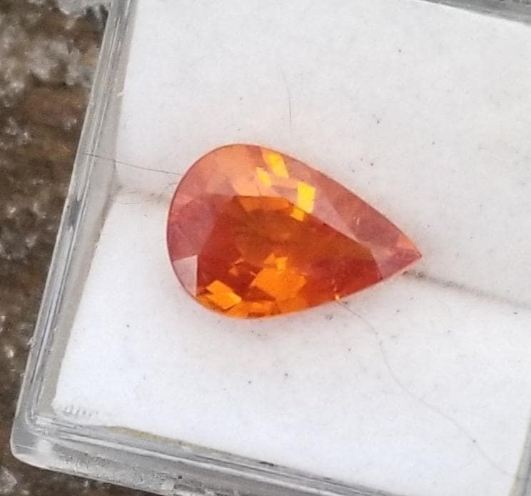 Mandarin Garnet pear shape for jewellery January birthstone gift for her jewellery. weight: 3.20 cts, size: 11.4x7.5 mm origin: Africa. color: orange. clarity: some inclusions typical of this material.