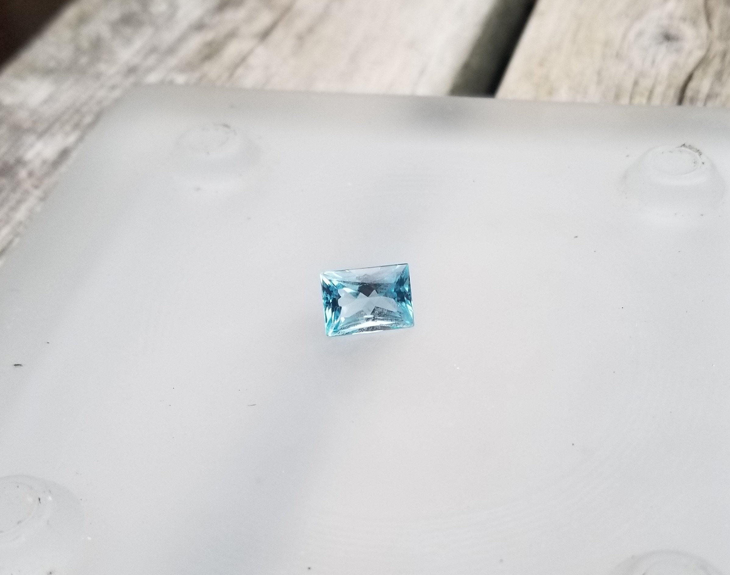 Unique blue topaz cut for a pendant. Square cushion briolette carved insert bail.