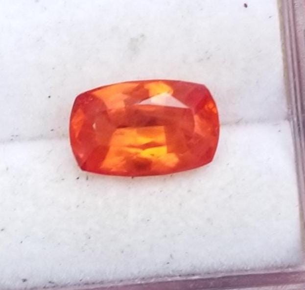 Unique color sunset sapphire cushion shape, one of a kind gemstone for engagement ring, September birthstone for custom jewelry. Be treatment is a process in which the beryllium element (a common constituent in some gemstones) has been added during heat treatment. Beryllium reduces blue tones in sapphires contributing to some of the most striking colors seen in sapphires. weight: 2.36cts, size: 9.7x6.4 mm cushion