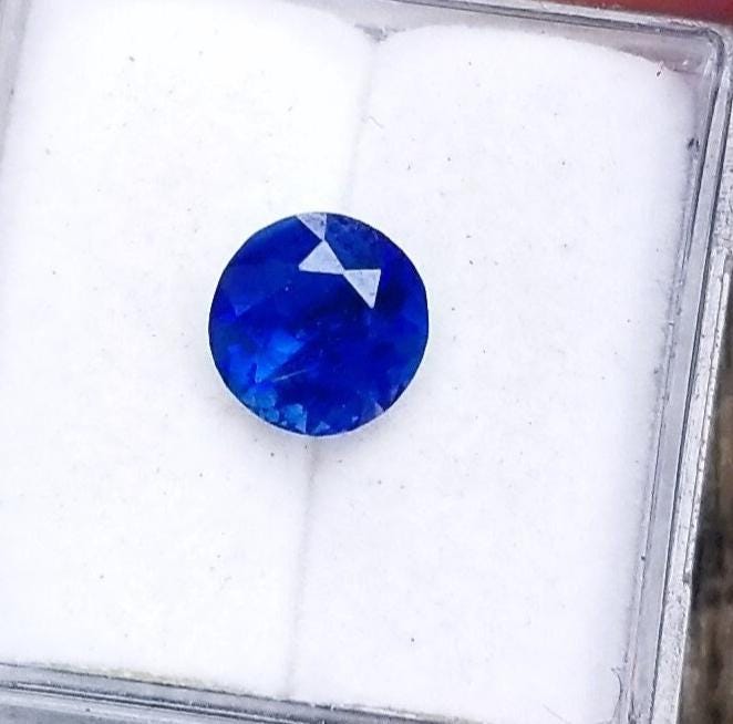 Unique Royal Blue sapphire Portuguese cut round shape September Birthstone for Anniversary ring. Color is medium blue . weight: 1.57 cts. size: 6.5 mm round clarity: no visible inclusions to the naked eye
