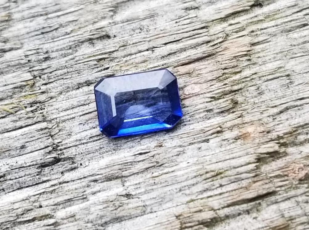 Natural Ceylon Blue sapphire for engagement ring, royal blue color sapphire emerald cut shape for jewelry design. weight: 0.90 cts. size: 7 x 5 mm emerald cut. color: medium bright blue, clarity: eye clean , origin: Ceylon