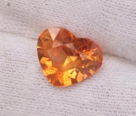Orange sapphire for engagement ring or unique pendant for her anniversary ring. Precision cut into heart shape by Rogerio Graca. We assume this is a Be treated sapphires so we price it accordingly. BE treatment is 100% stable. Weight: 3.35 cts, size: 10.5x 8.9 mm heart shape, clarity: very good, color: orange, origin: Ceylon