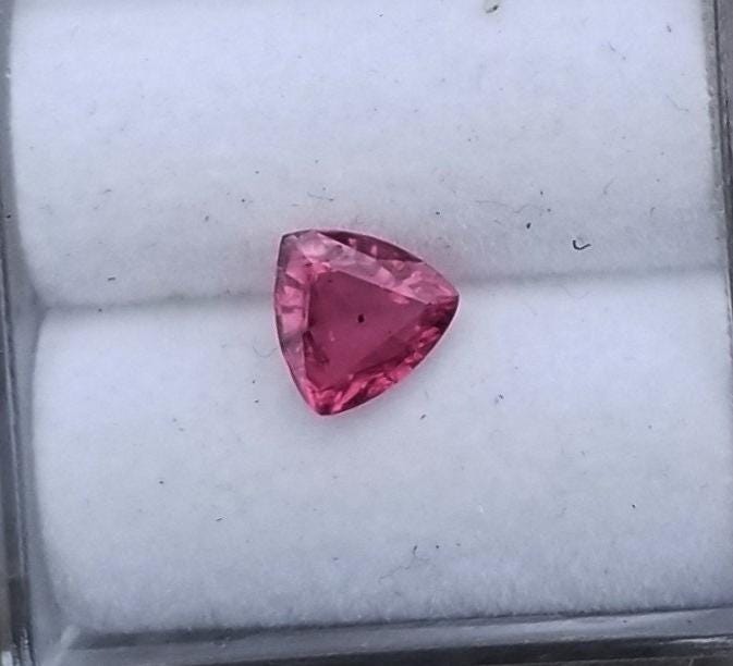 One of a kind color triangle ruby for jewellery weight: 0.73 ct. size: 5.5 mm trilliant. color : pinkish red. clarity: very minor inclusions. origin: Sri Lanka