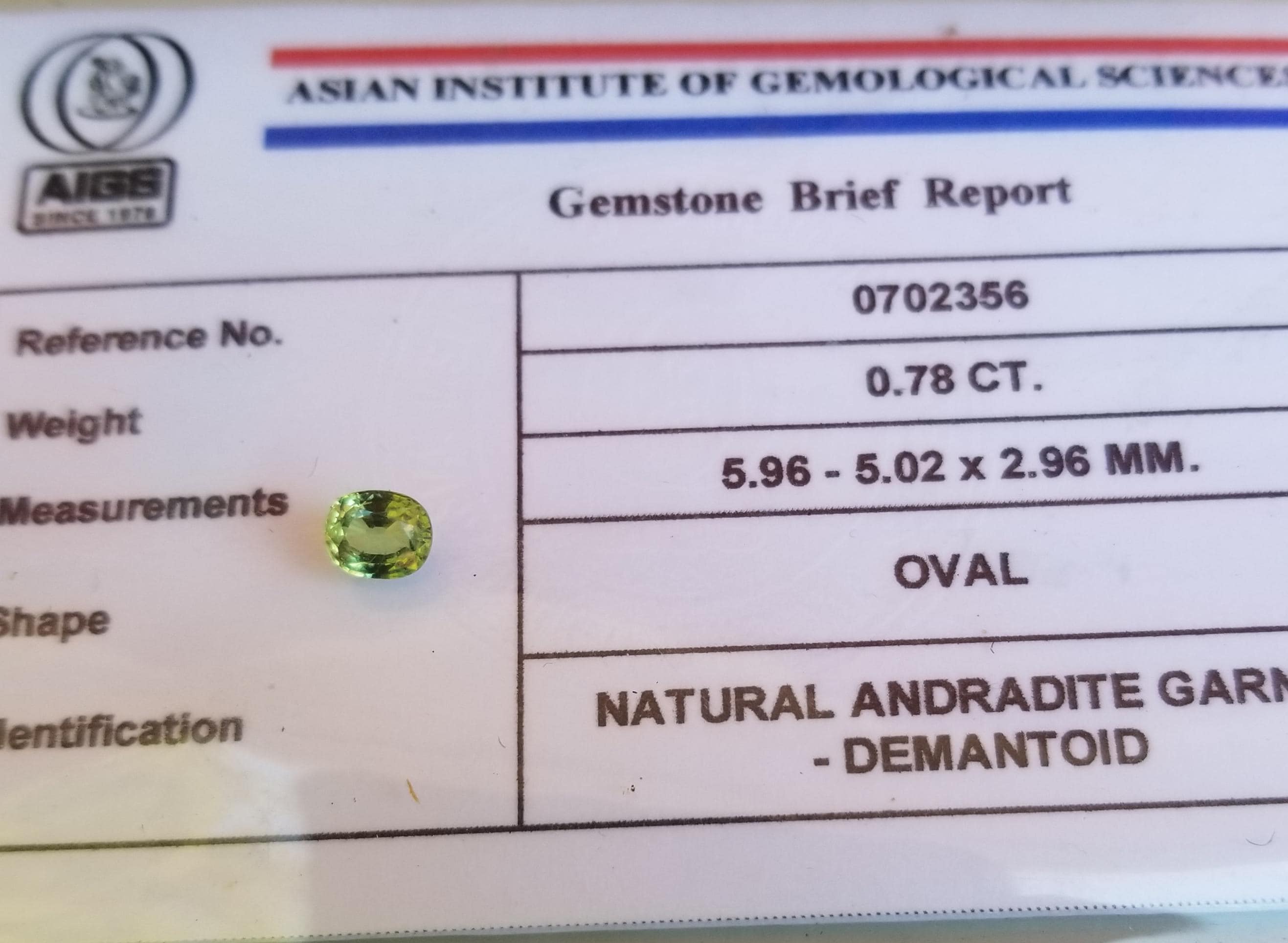 Natural oval demantoid garnet for jewellery gift for her, January birthstone. weight: 0.78 ct, clarity: eye clean, size: 6x5mm, origin: Tanzania