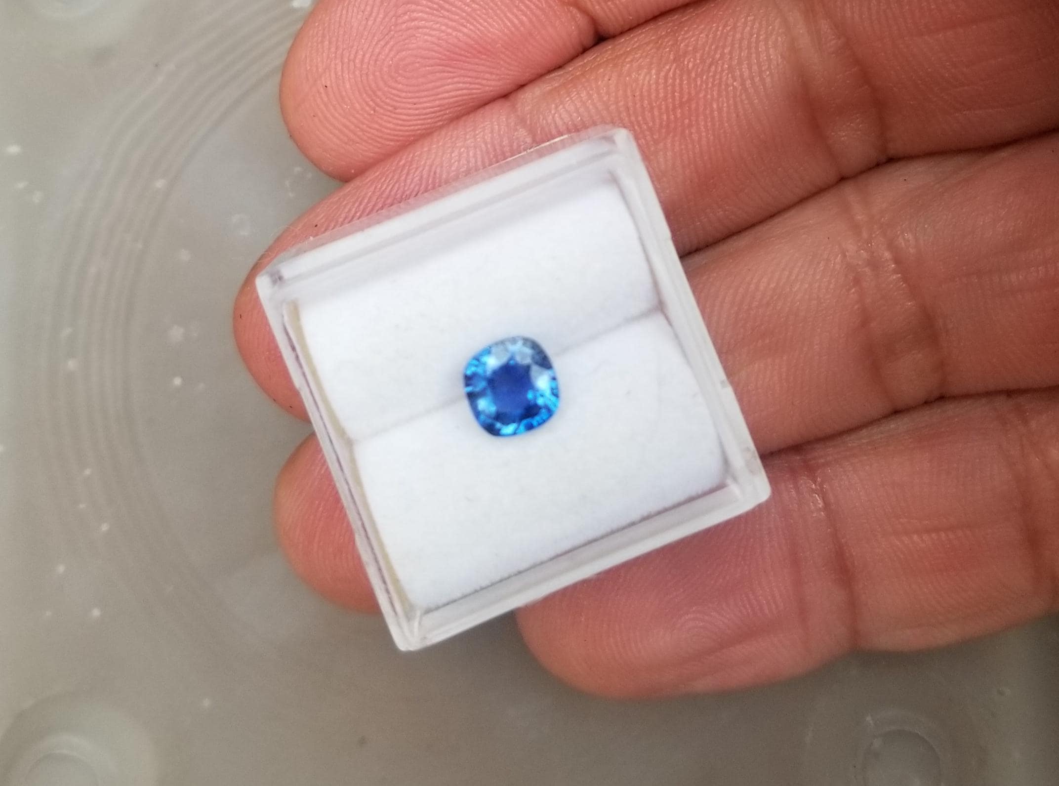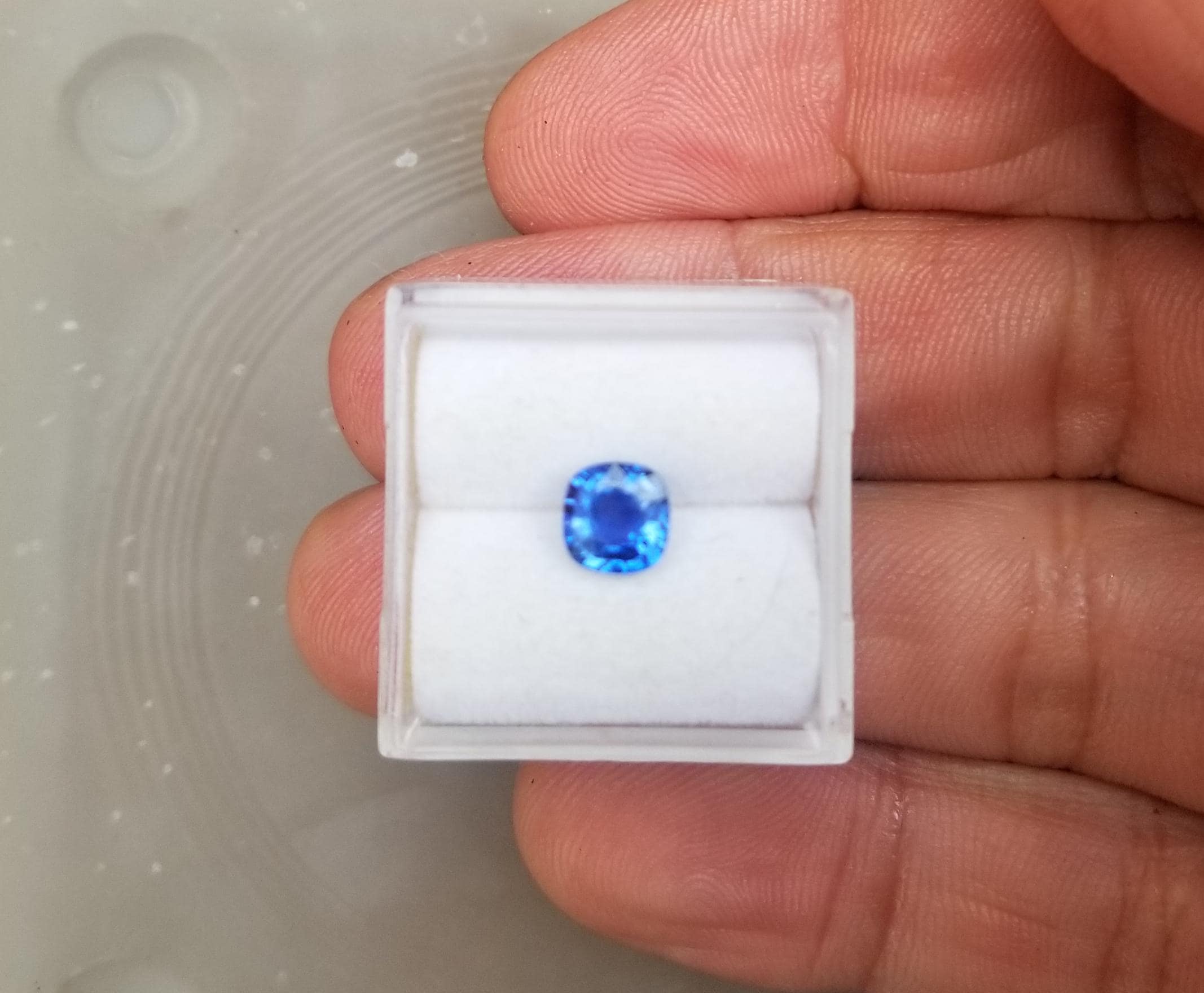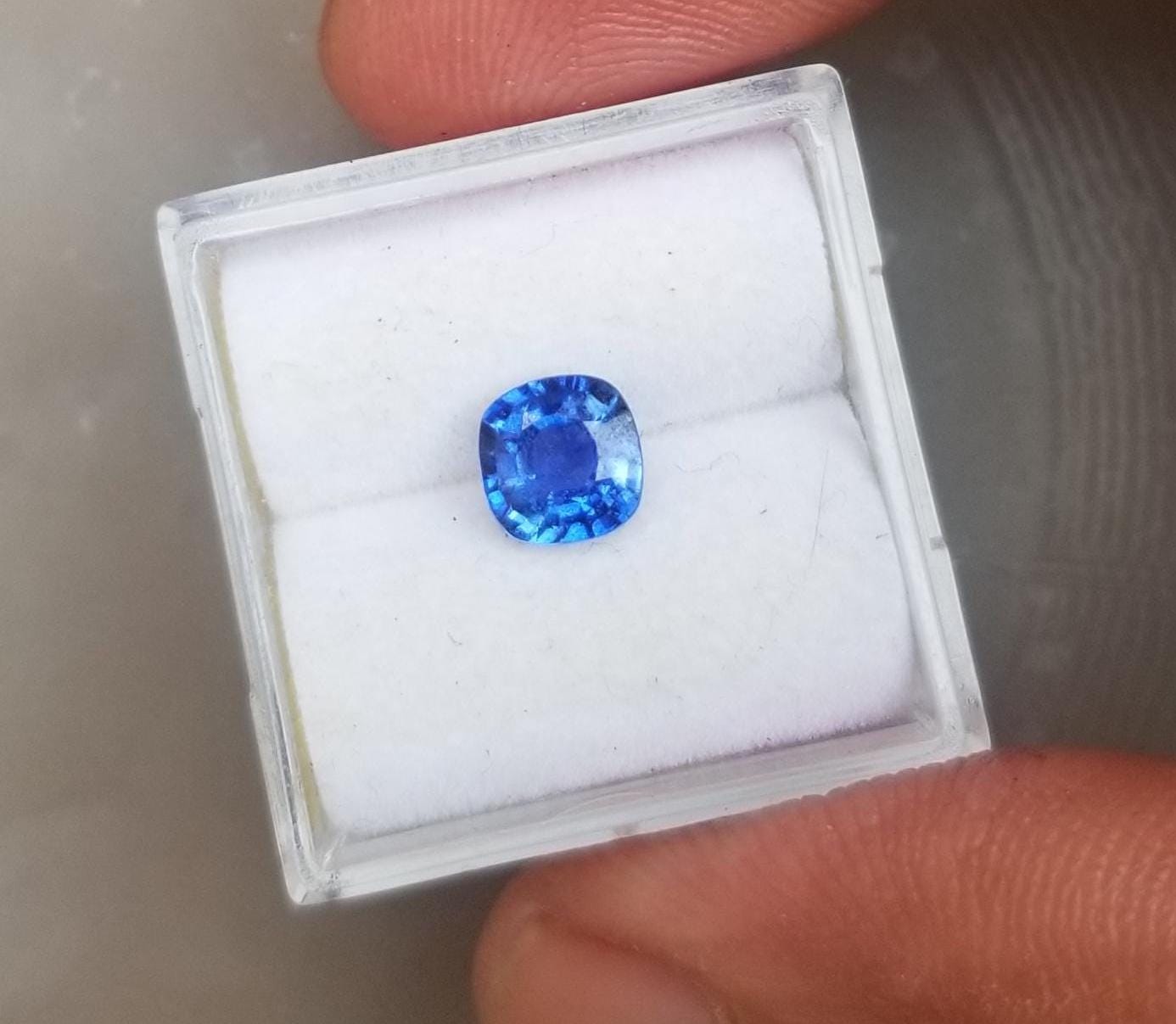Fine Ceylon cushion blue sapphire 5.5 mm September birthstone jewelry gift for her. Weight: 1.02ct, eye clean gemstone, free shippig