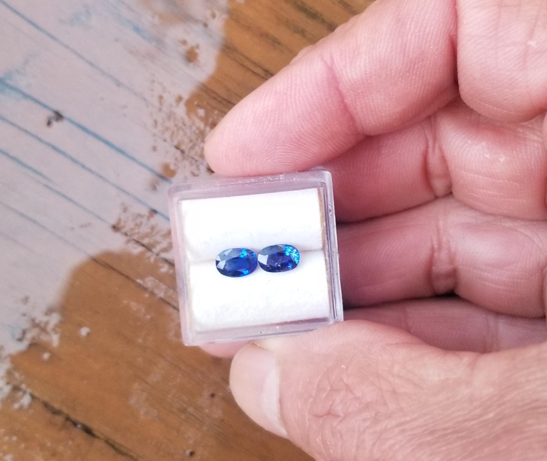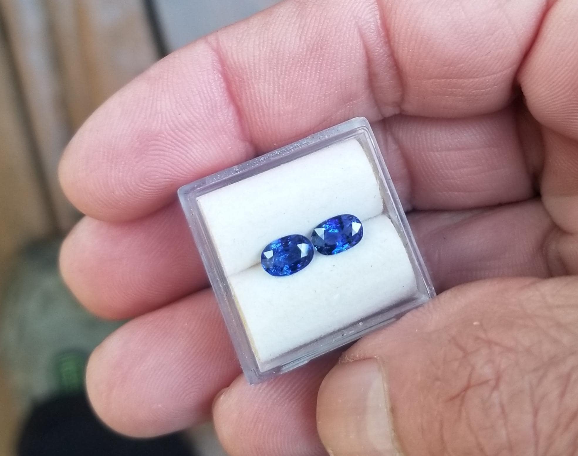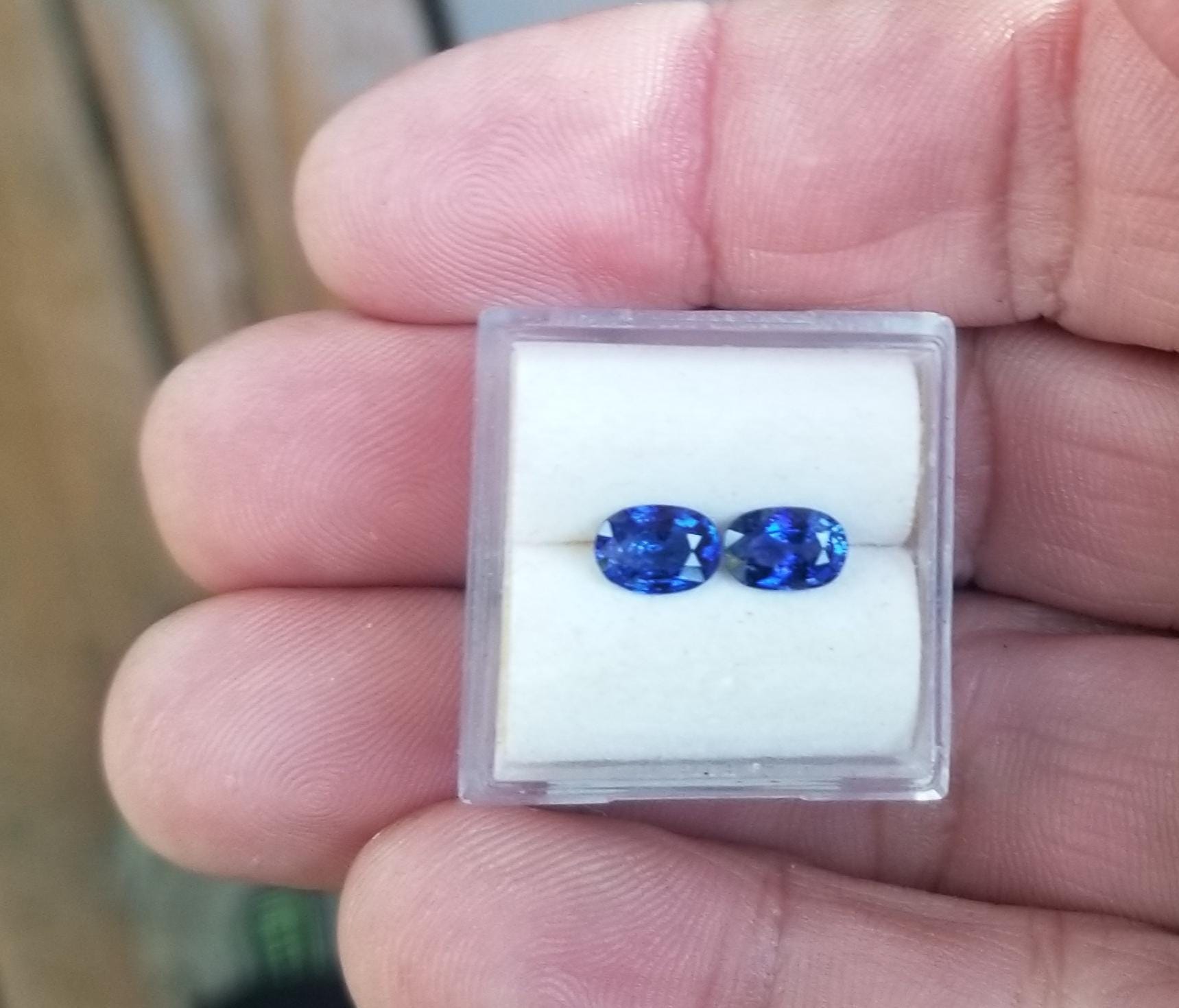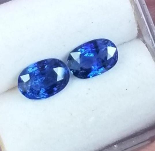 Blue velvet sapphires pair for earrings anniversary gift , September birthstone for earrings jewelry . total weight: 1.38 cts. size: 6.4 x4.5mm oval, clarity: eye clean , color: blue. origin: Ceylon.