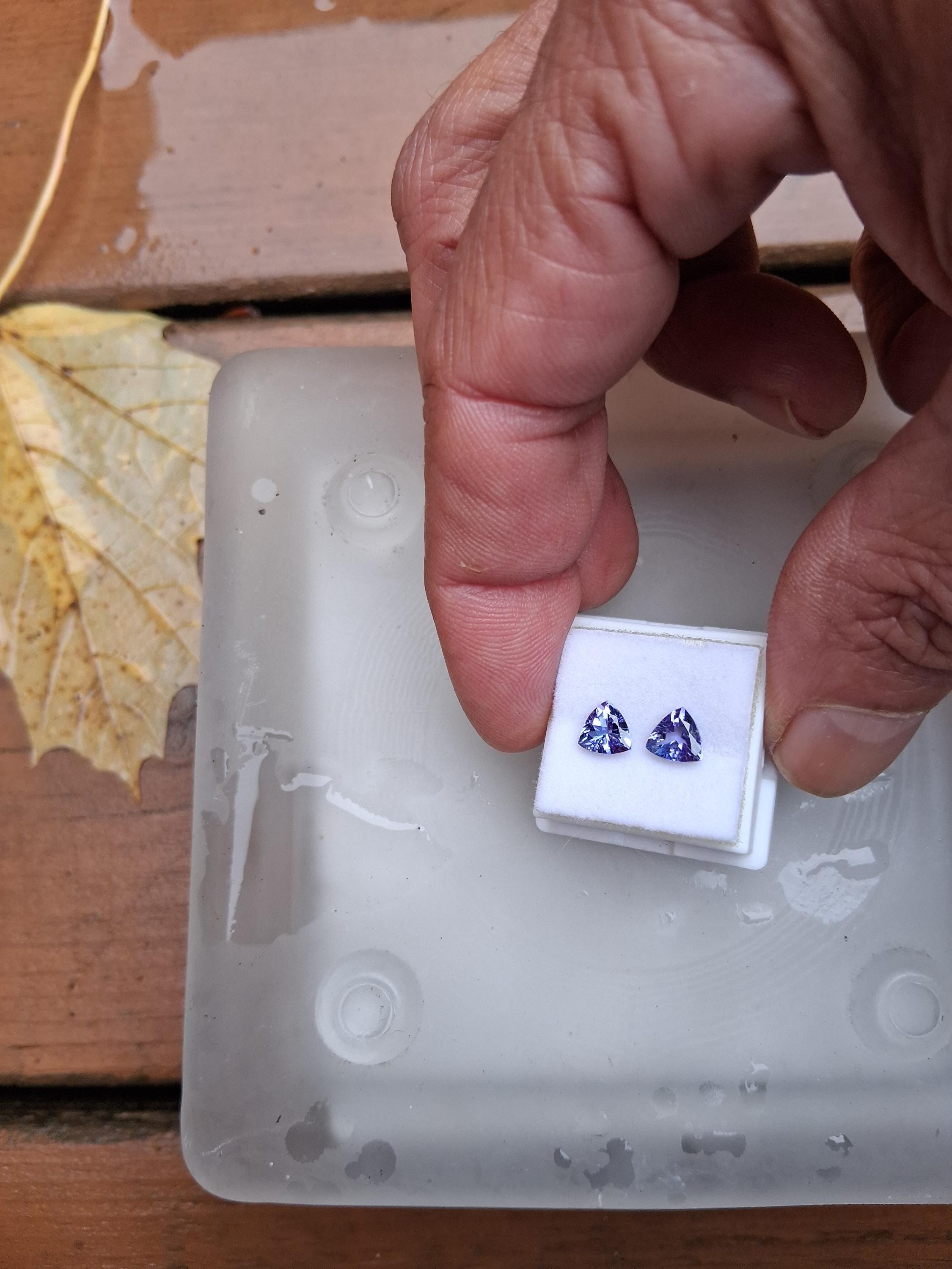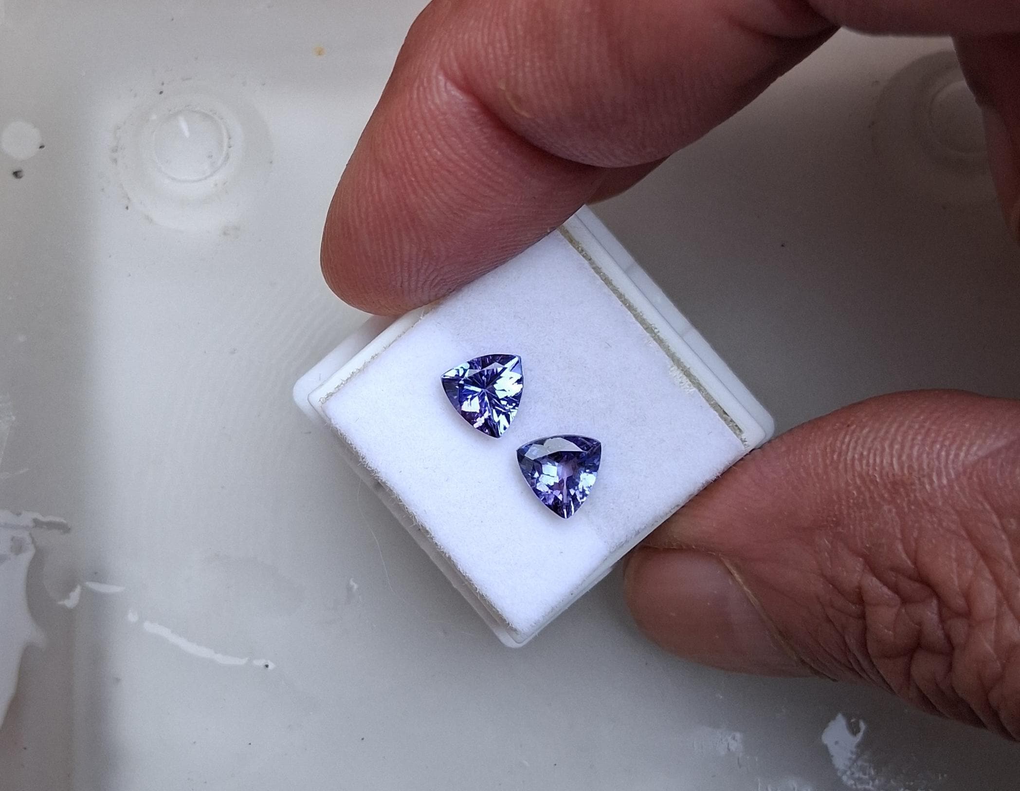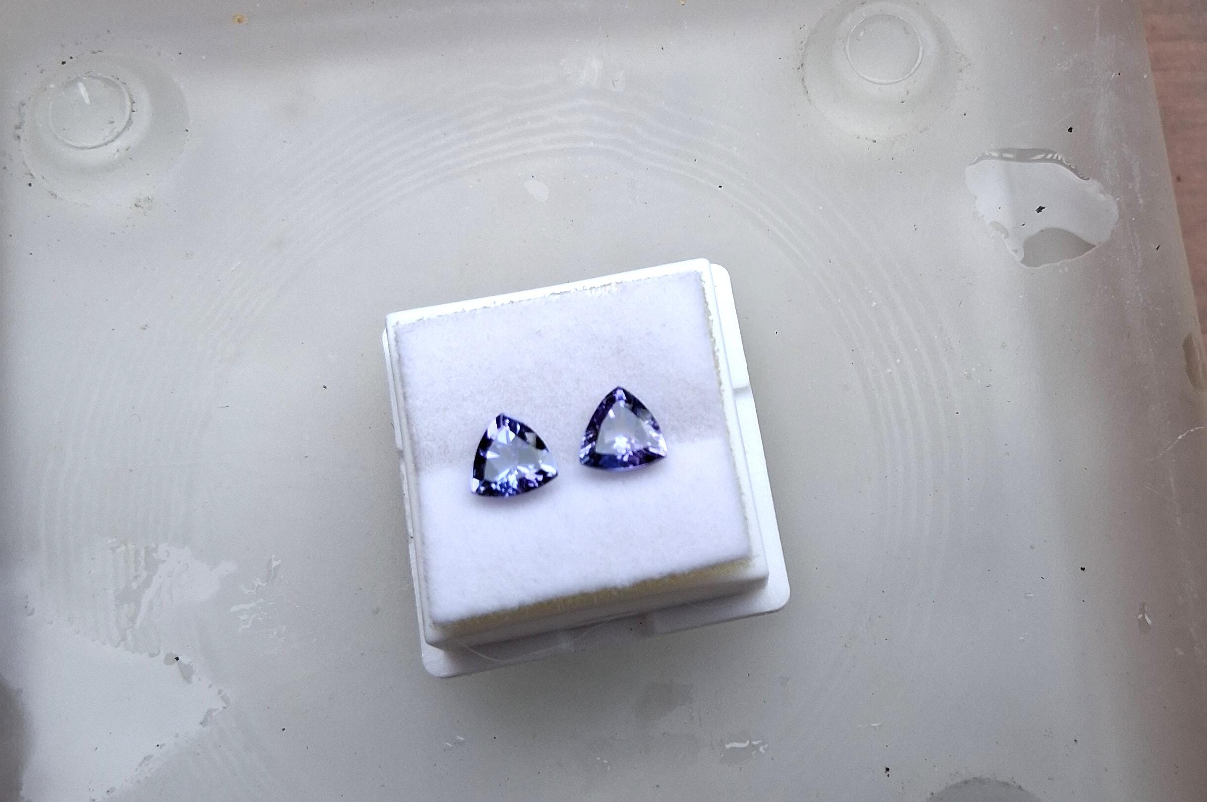 Triangle tanzanite pair for earrings, December birthstone for custom jewelry. clarity: eye clean, weight: 1.55 ct , size: 5.9 mm Treatment: None.