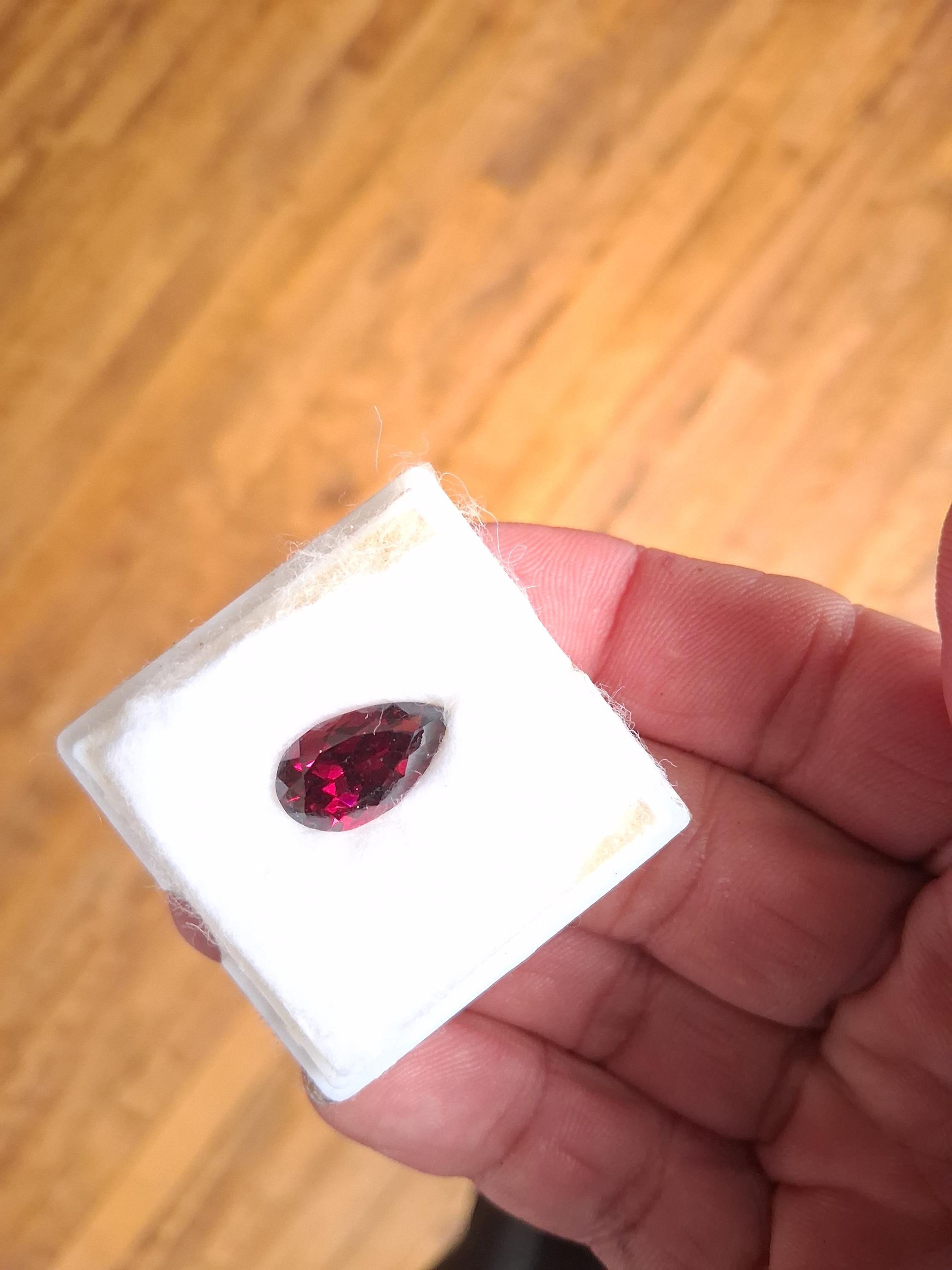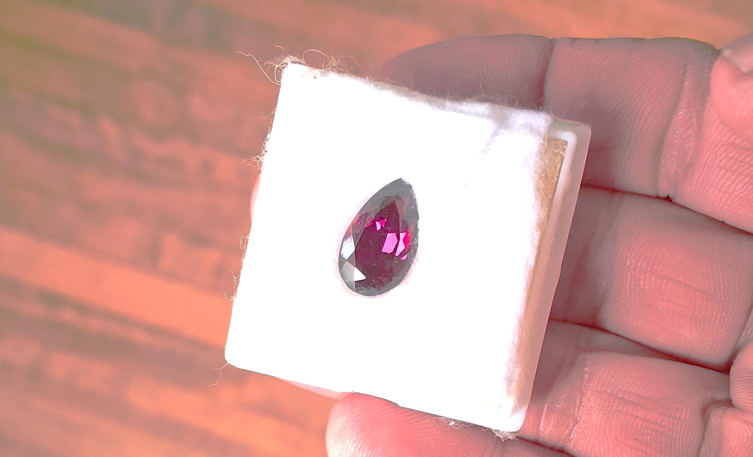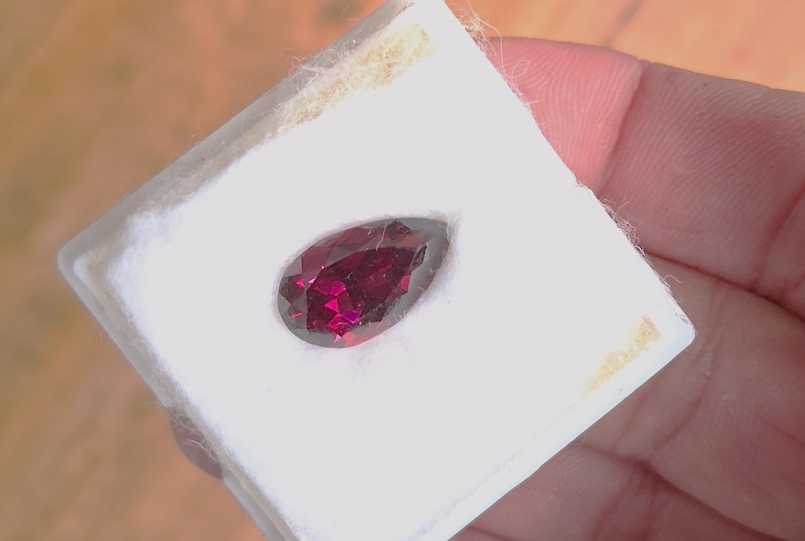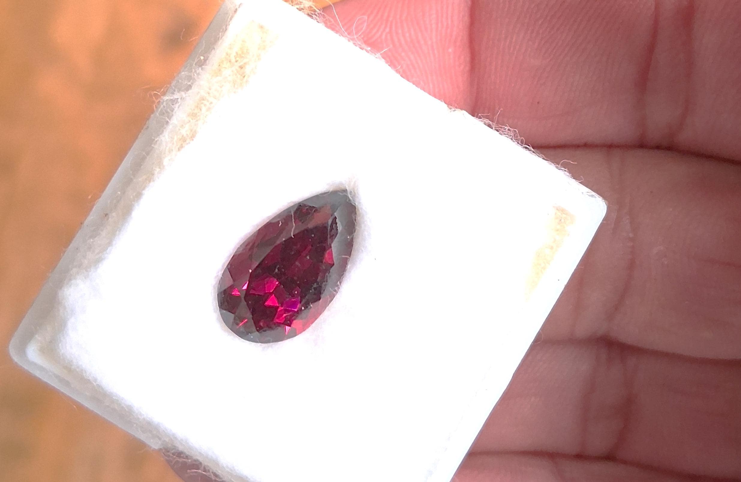 Garnet January birthstone for anniversary Jewelry, pear shape rhodolite garnet gemstone for anniversary gift. size: 15.5x9 mm, weight: 7.55 cts, clarity: eye clean, color: raspberry, origin: Brazil