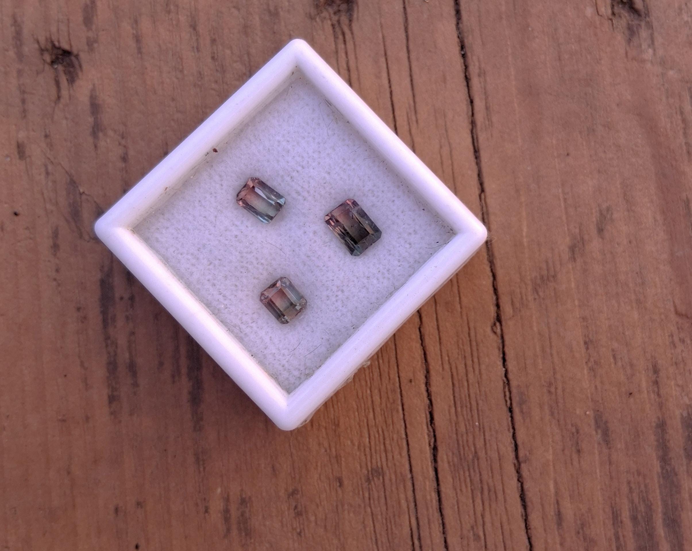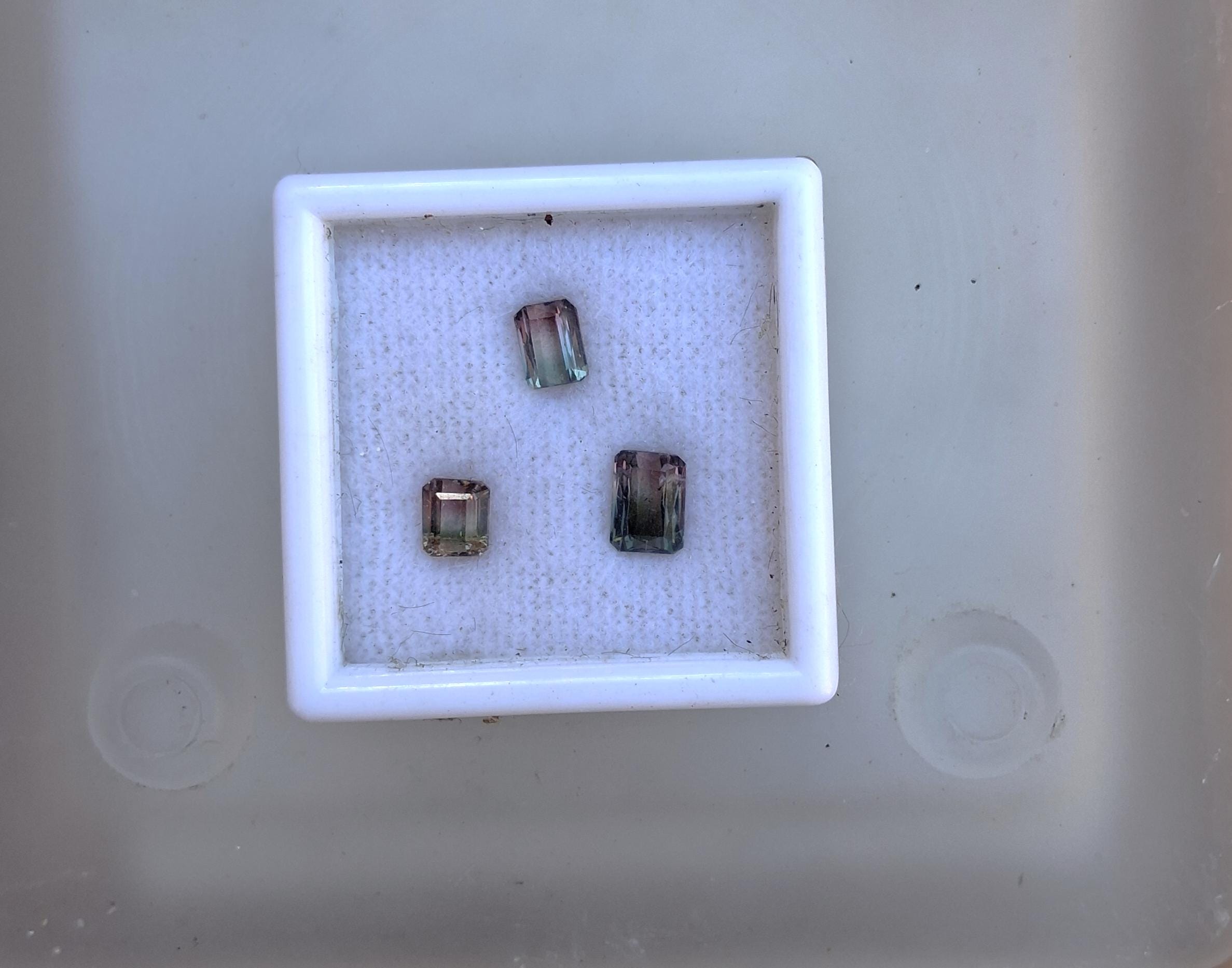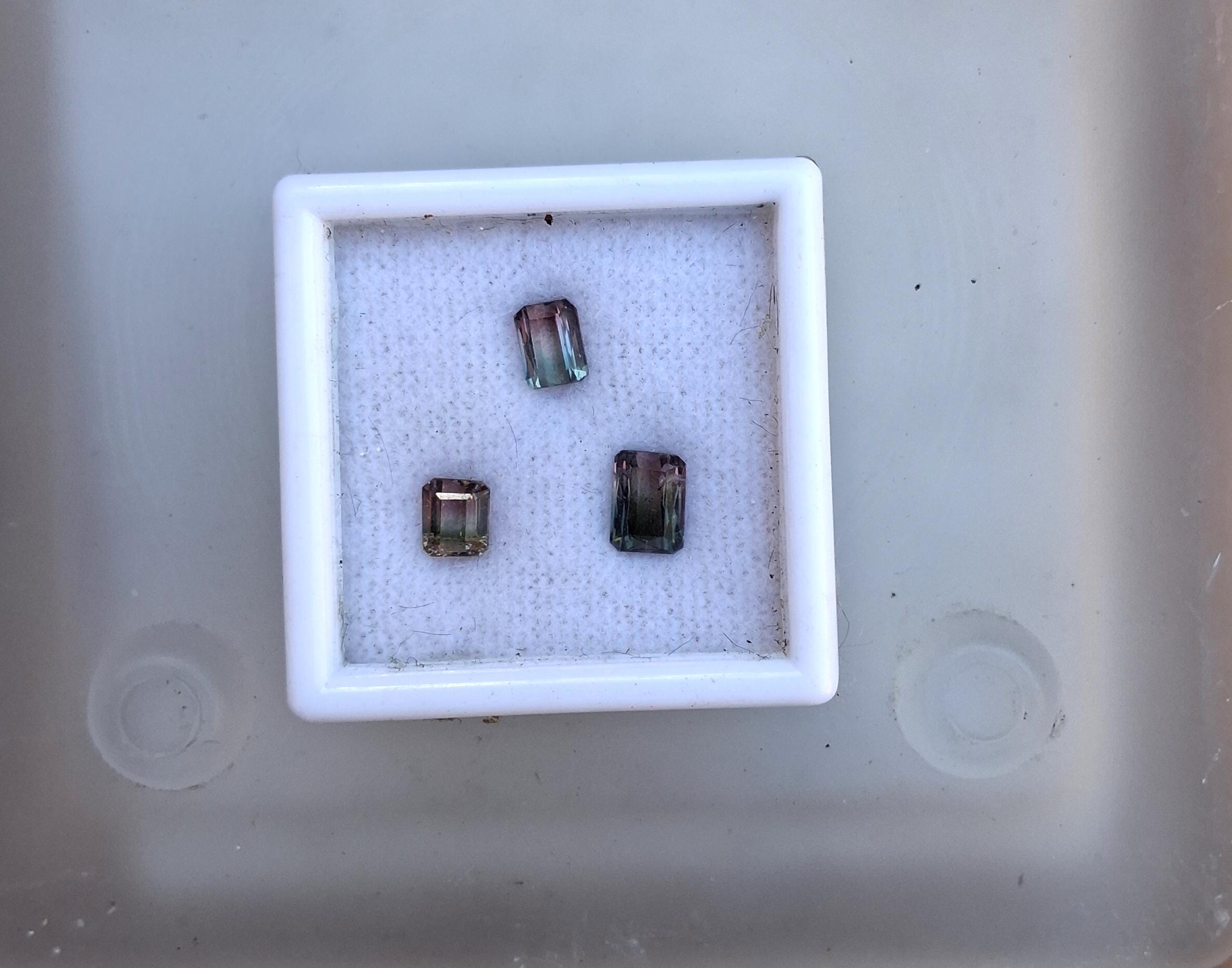 Natural emerald cut watermelon tourmaline parcel for jewelry, October gemstone for anniversary gift. total weight: 3.30 cts , sizes: 7.4x5.4mm, 5.7x4.9mm, 6.2x4.7mm, clarity: minor inclusions Origin: Brazil