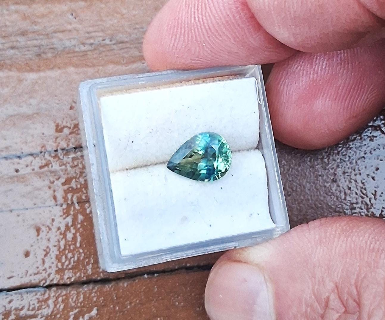 Natural Ceylon pear shape teal sapphire for engagement ring, one of kind eye clean gemstone for anniversary gift for her. Size:8.8x6.5x3.7mm, weight: 1.60cts, clarity: eye clean, origin: Ceylon, SBG682/36