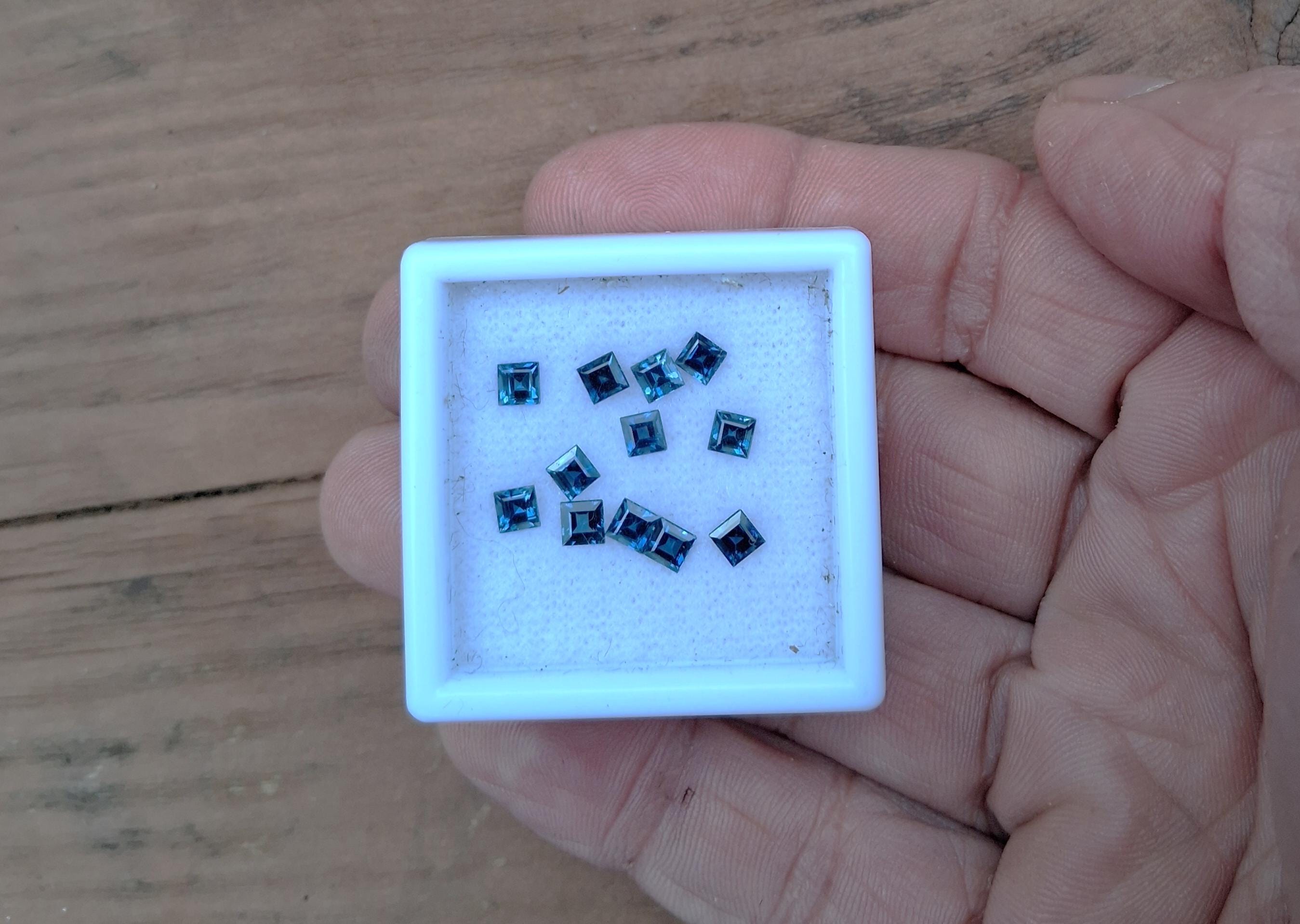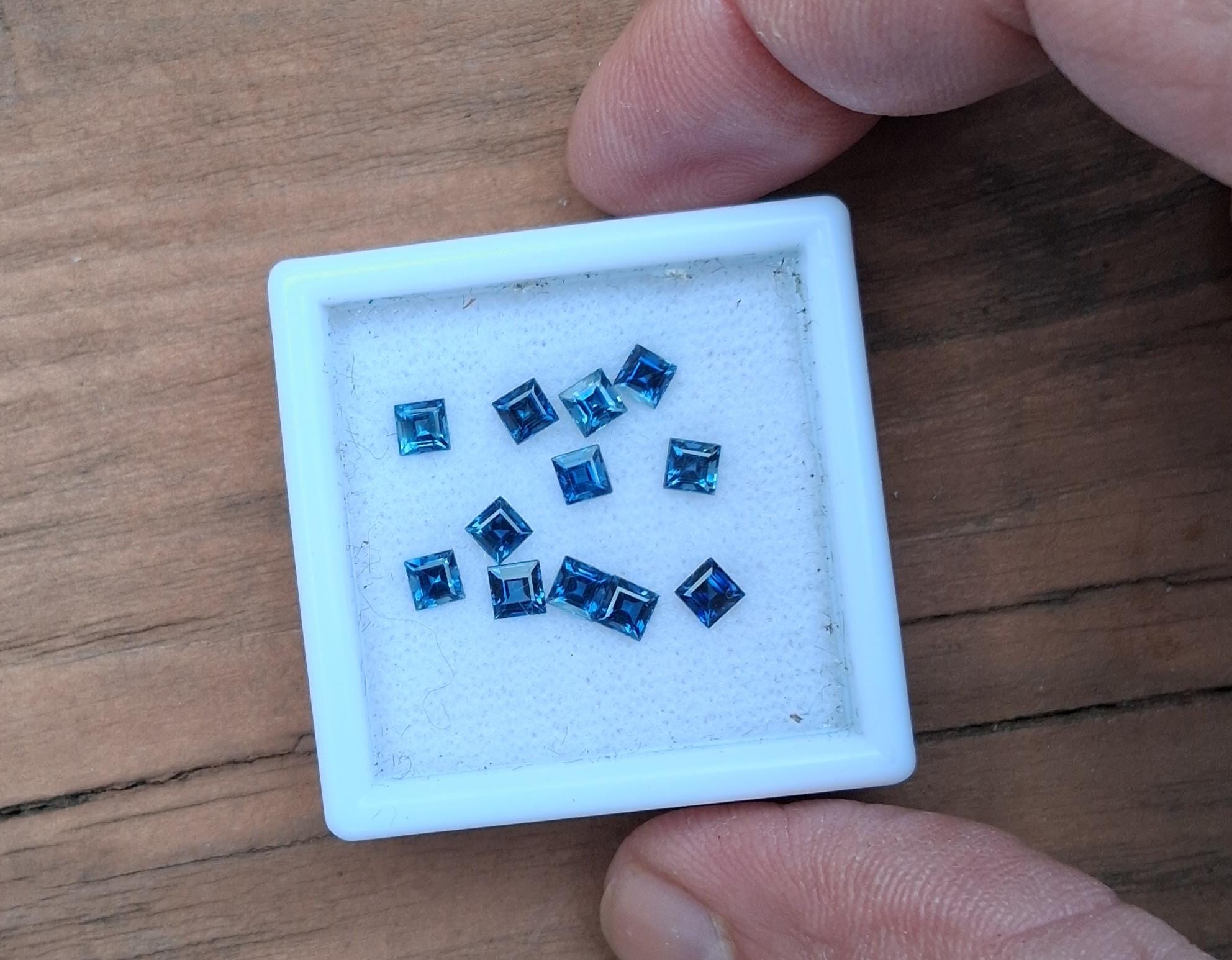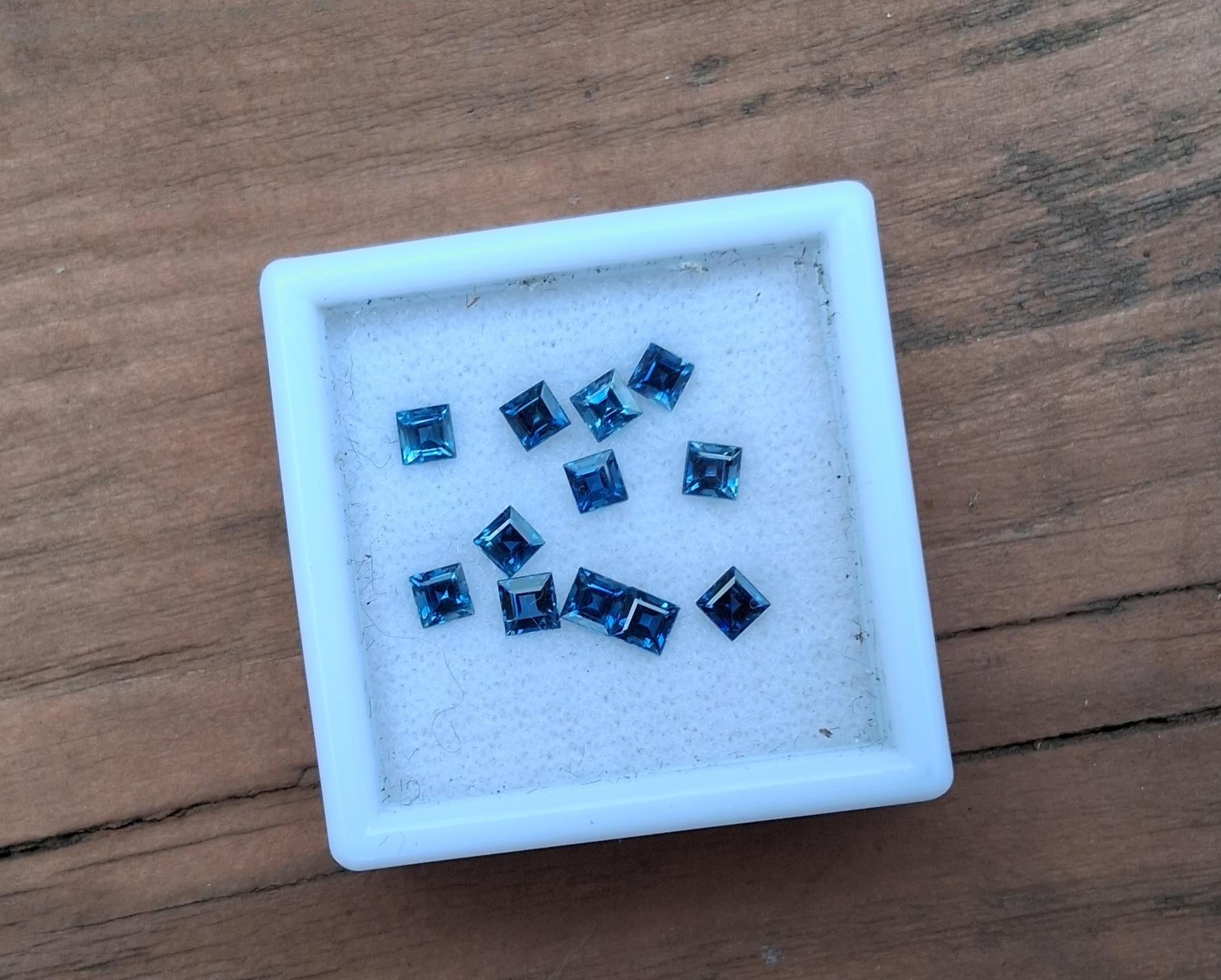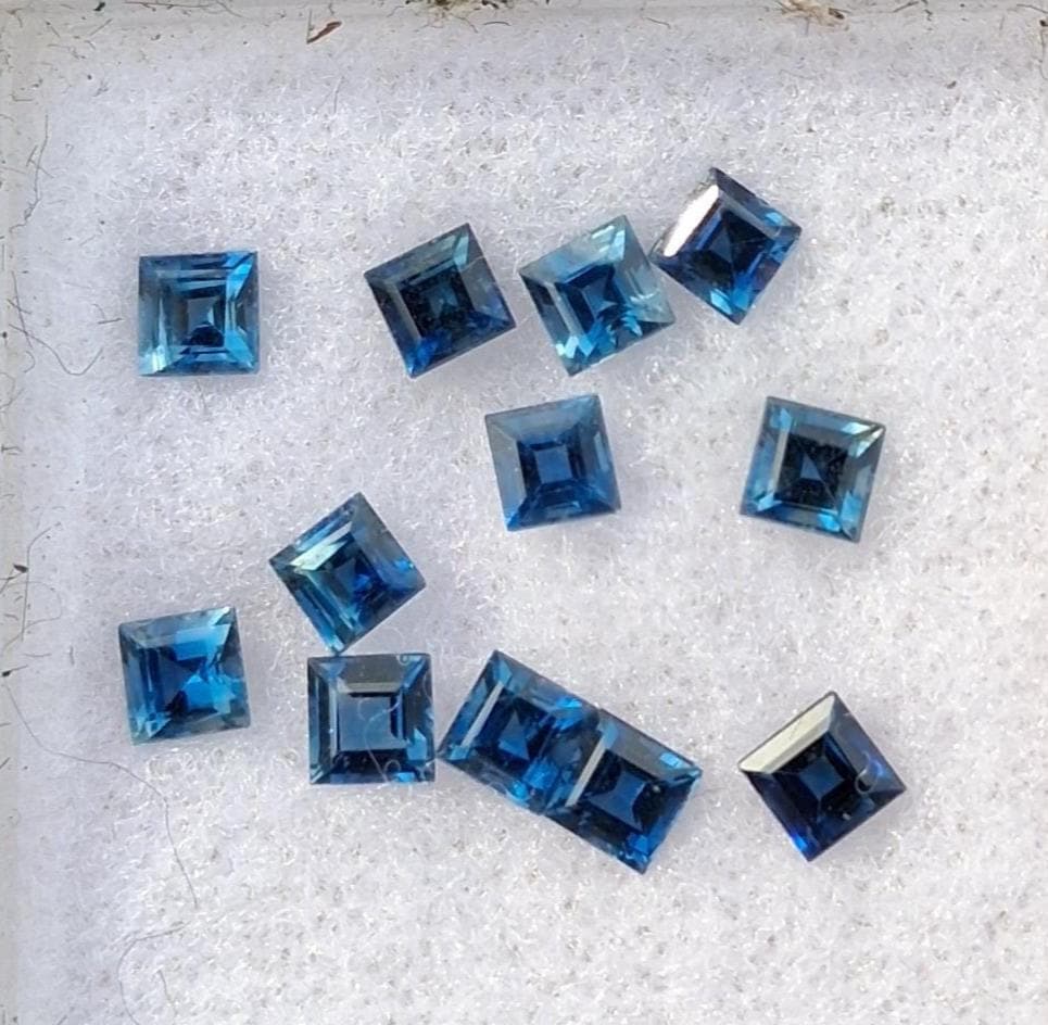 Princess cut Montana Blue sapphire 3.5mm for custom jewelry. weight: 3.54 cts. size: 3.5 mm princess cut. color: medium blue green , clarity: eye clean, origin: Montana