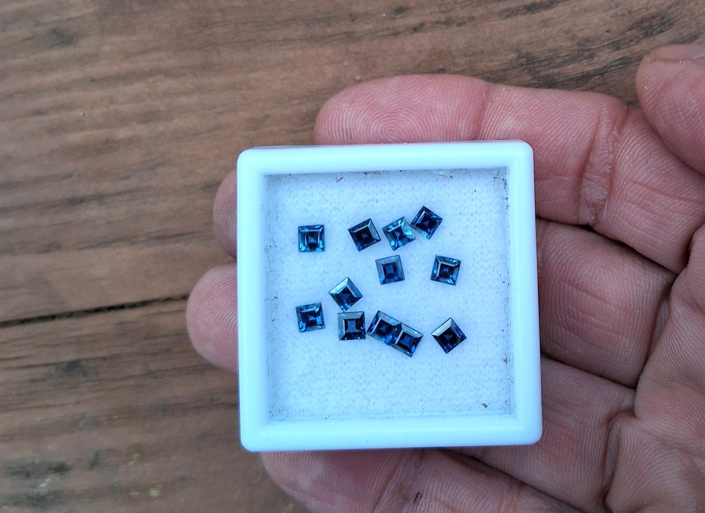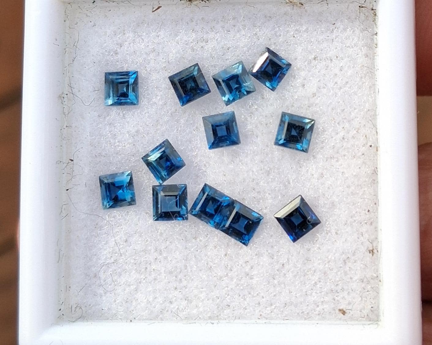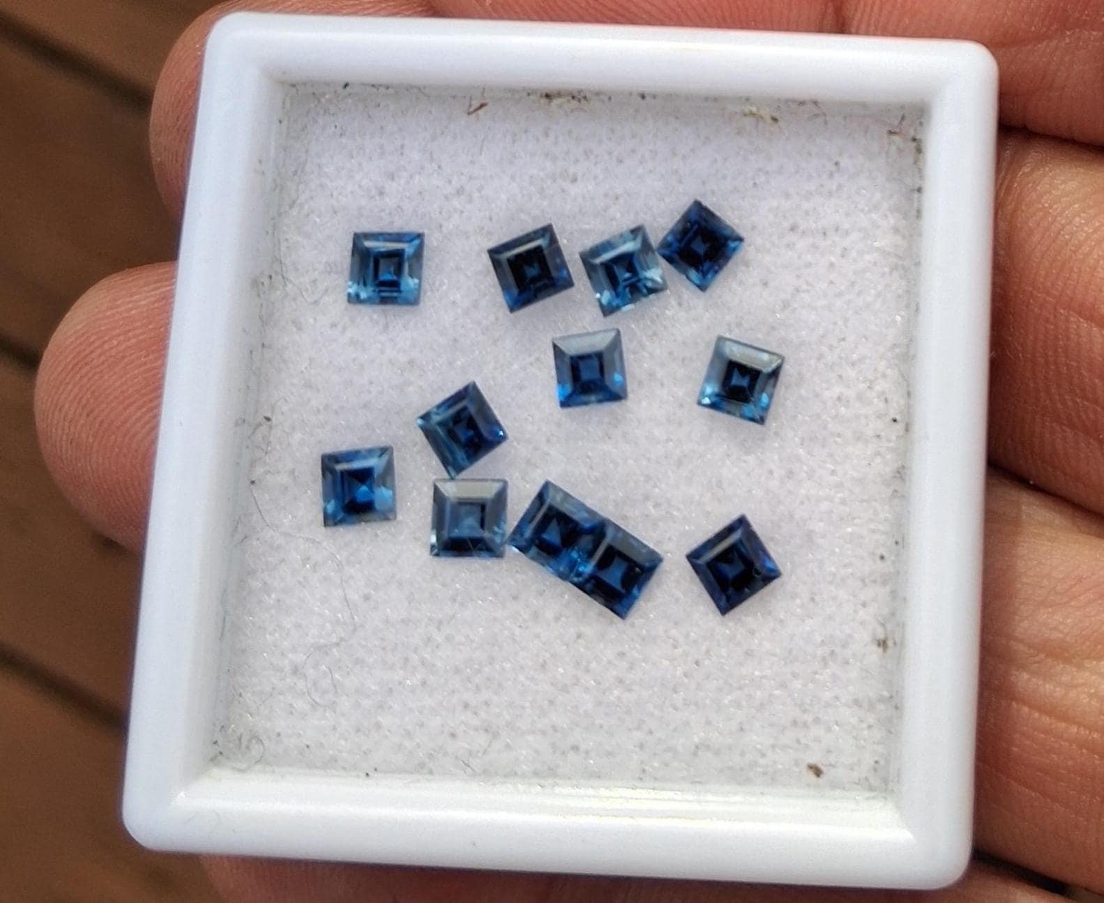 Princess cut Montana Blue sapphire 3.5mm for custom jewelry. weight: 3.54 cts. size: 3.5 mm princess cut. color: medium blue green , clarity: eye clean, origin: Montana