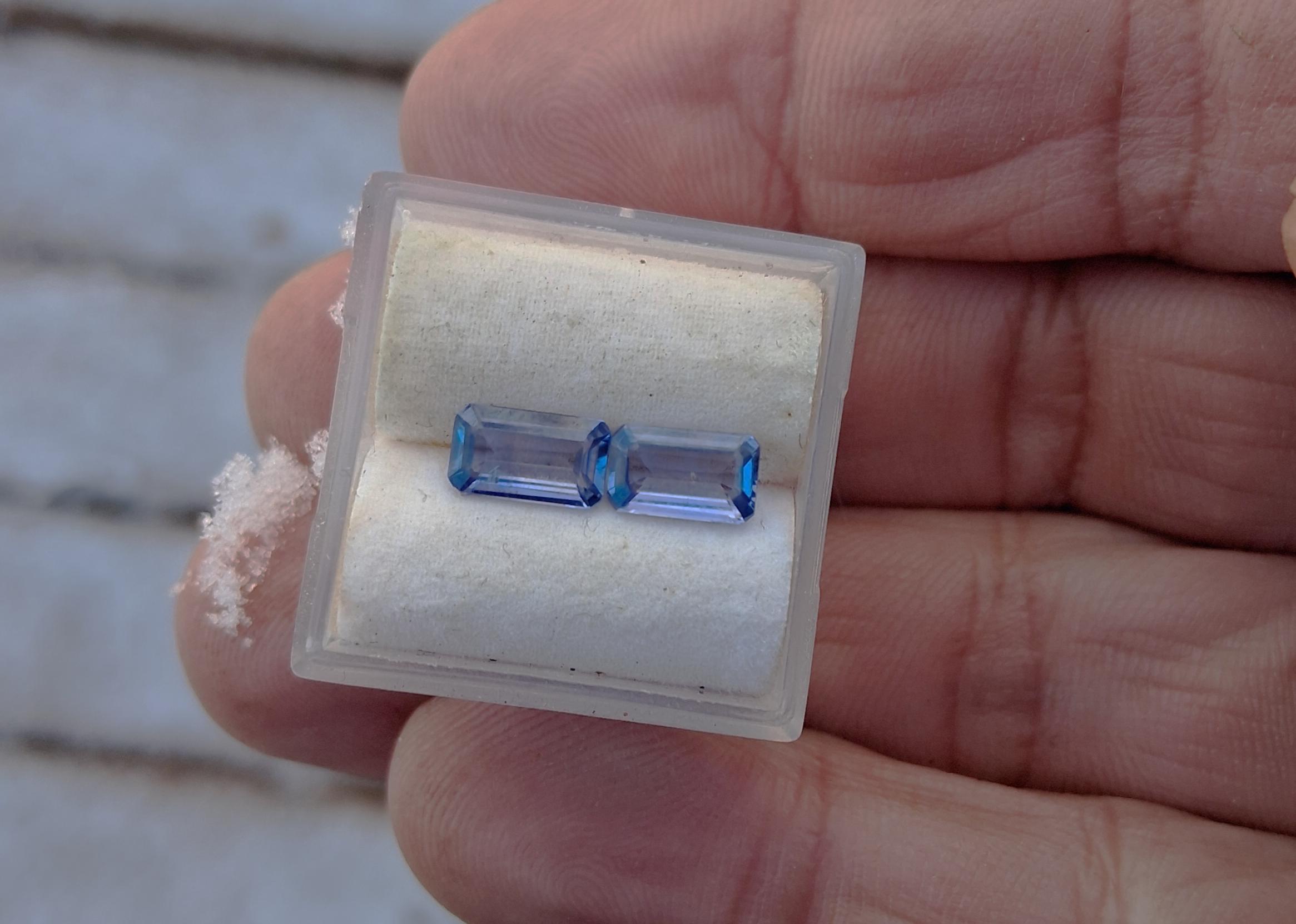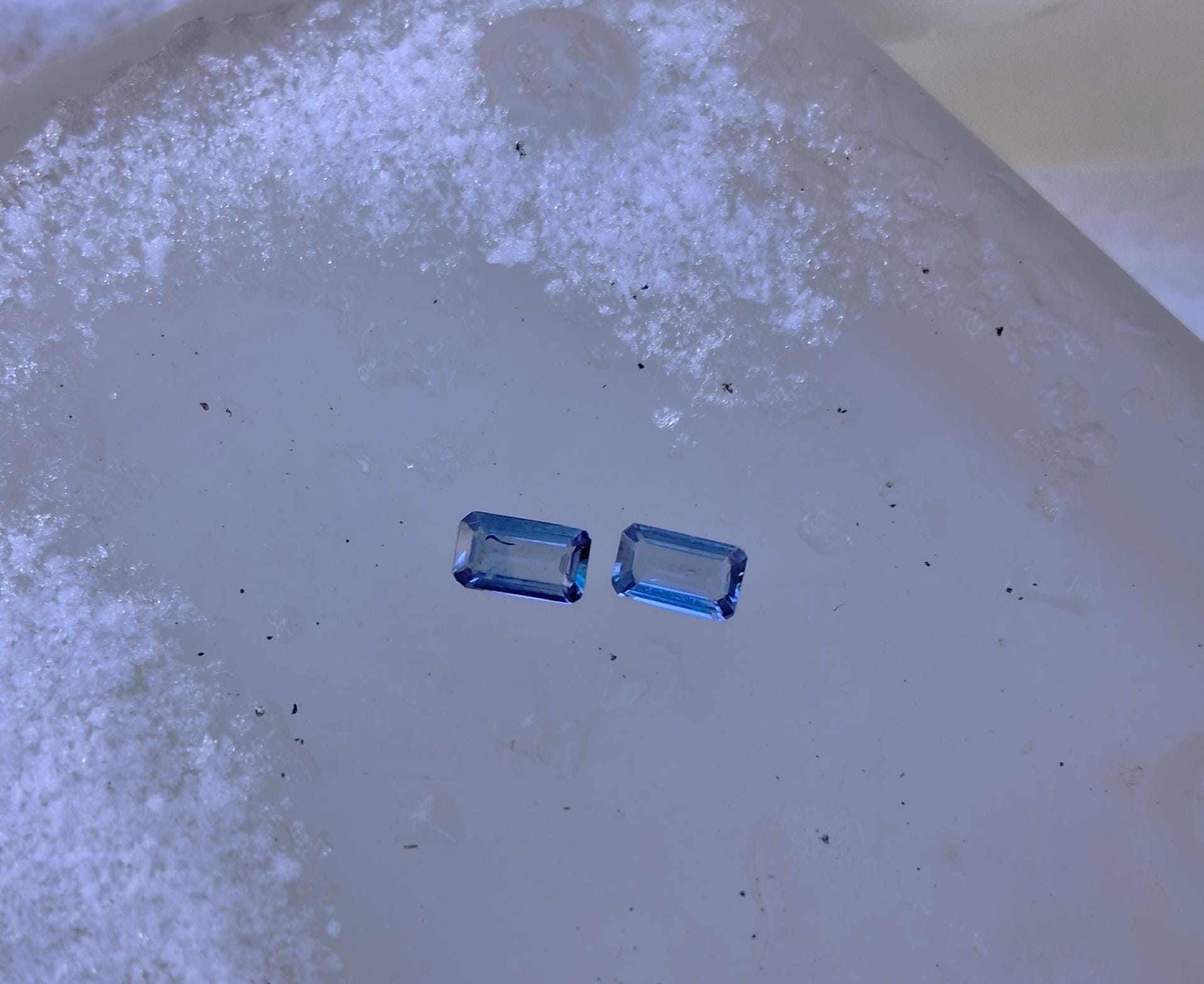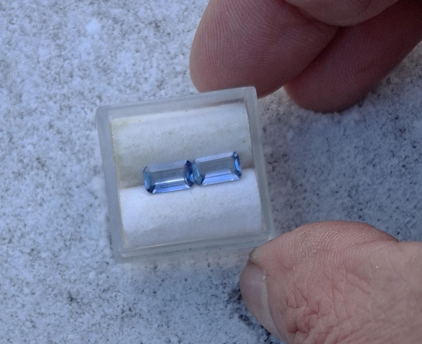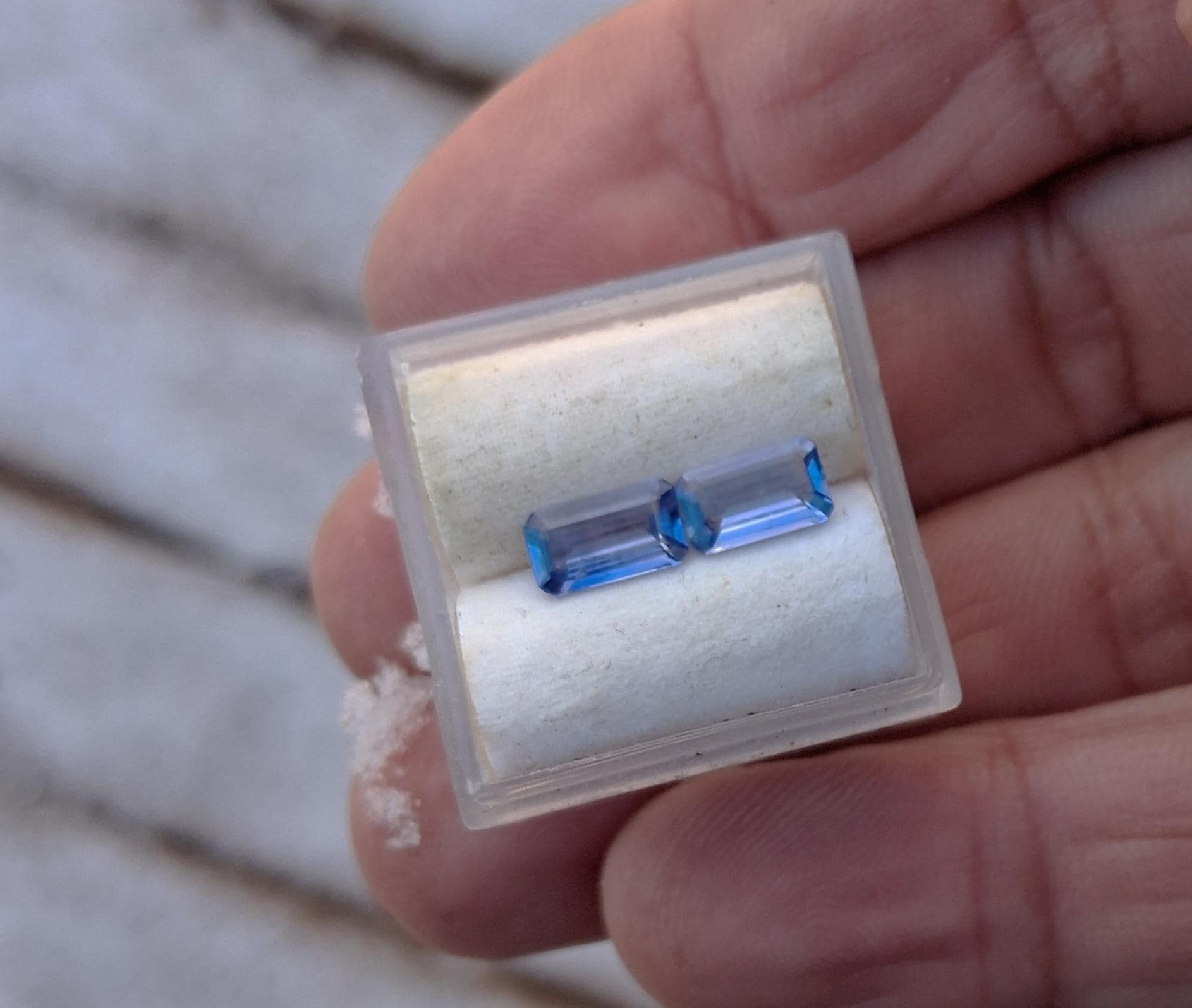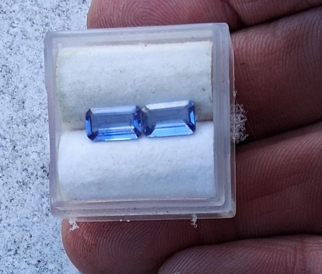 Natural Ceylon blue sapphire emerald cut pair September gemstone for jewelry. weight: 1.75 cts, size: 7.2x 4.3mm emerald cut. color: medium light blue, clarity: eye clean, origin: Ceylon