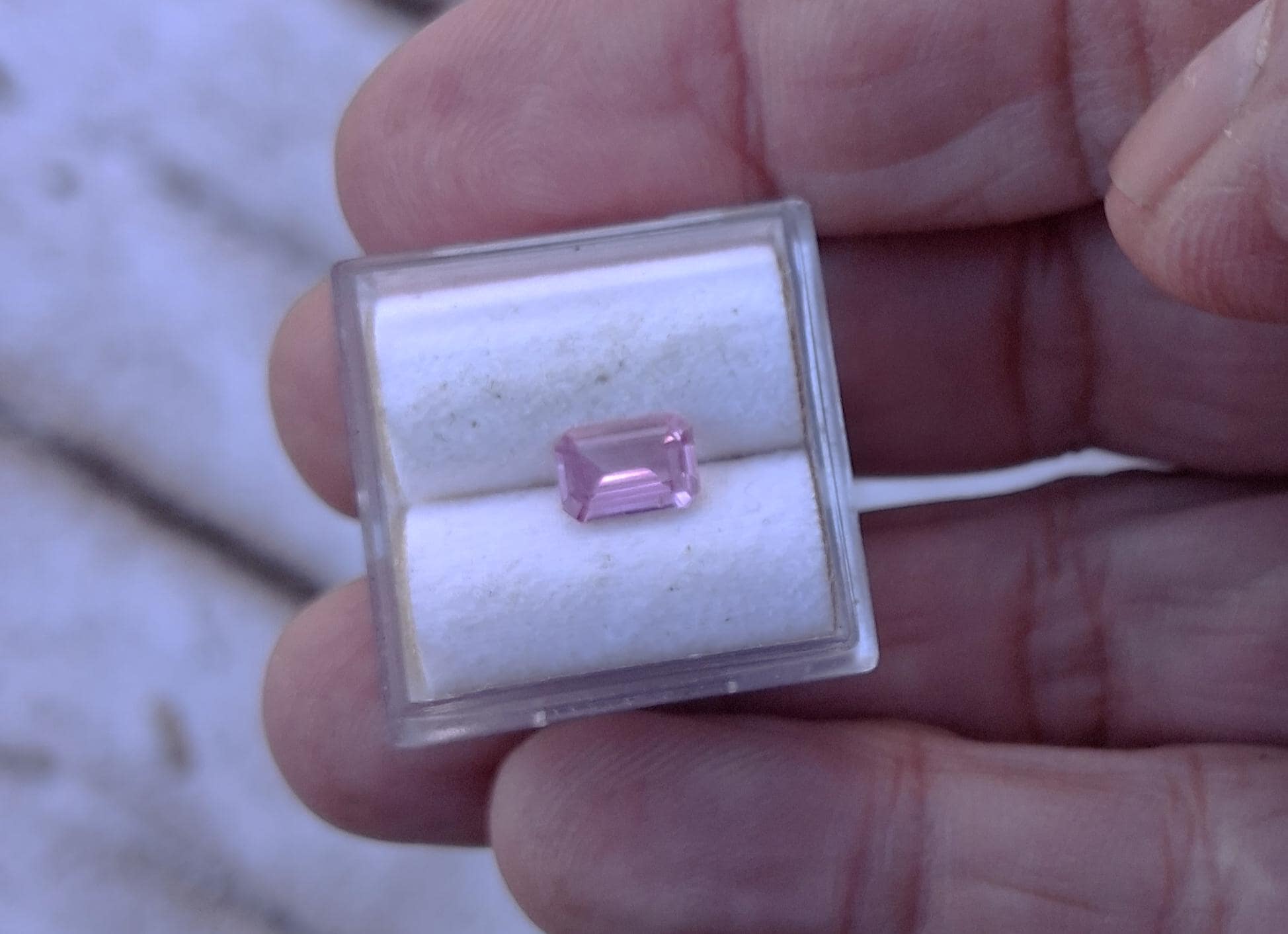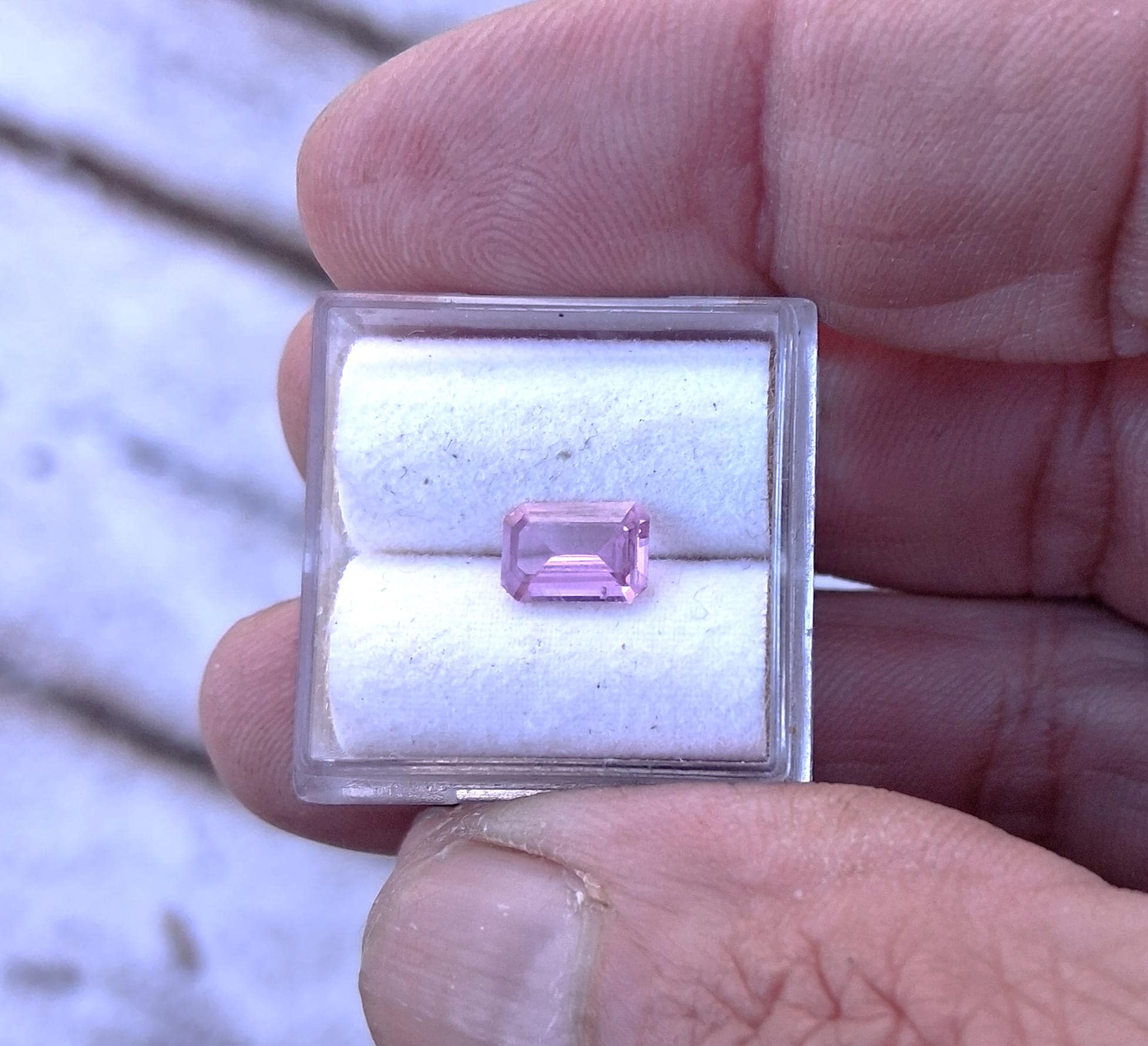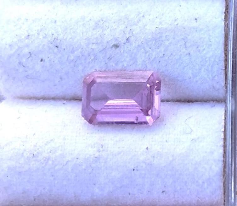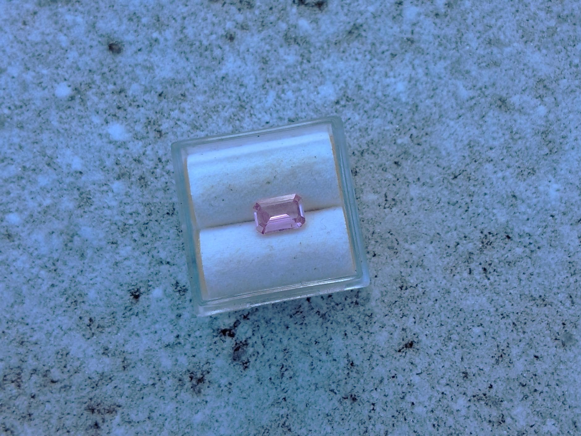 Ceylon pink sapphire calibrated size gemstone for jewelry, September birthstone for anniversary gift for her weight: 0.91 ct, size: 7x5 mm emerald cut. clarity: eye clean. color: medium light pink. origin: Ceylon