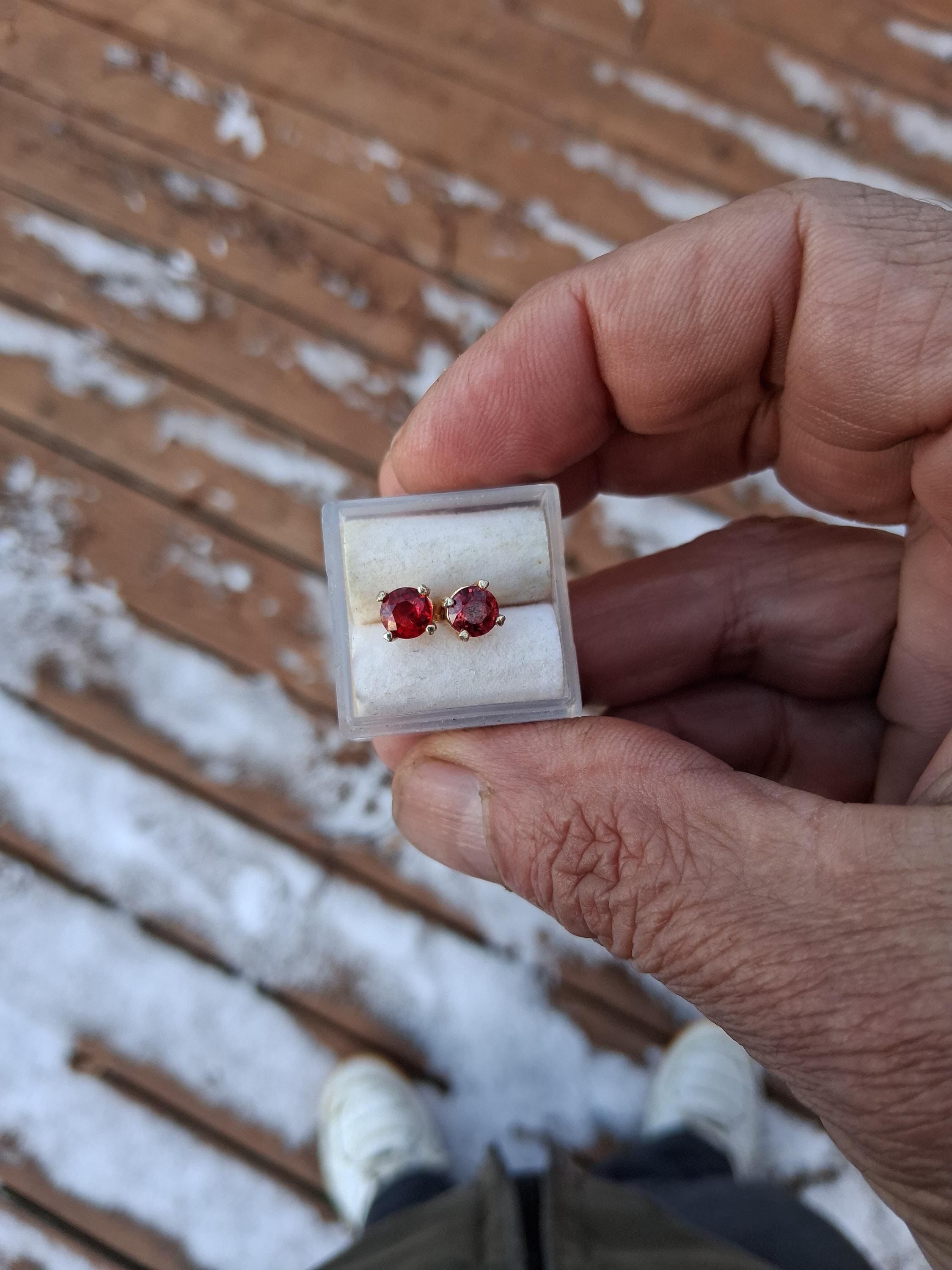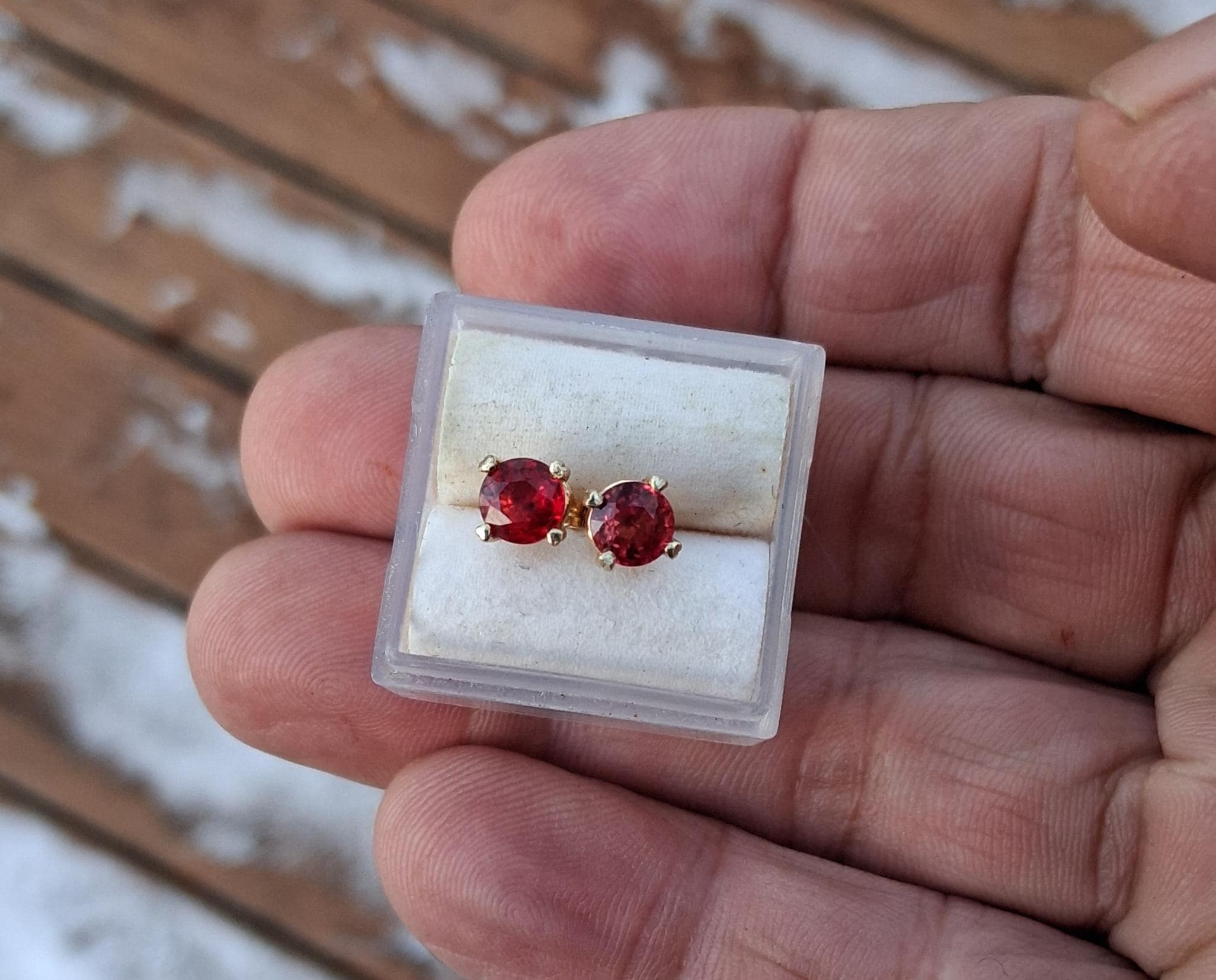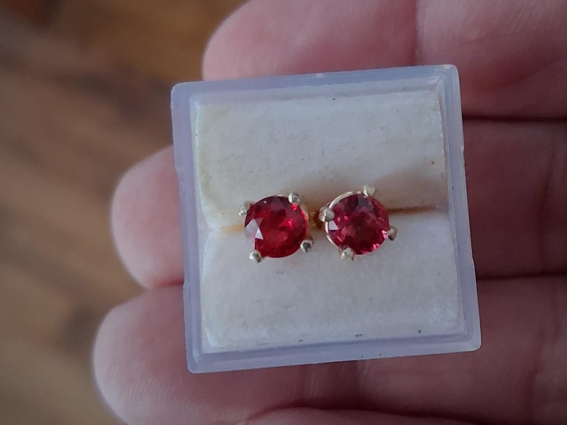 Pigeon blood red 14K yellow gold ruby earrings5 mm round July birthstone jewelry