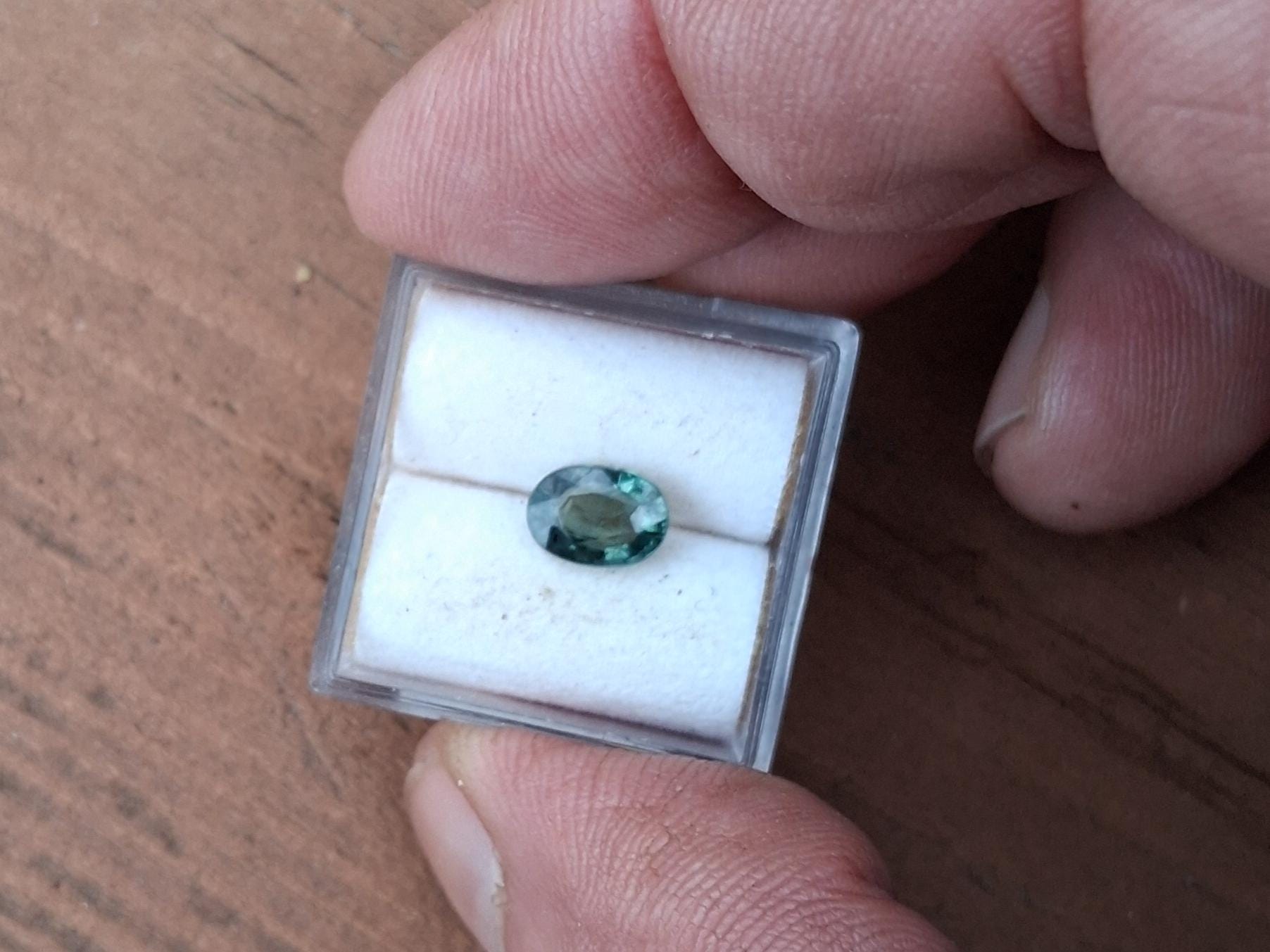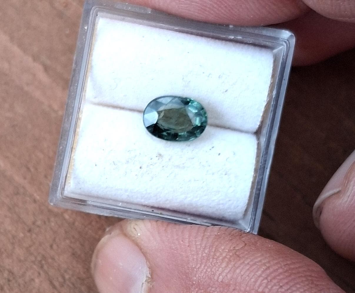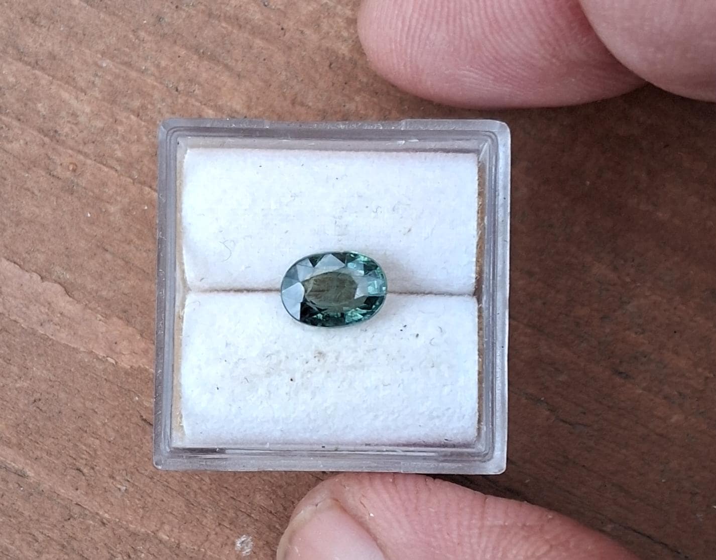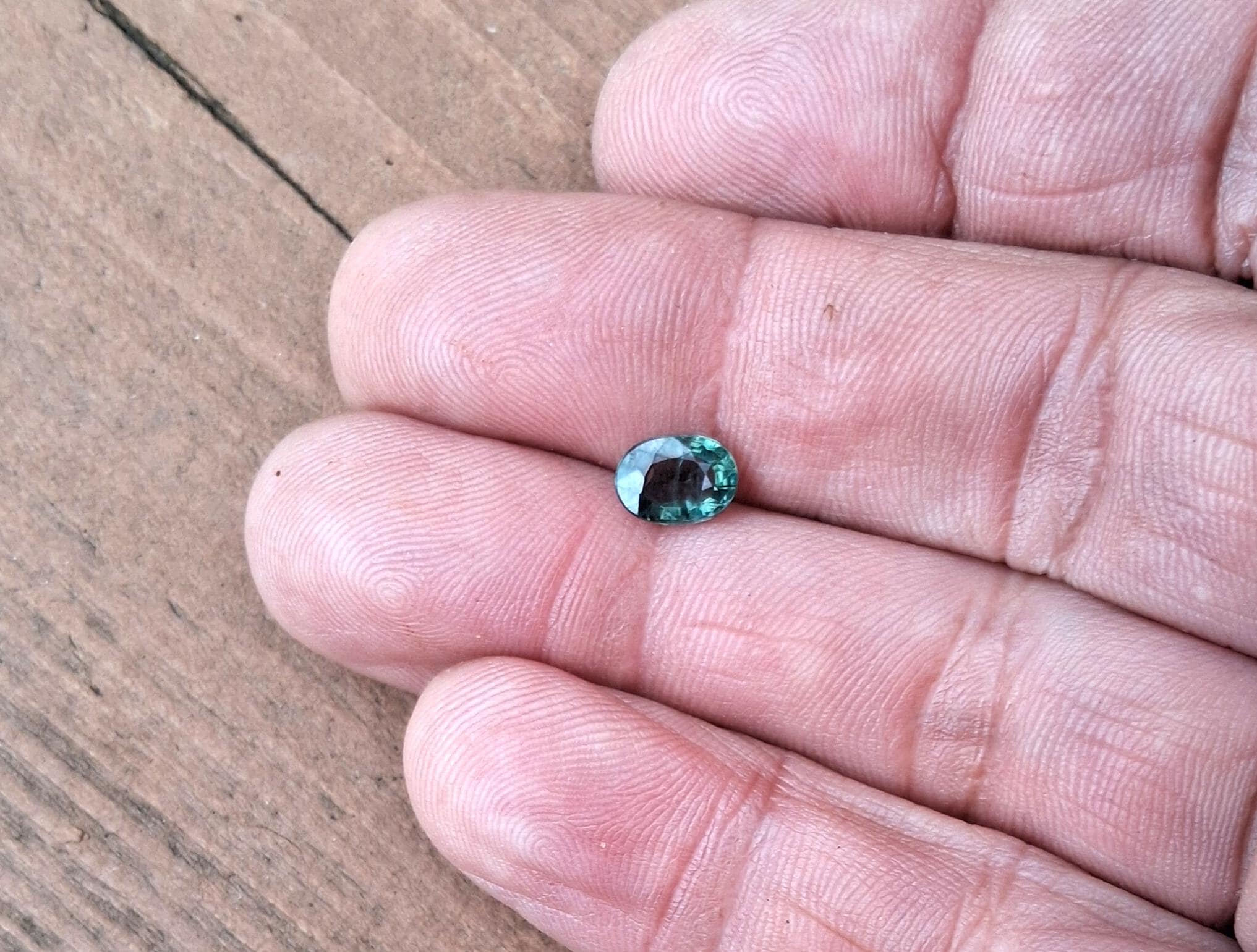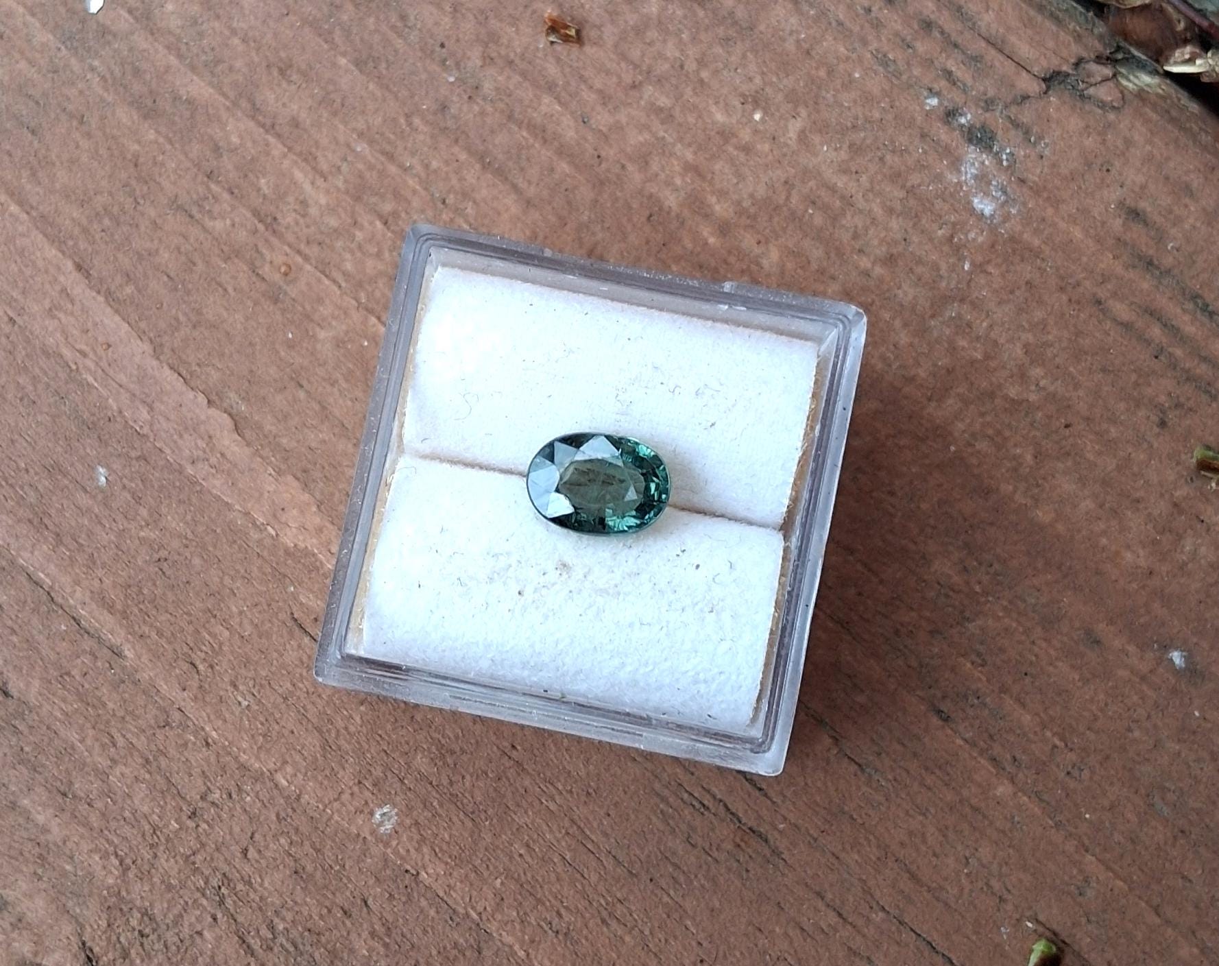 Natural oval teal blue green sapphire September birthstone for engagement ring. size: 7.4x5.3 mm oval, weight: 1.35 ct, clarity: eye clean. color: blue green, origin Ceylon SBG679/1050