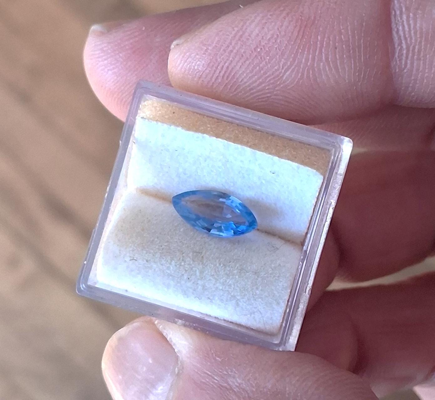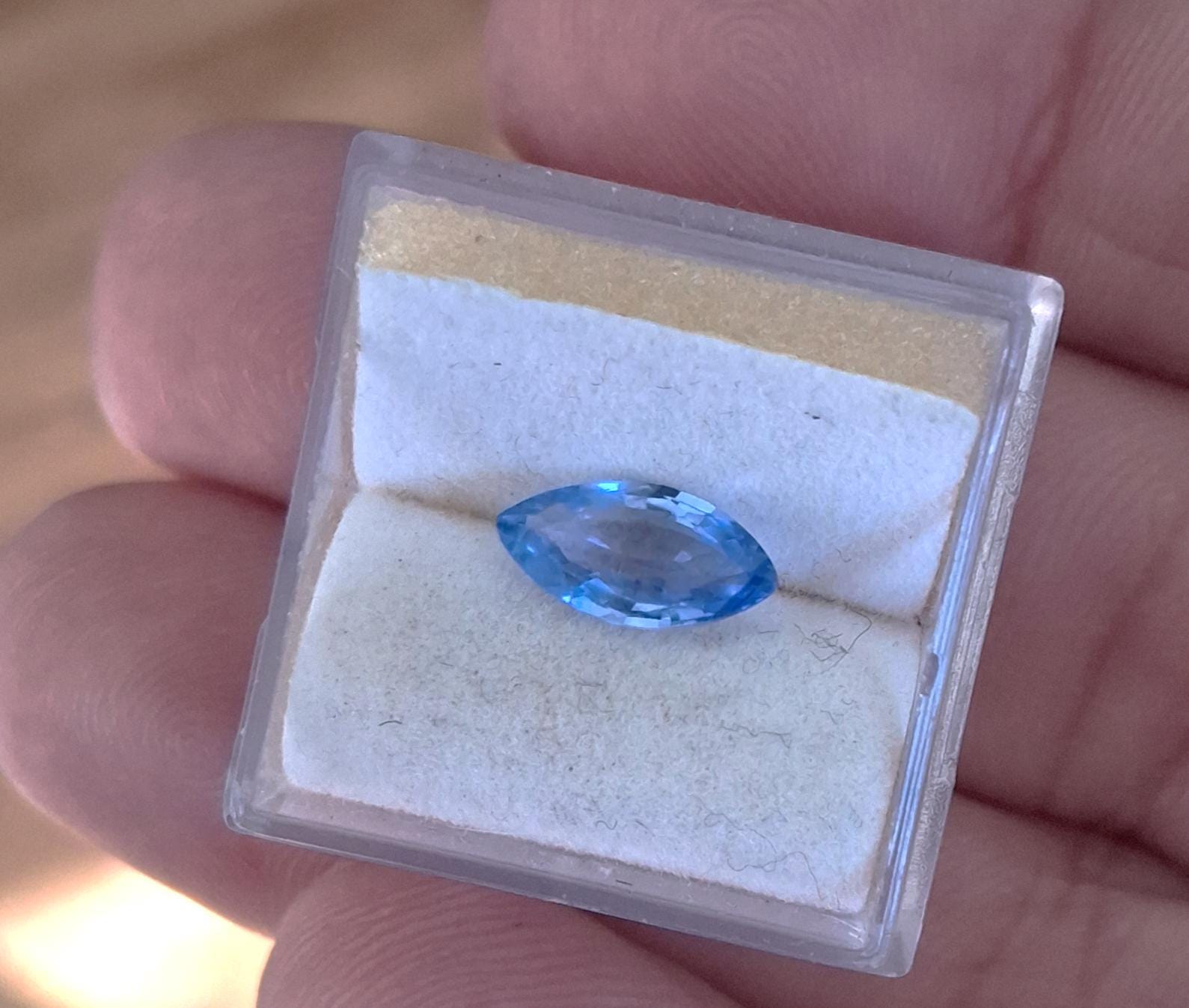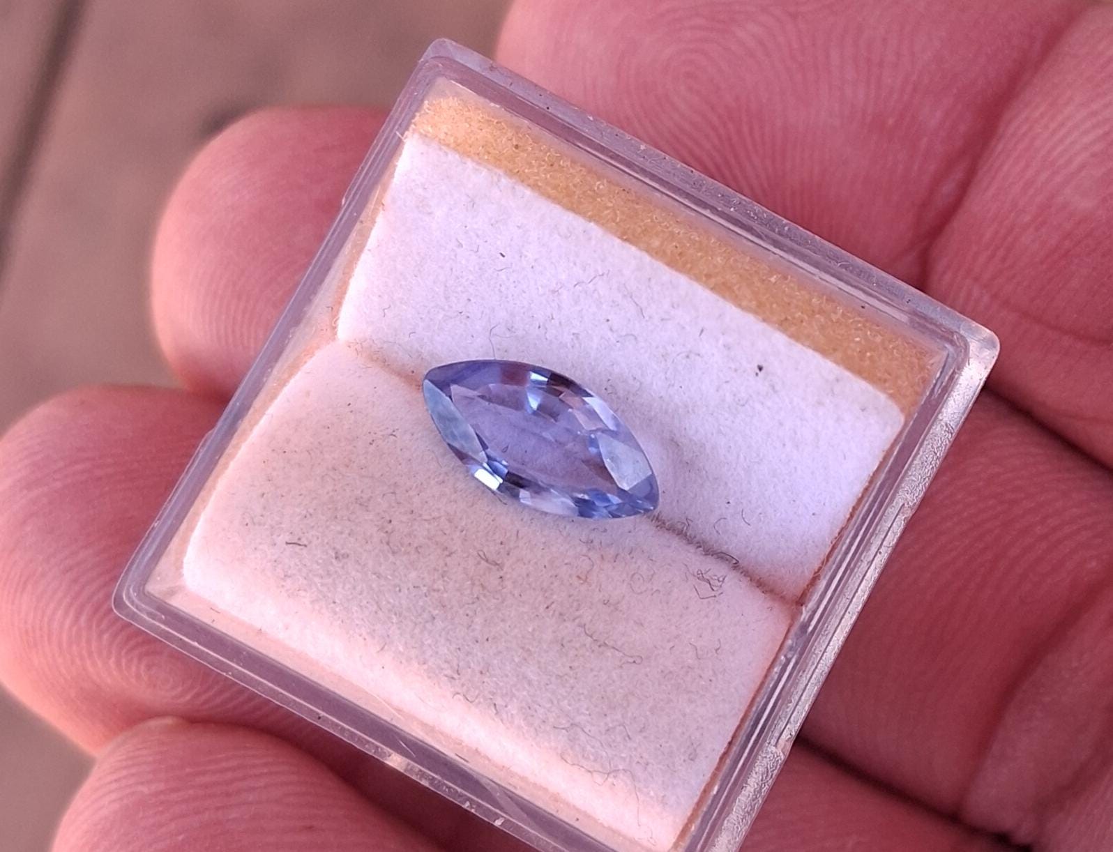 Pastel blue sapphire marquise shape September gemstone for anniversary jewelry. Weight: 1.09cts size: 7 x 5.2 mm marquise, clarity: eye clean, color: light blue. origin: Ceylon.