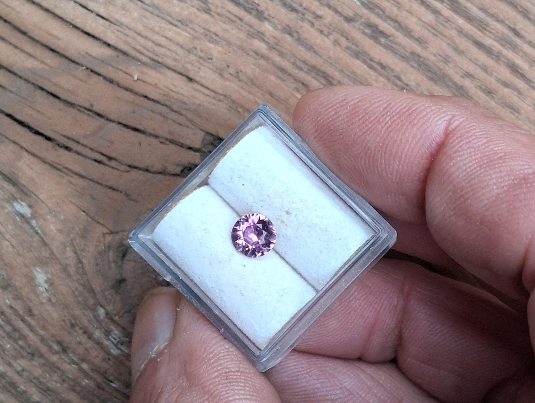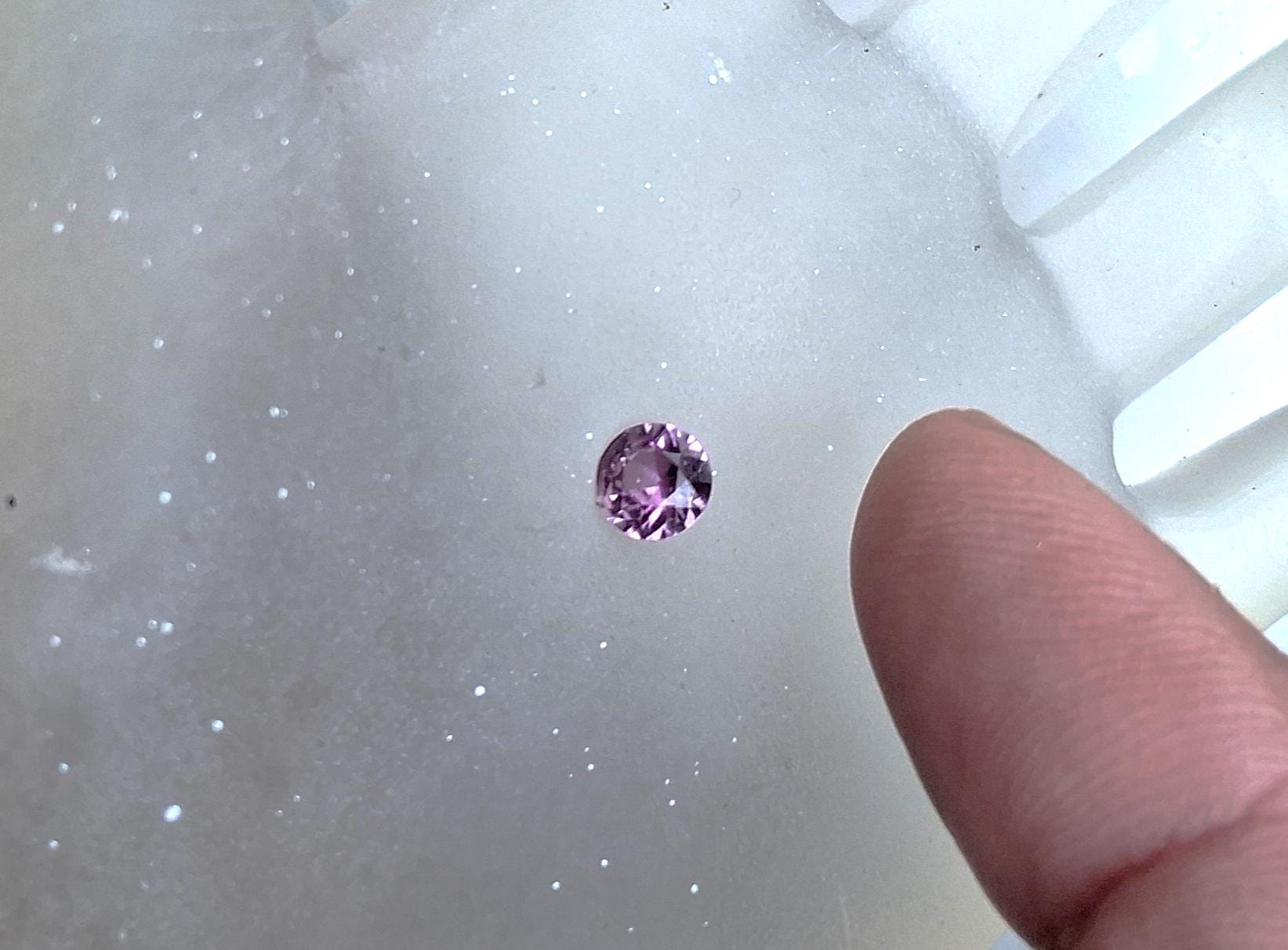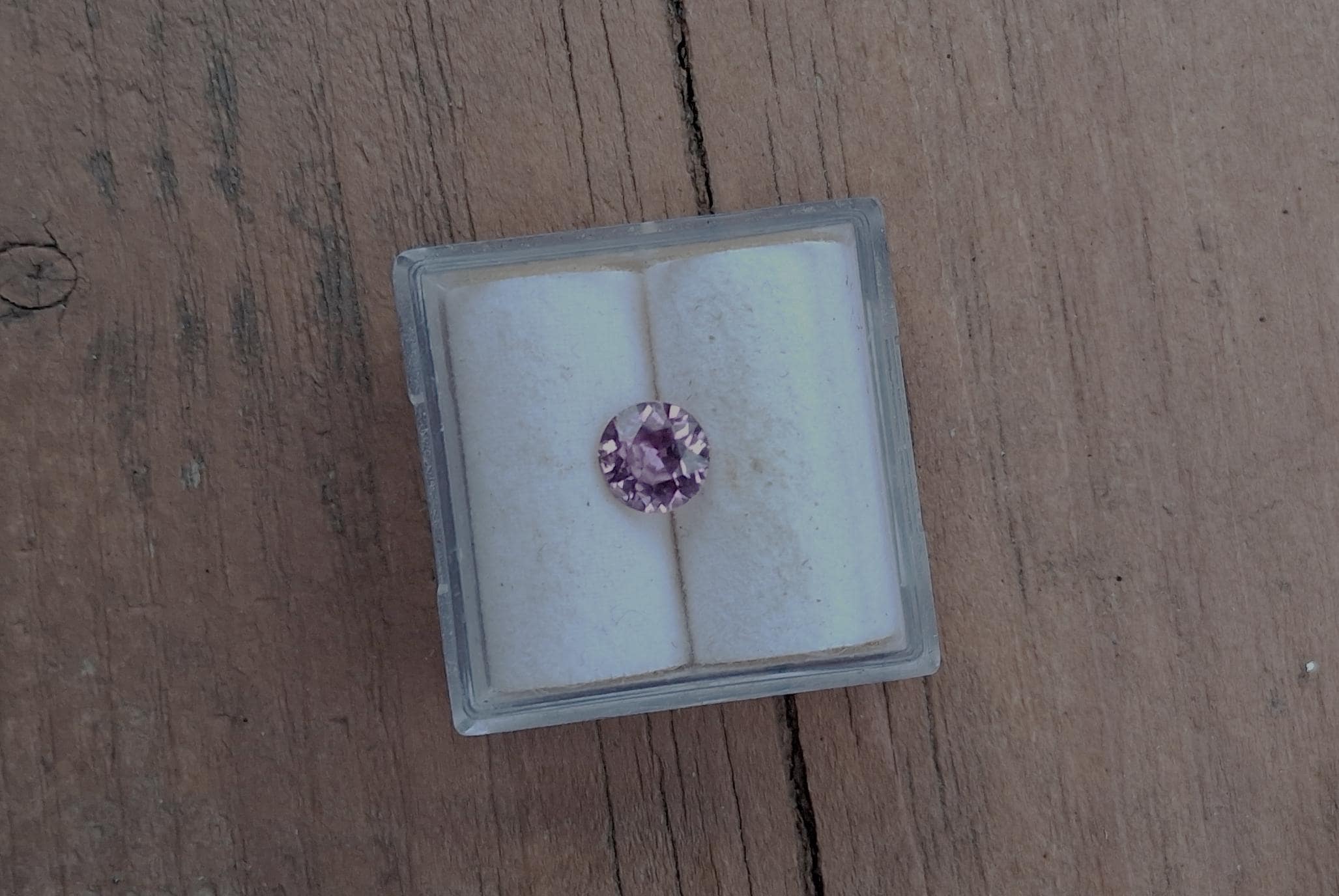 Natural lavender round sapphire for anniversary jewellery September gemstone. Weight: 0.76 ct. Size: 5.6 mm round. Origin: Ceylon.