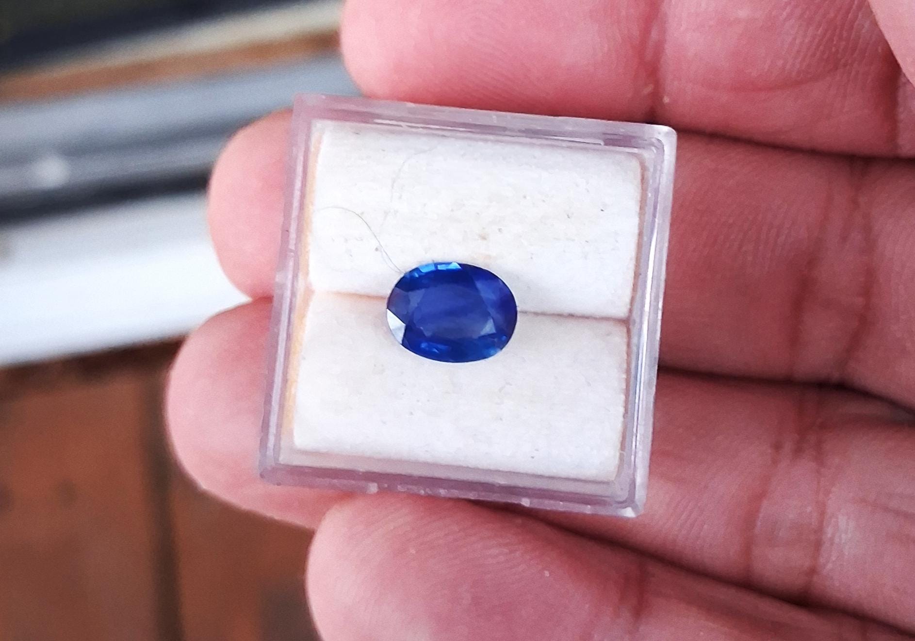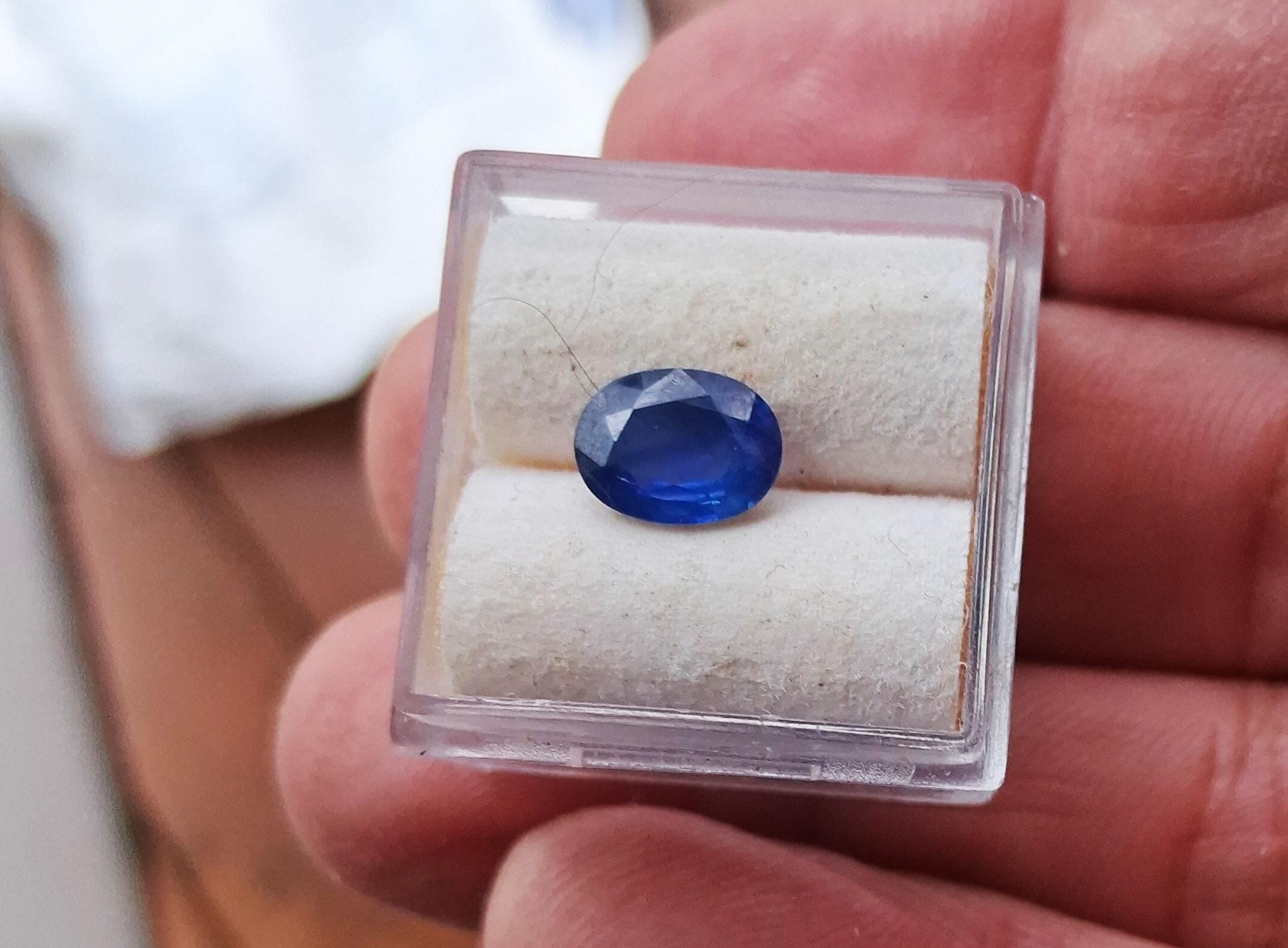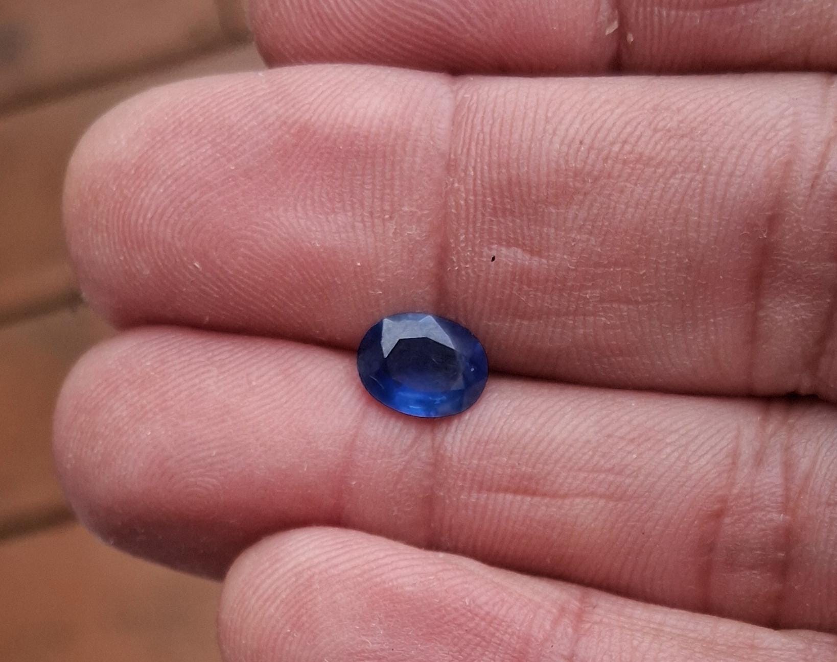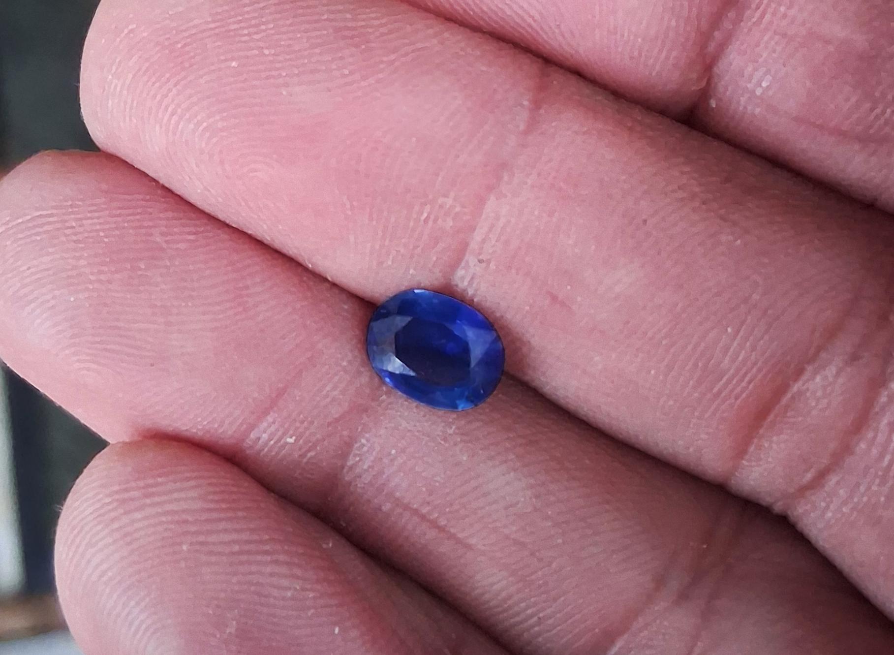 Silky Ceylon oval blue sapphire September birthstone for custom made jewelry weight: 1.58 ct, size: 8.3x6.2 mm oval. clarity: slightly hazy, color: medium dark blue
