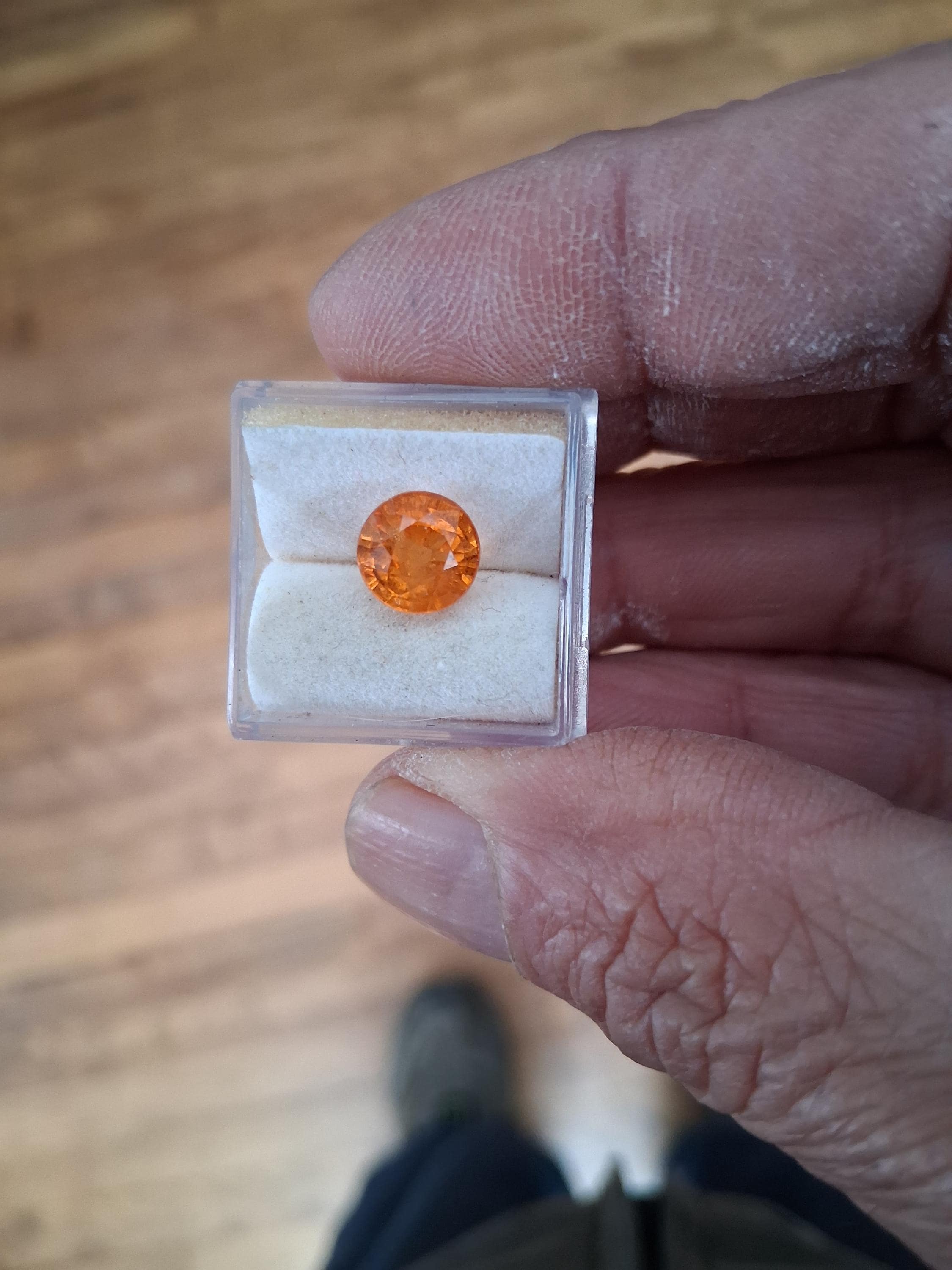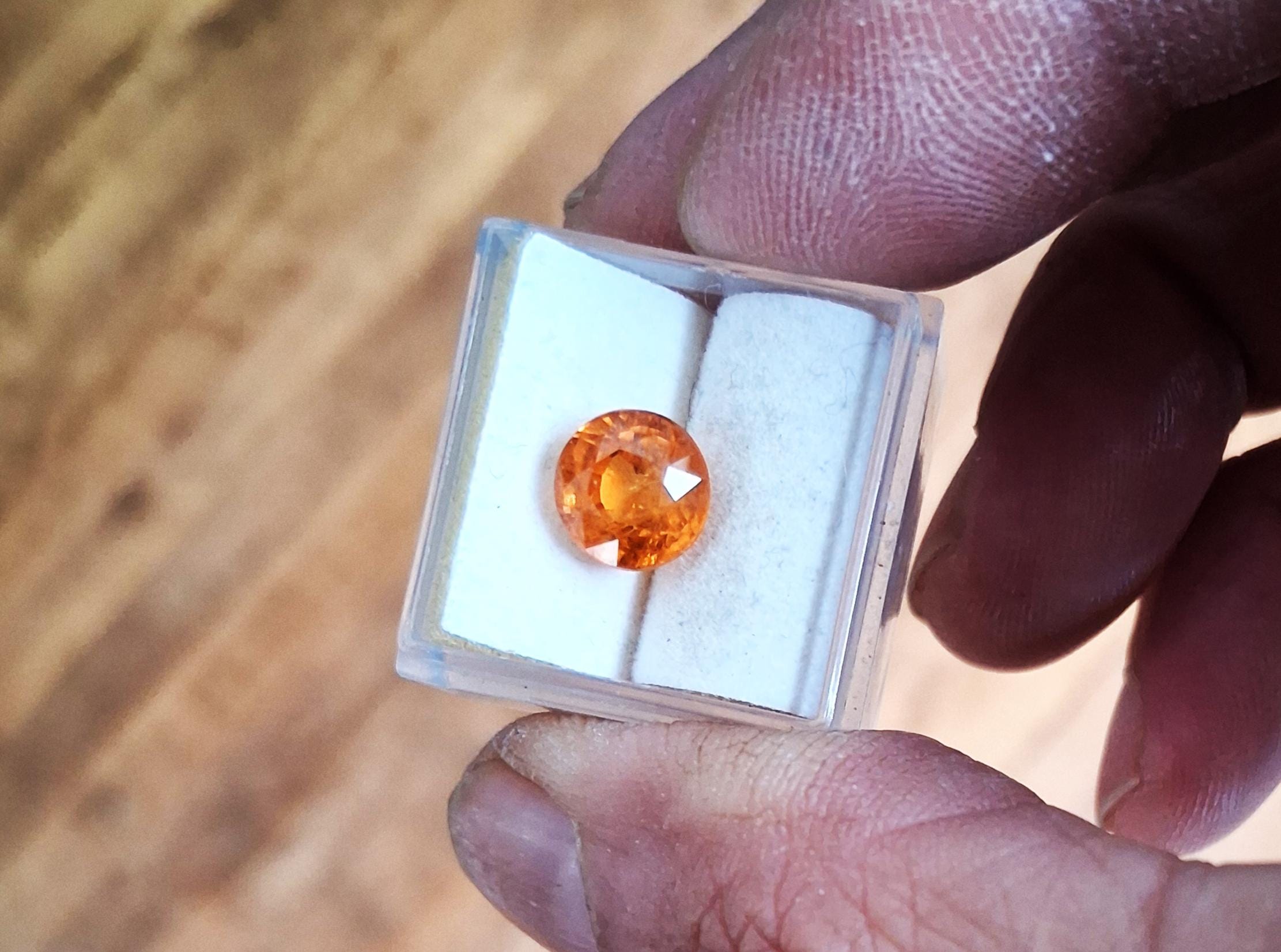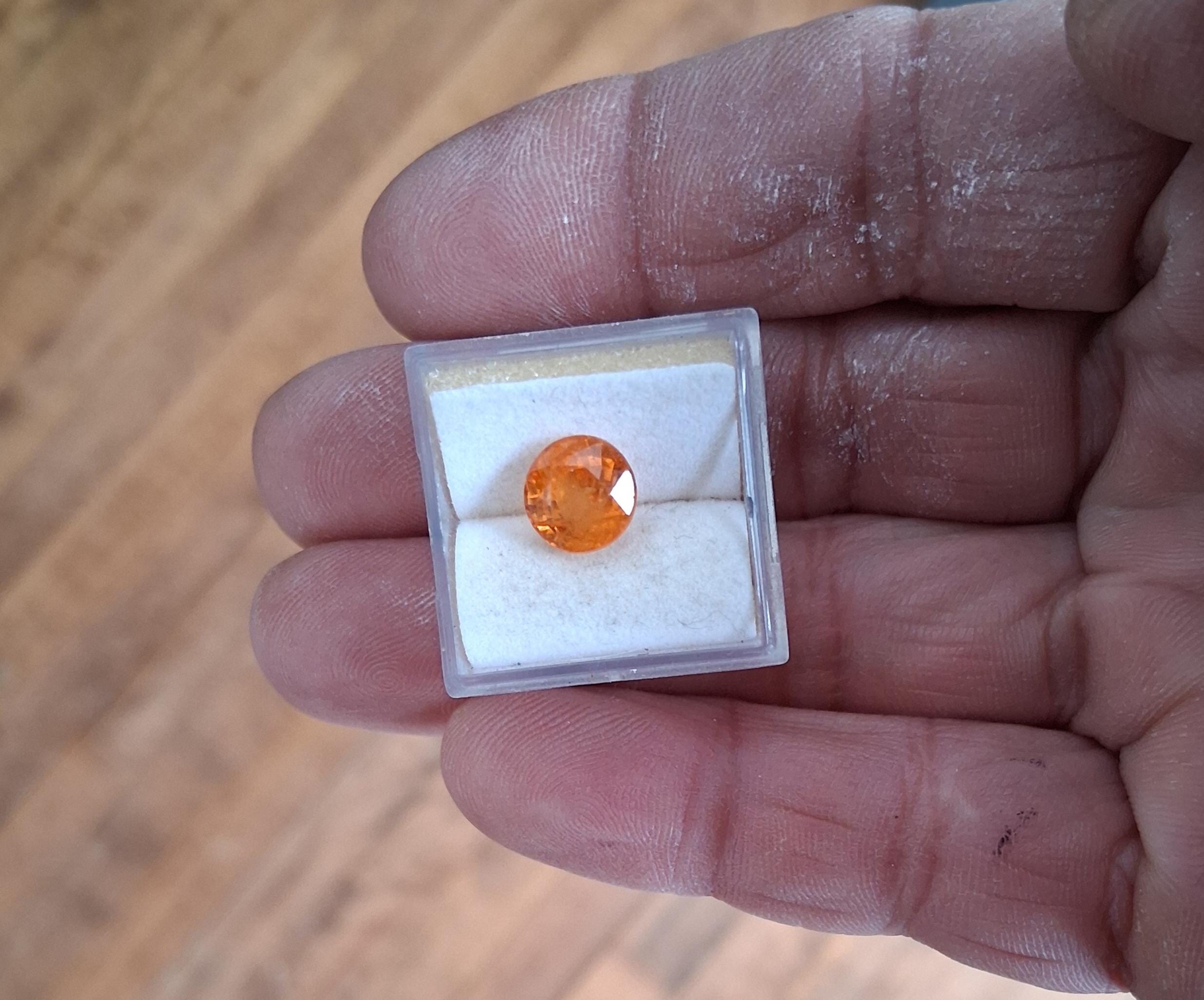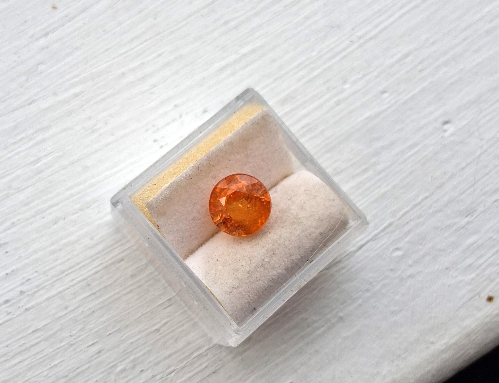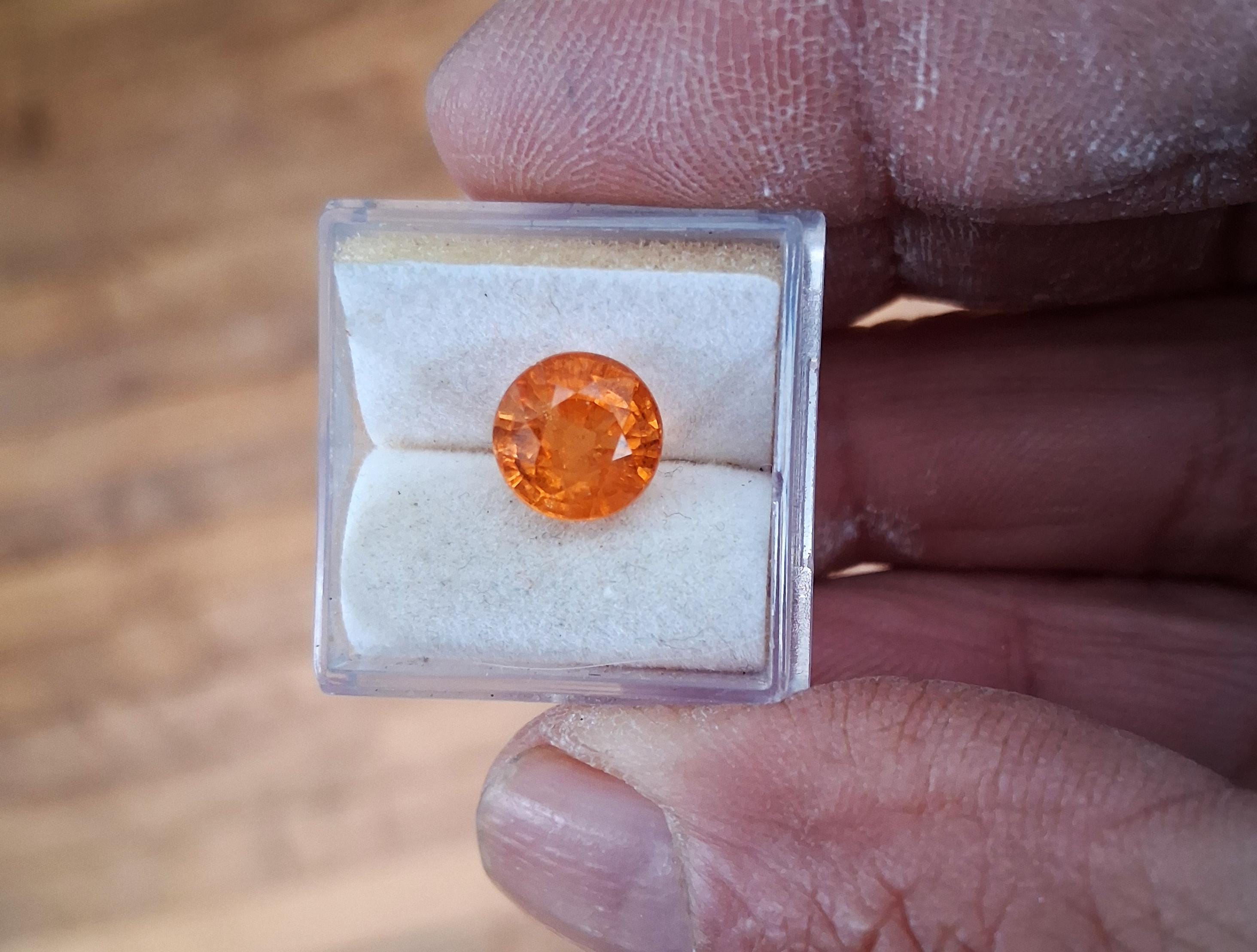 Natural round mandarin garnet January birthstone for custom jewelry, size: 8 mm, weight: 3.42 cts, clarity: some inclusions, color: orange. origin: Brazil