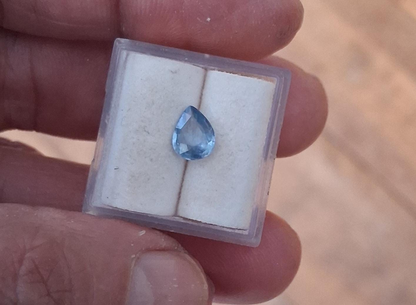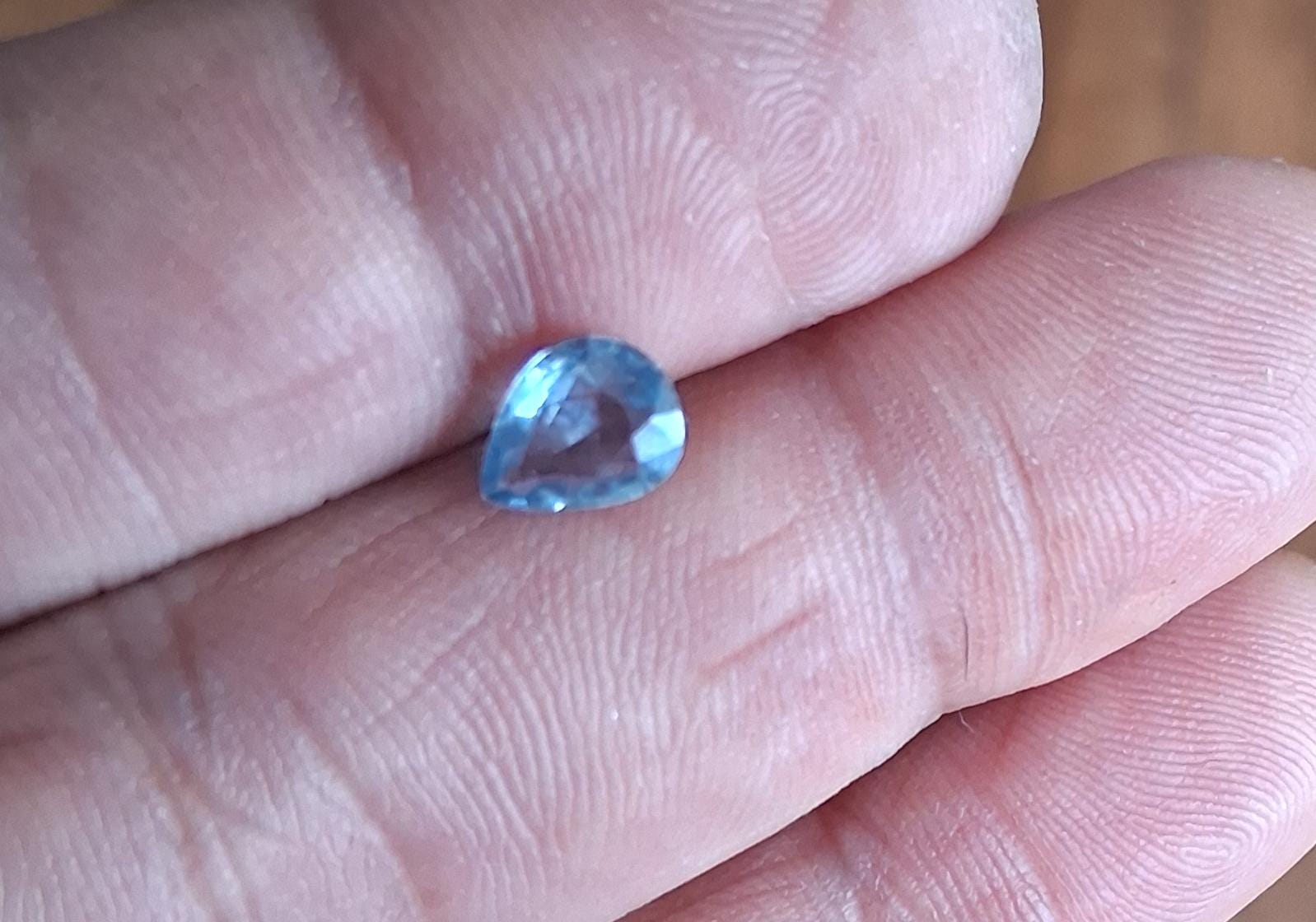 Natura light blue sapphire pear shape for engagement, September birthstone for jewelry gift. Weight: 1.02 cts, size:7.6x 6 mm tear drop, SBL 119