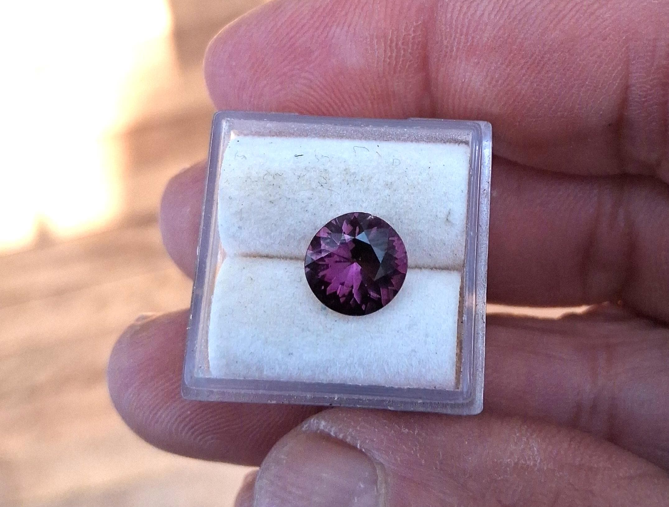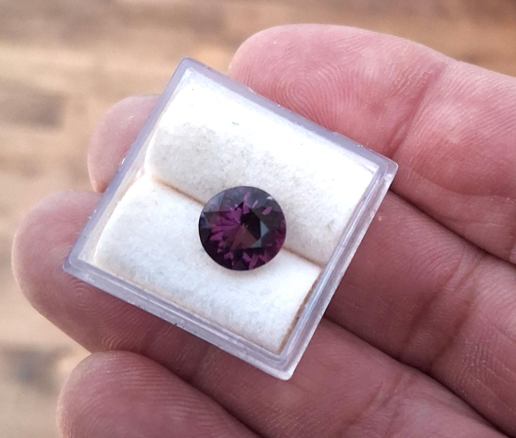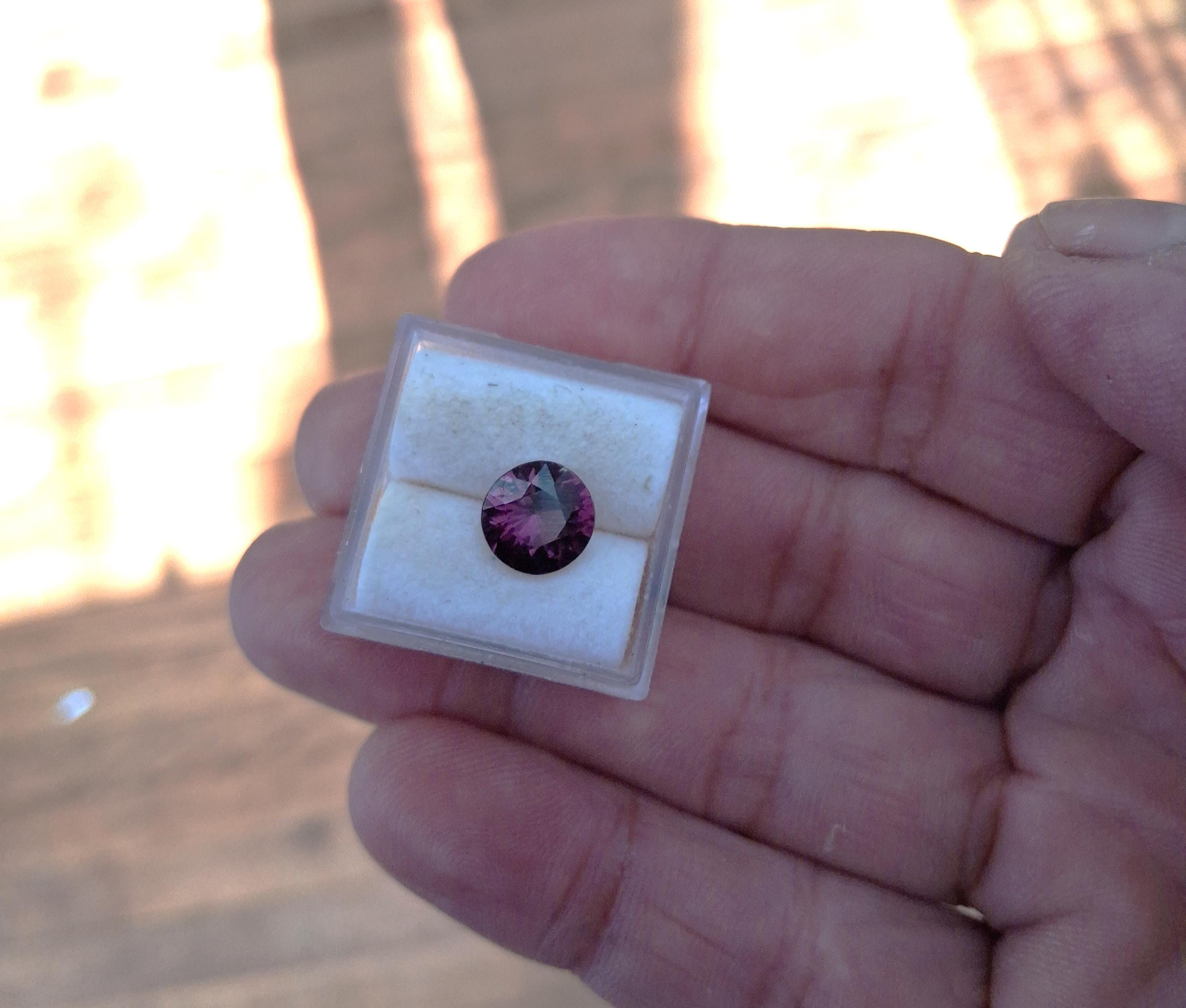 Ceylon precision cut spinel gemstone 8.5mm round shape for jewelry. weight: 2.05 cts, size: 8.5mm round, clarity: eye clean color: grape purple . origin: Ceylon Treatment: None.
