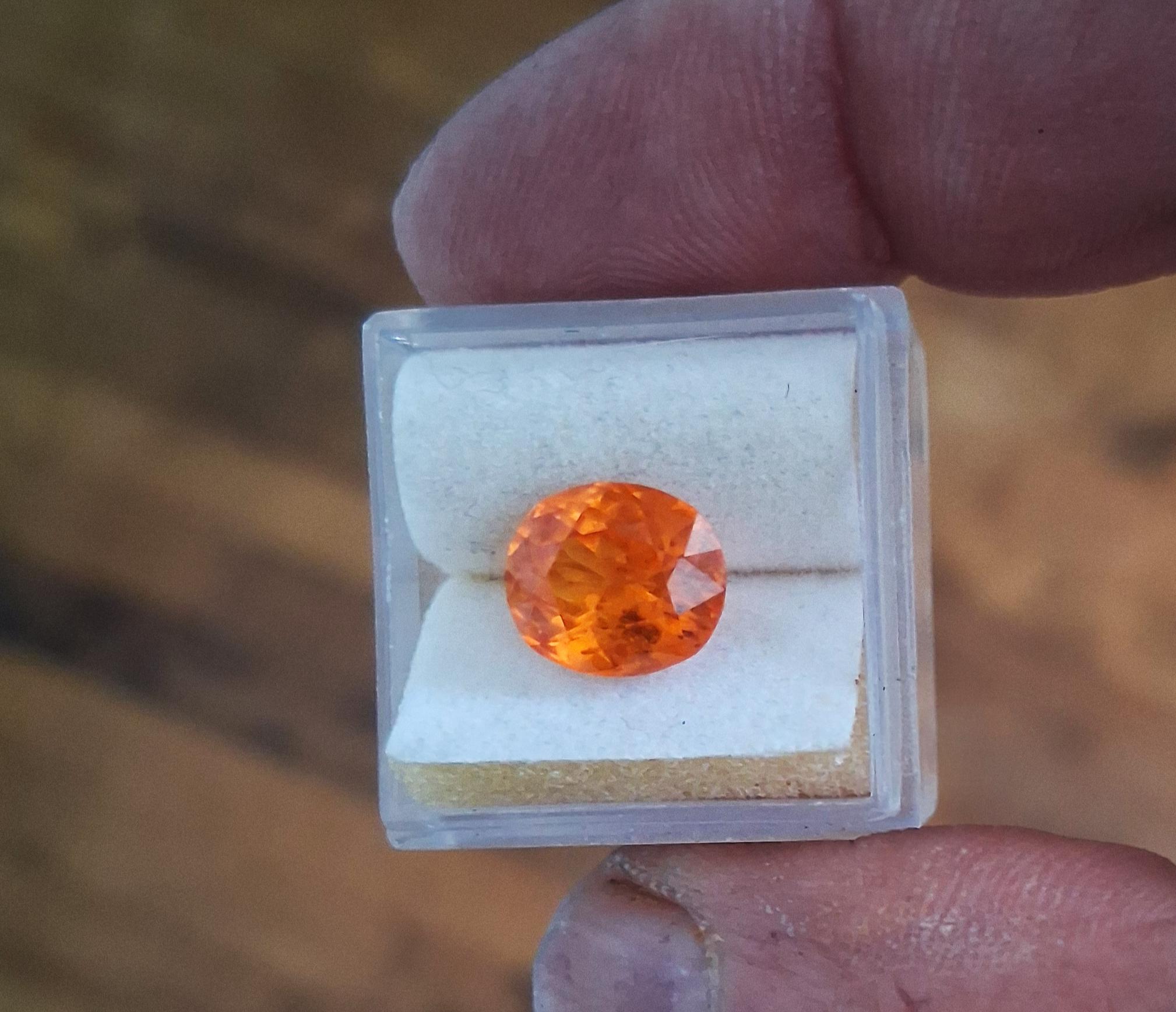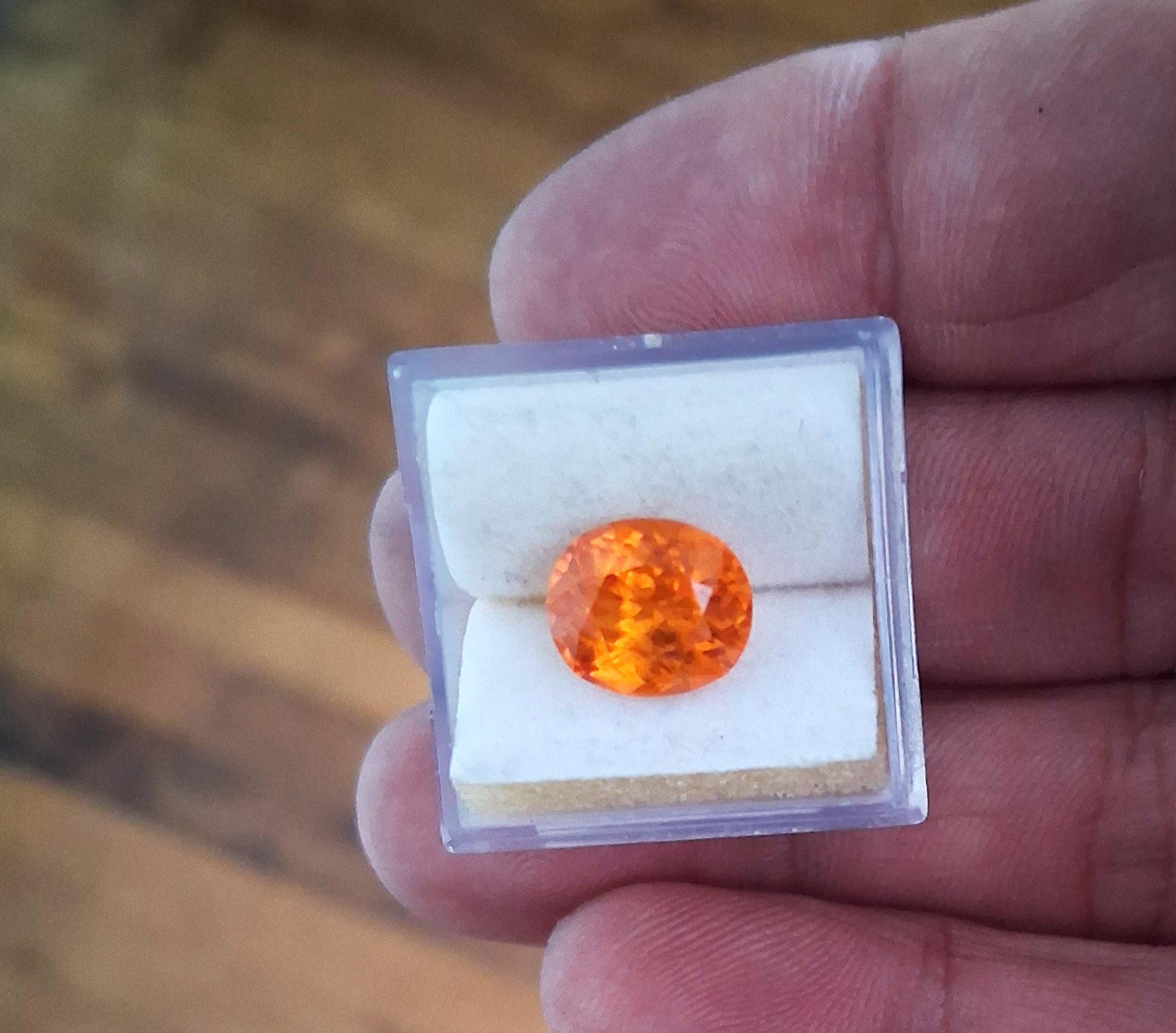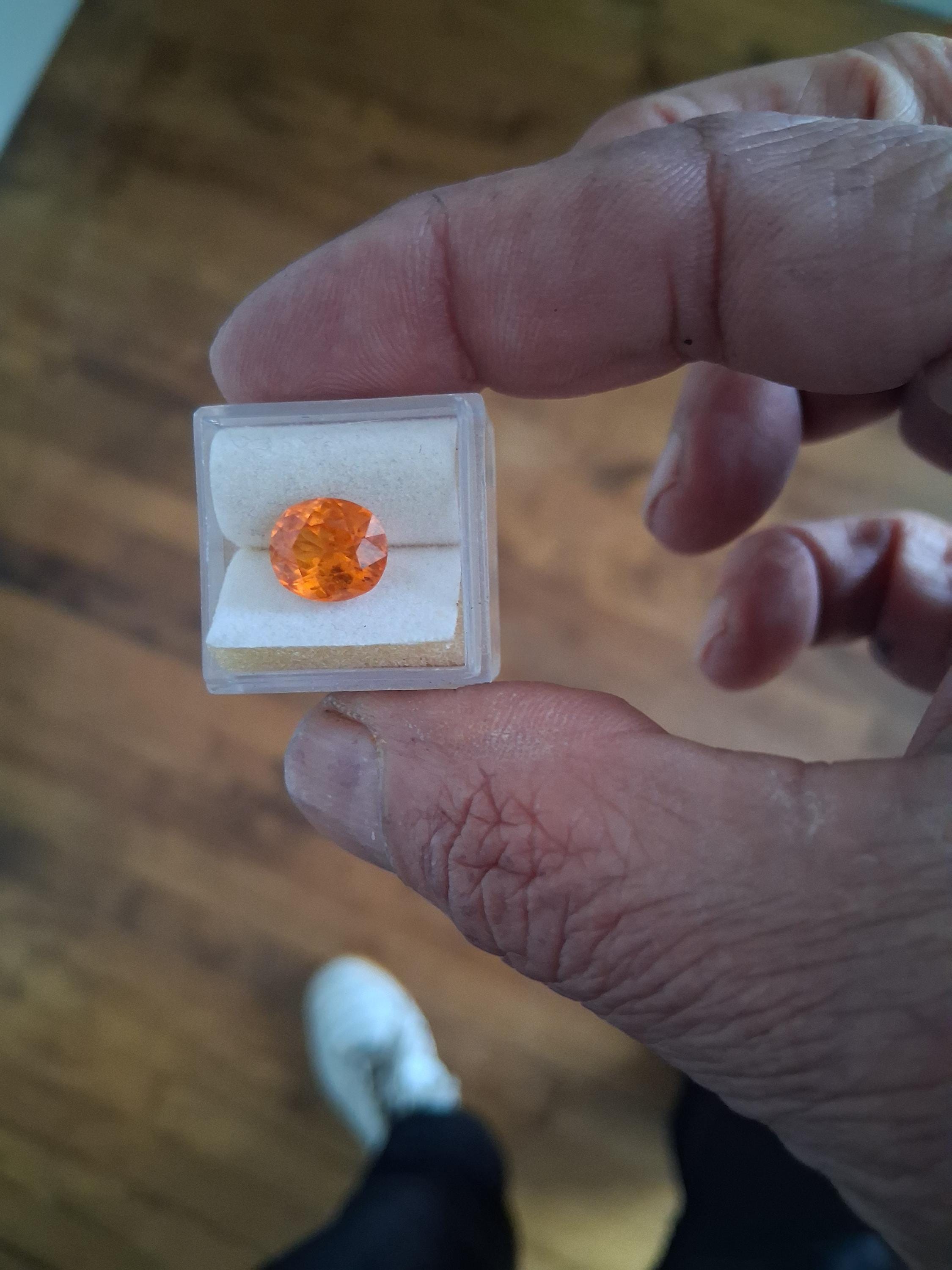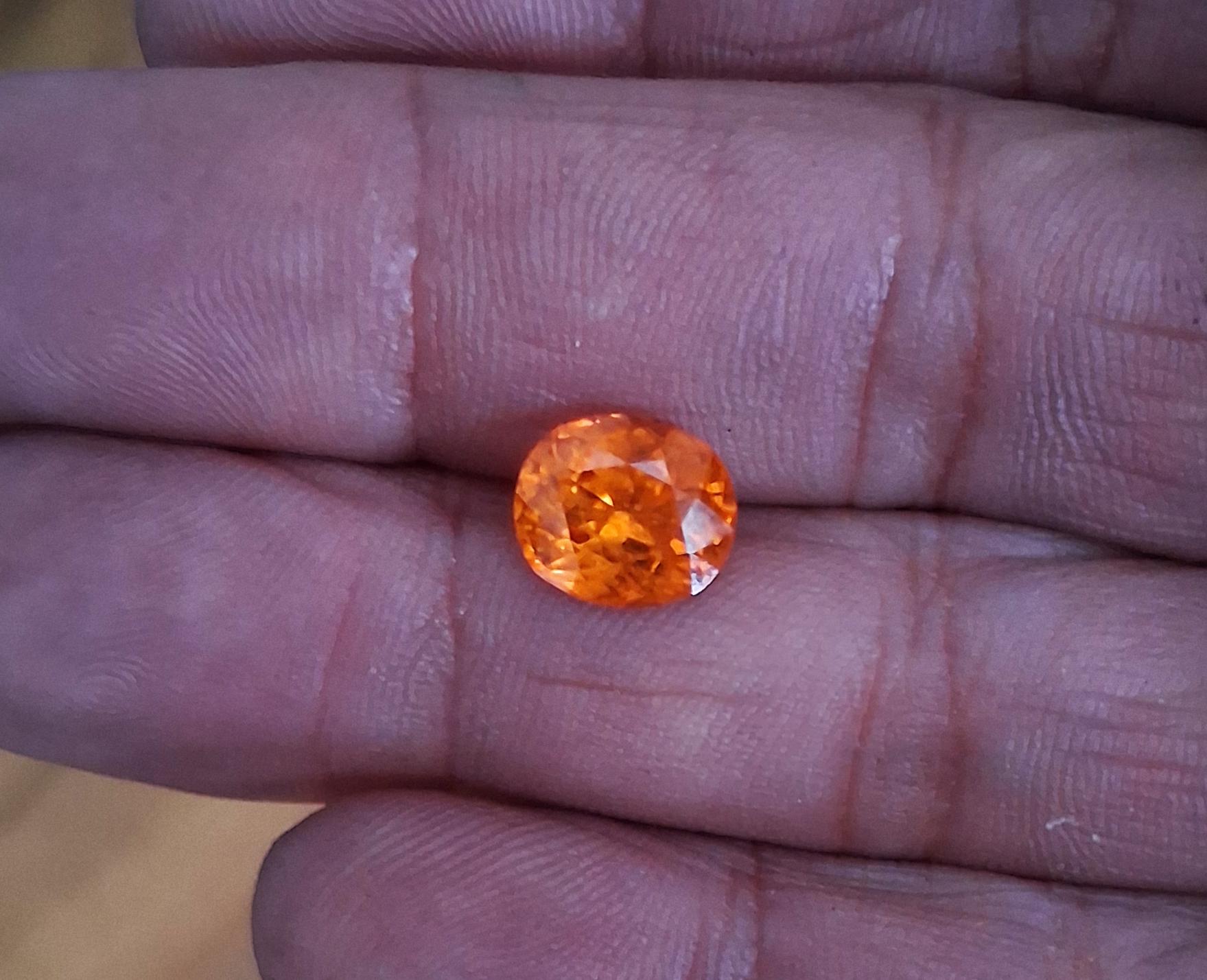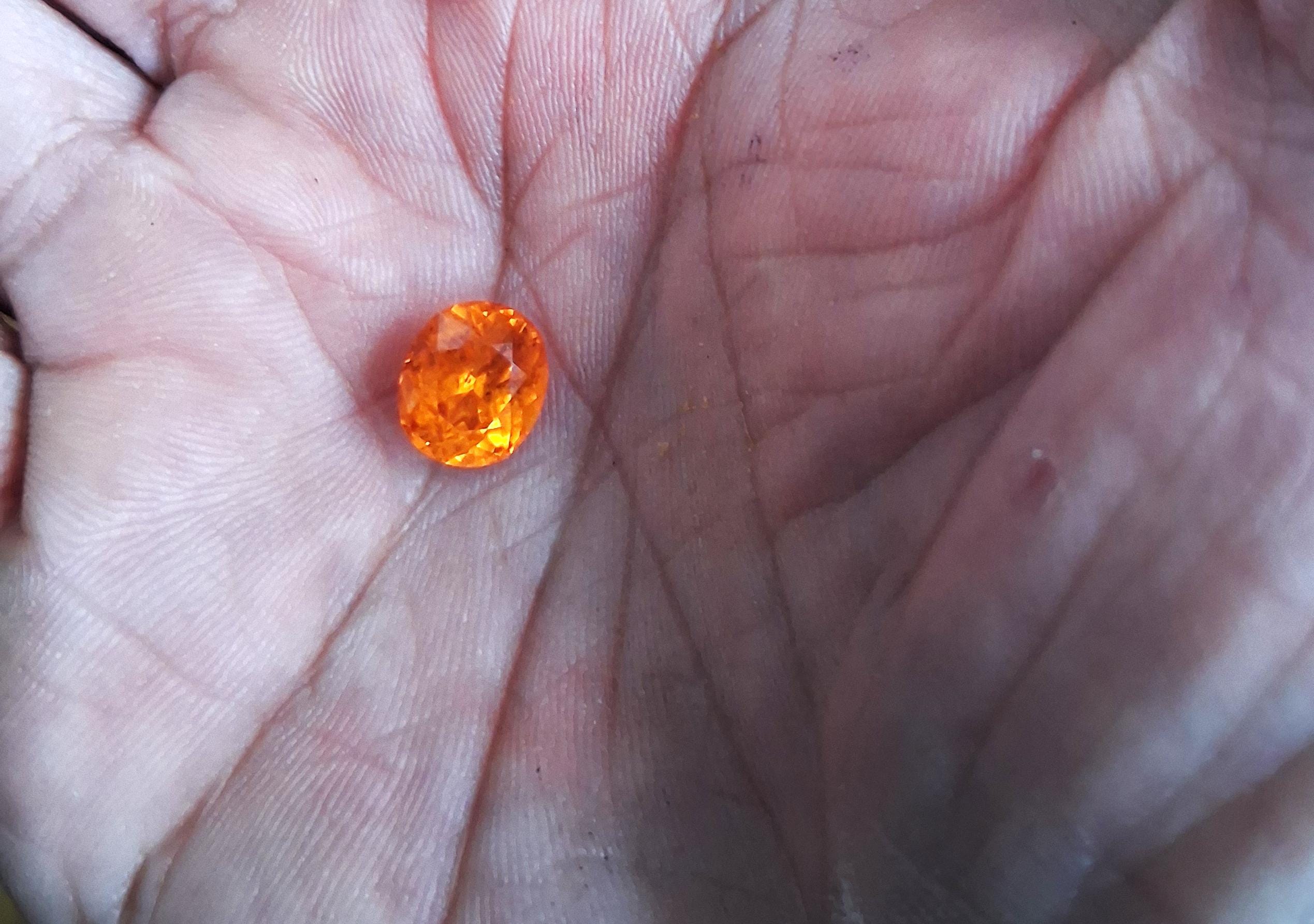 Orange oval mandarin sapphire for jewellery. weight: 2.93 cts, size: 9.7 x 8.4 mm oval beryllium treated, clarity: minor inclusions, color: neon orange, origin: Ceylon,