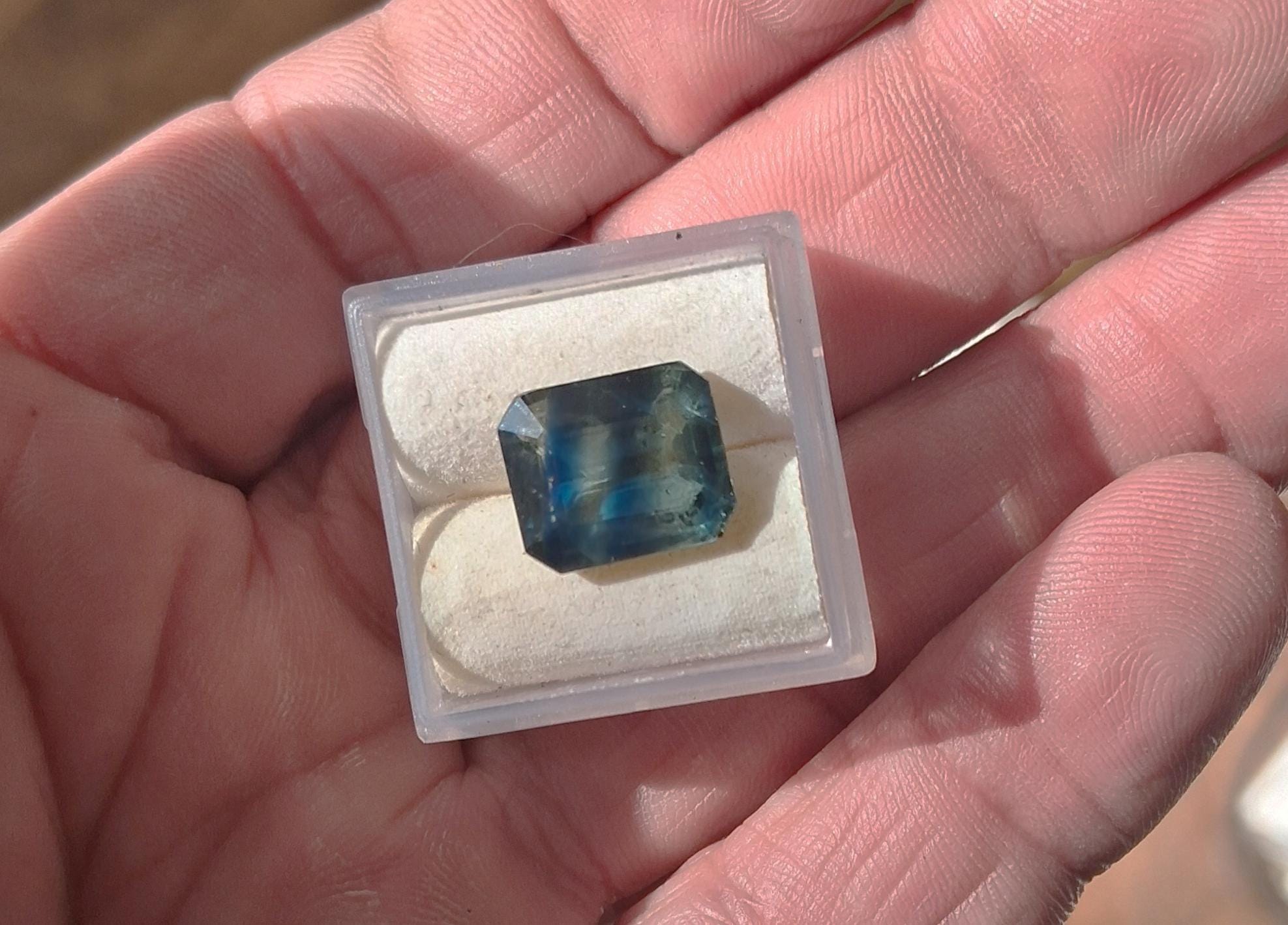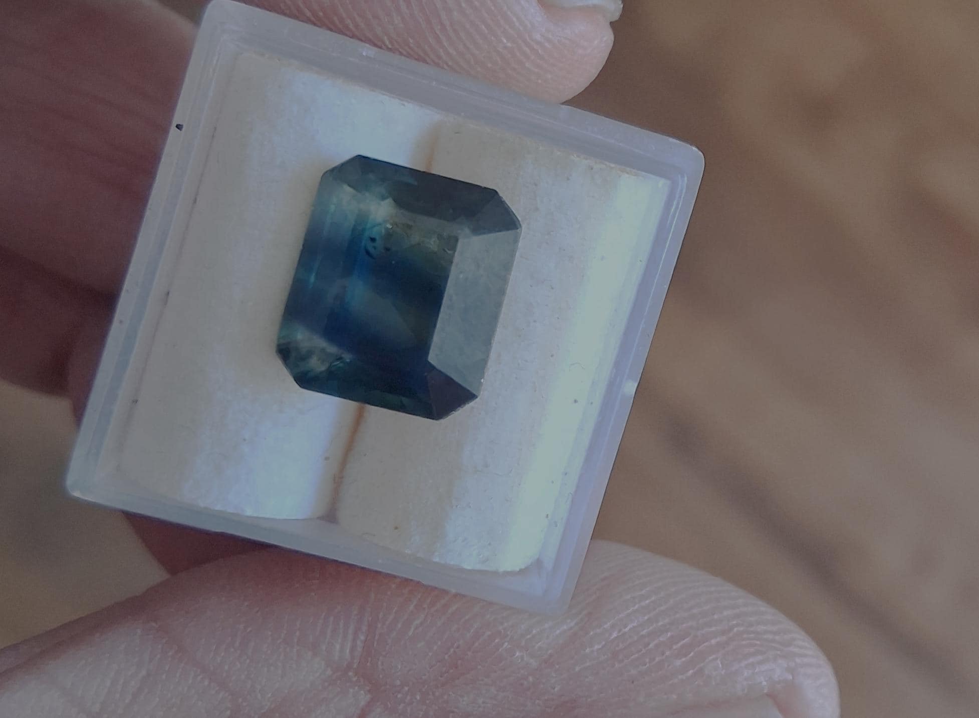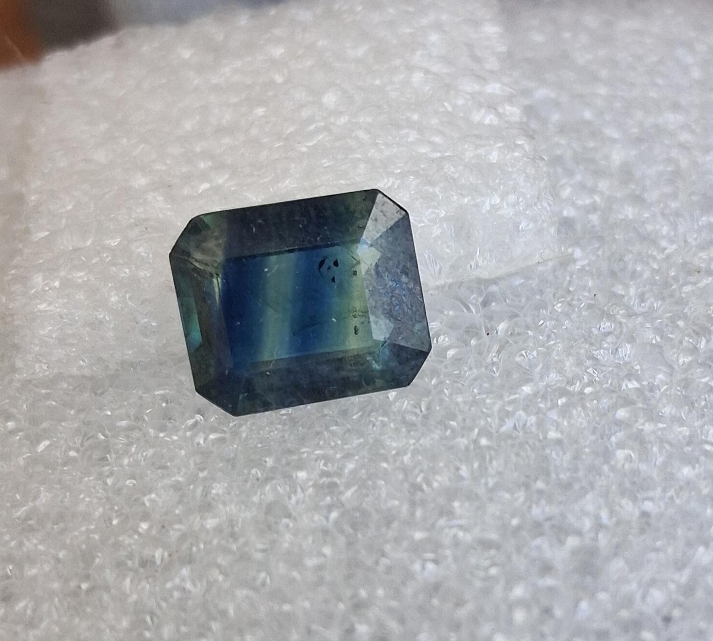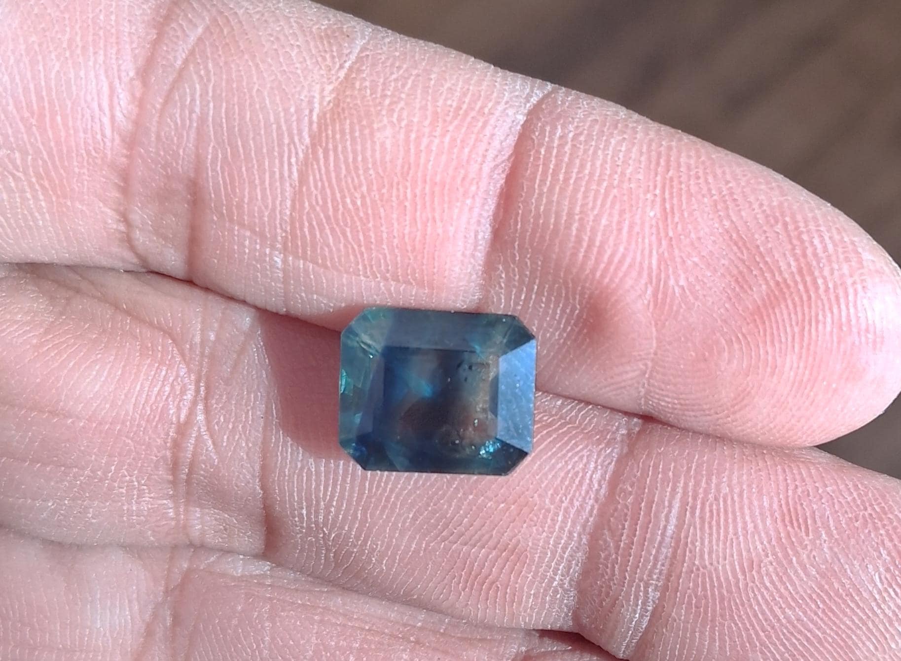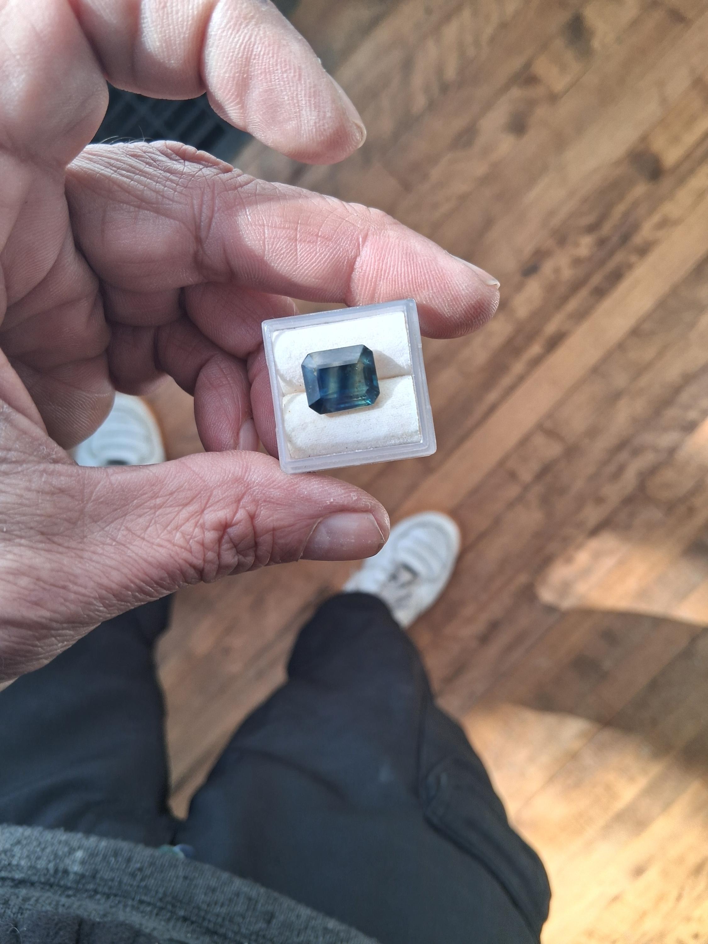 Natural large Parti color blue green sapphire emerald cut shape gemstone collectors, September birthstone for anniversary jewelry. size: 11.4x9.7 mm, weight: 5.14 cts, clarity: some inclusions, inventory: SBG