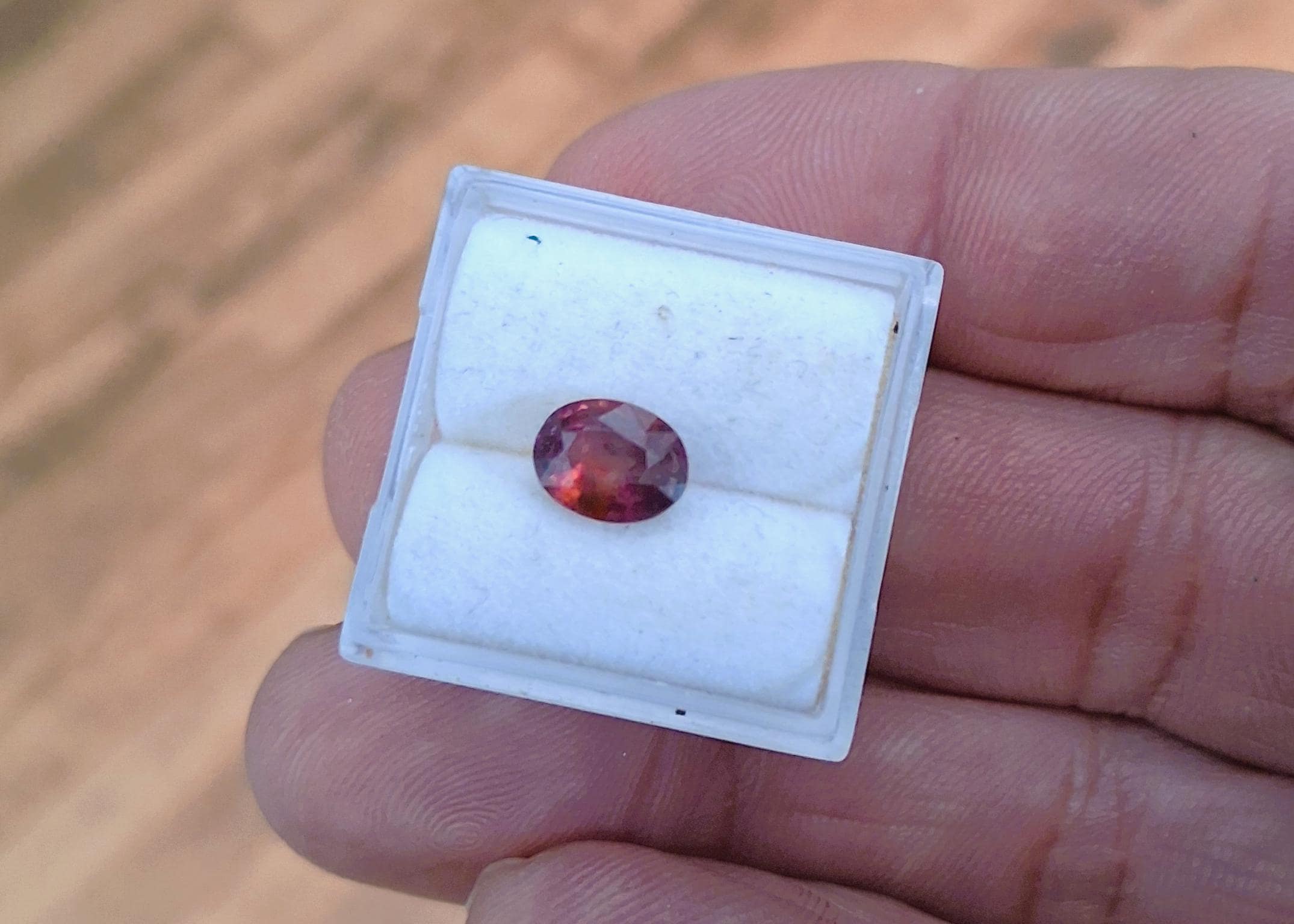 Natural oval magenta sapphire, Ceylon gemstone for collectors and jewelry makers. Weight: 1.52 ct, Size: 7.5x5.8 mm, clarity: minor inclusions, color: magenta copper, Origin: Ceylon. SPI173