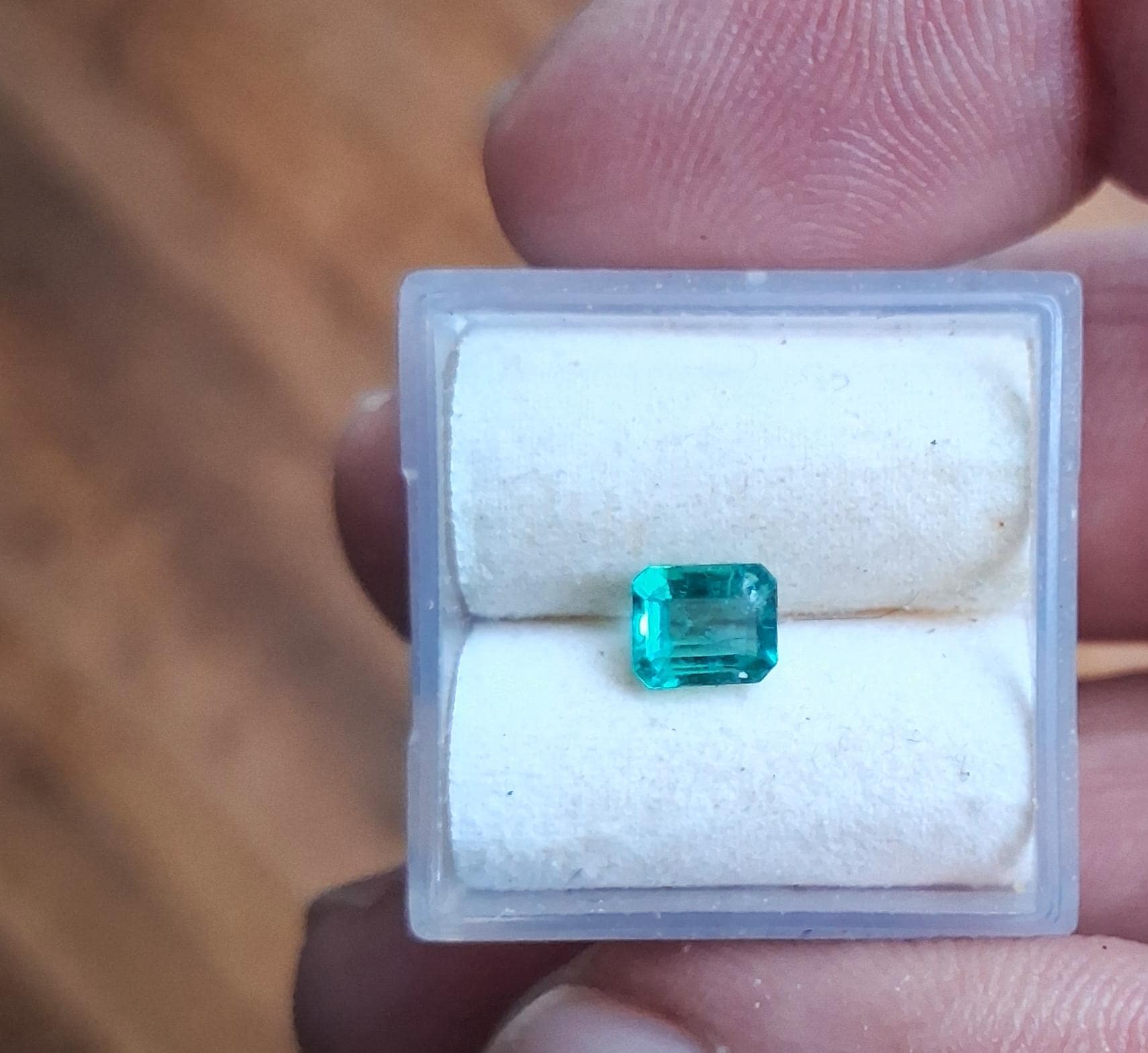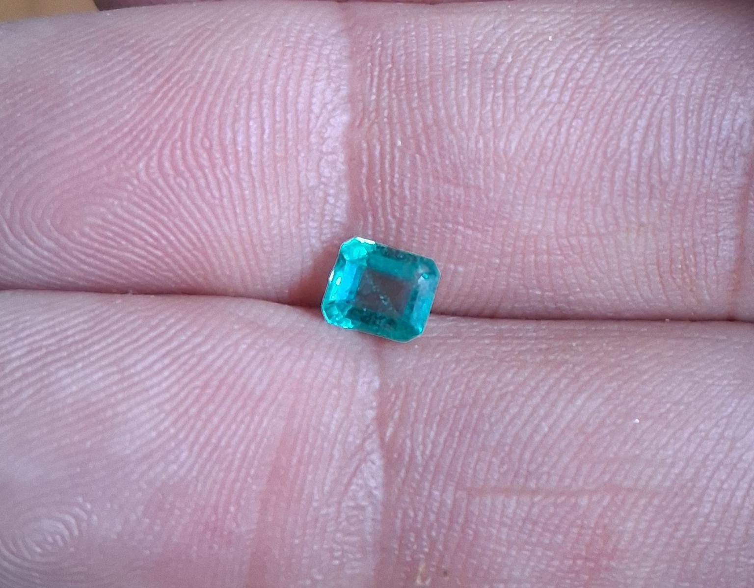 Fine Colombian emerald May gemstone for anniversary jewelry. Size: 5.1x.4.4mm square, weight :0.55 ct, clarity: good clarity, origin: Colombia