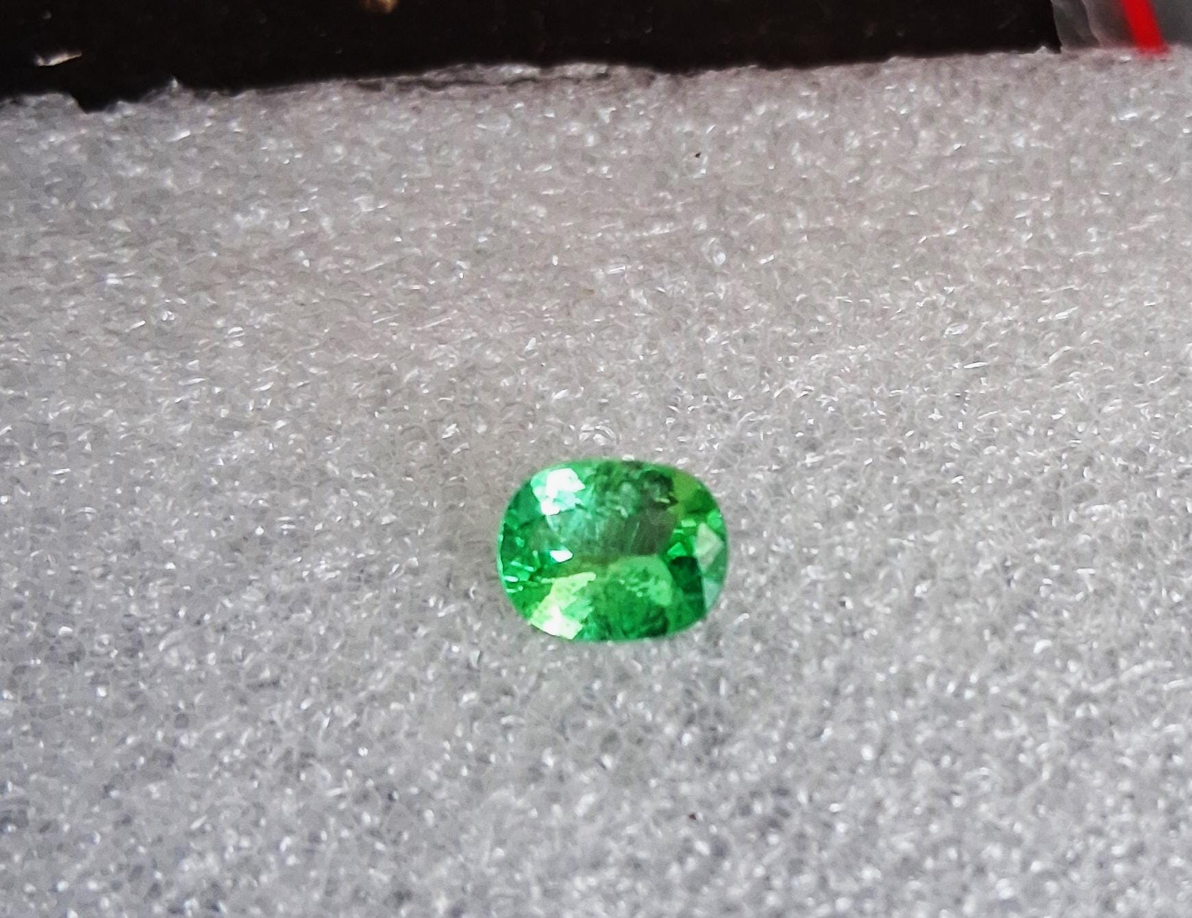 Large cushion green tsavorite garnet January birthstone 10x8mm for custom jewelry. Size: 10x8mm cushion, weight: 2.40 cts, clarity: some inclusions, color: medium light green. Note: the stone looks a bit darker in the photos.