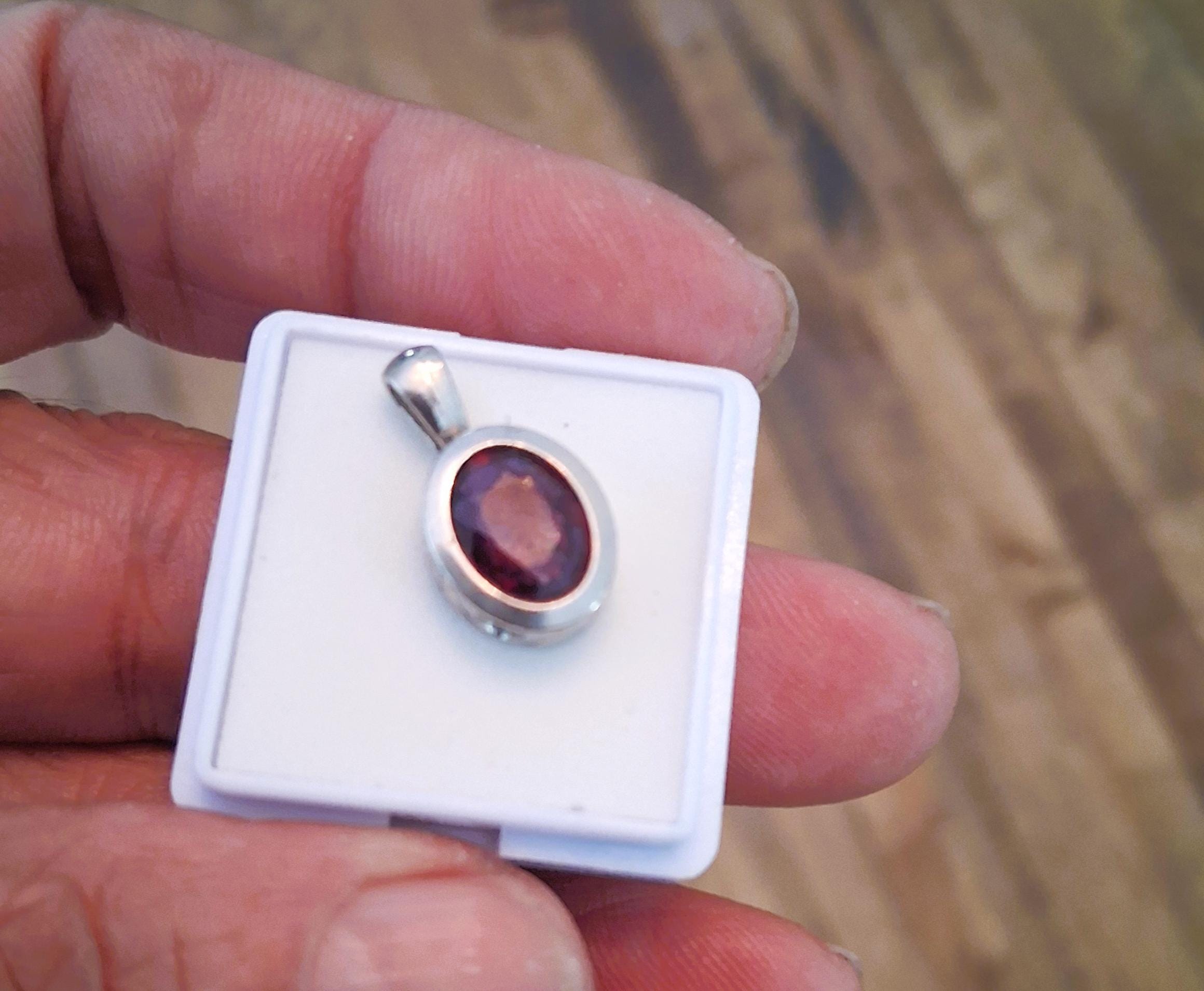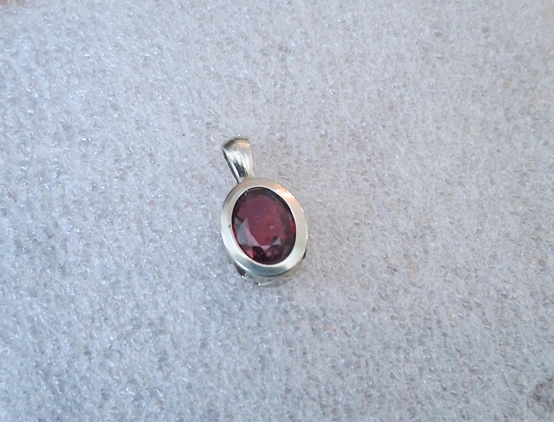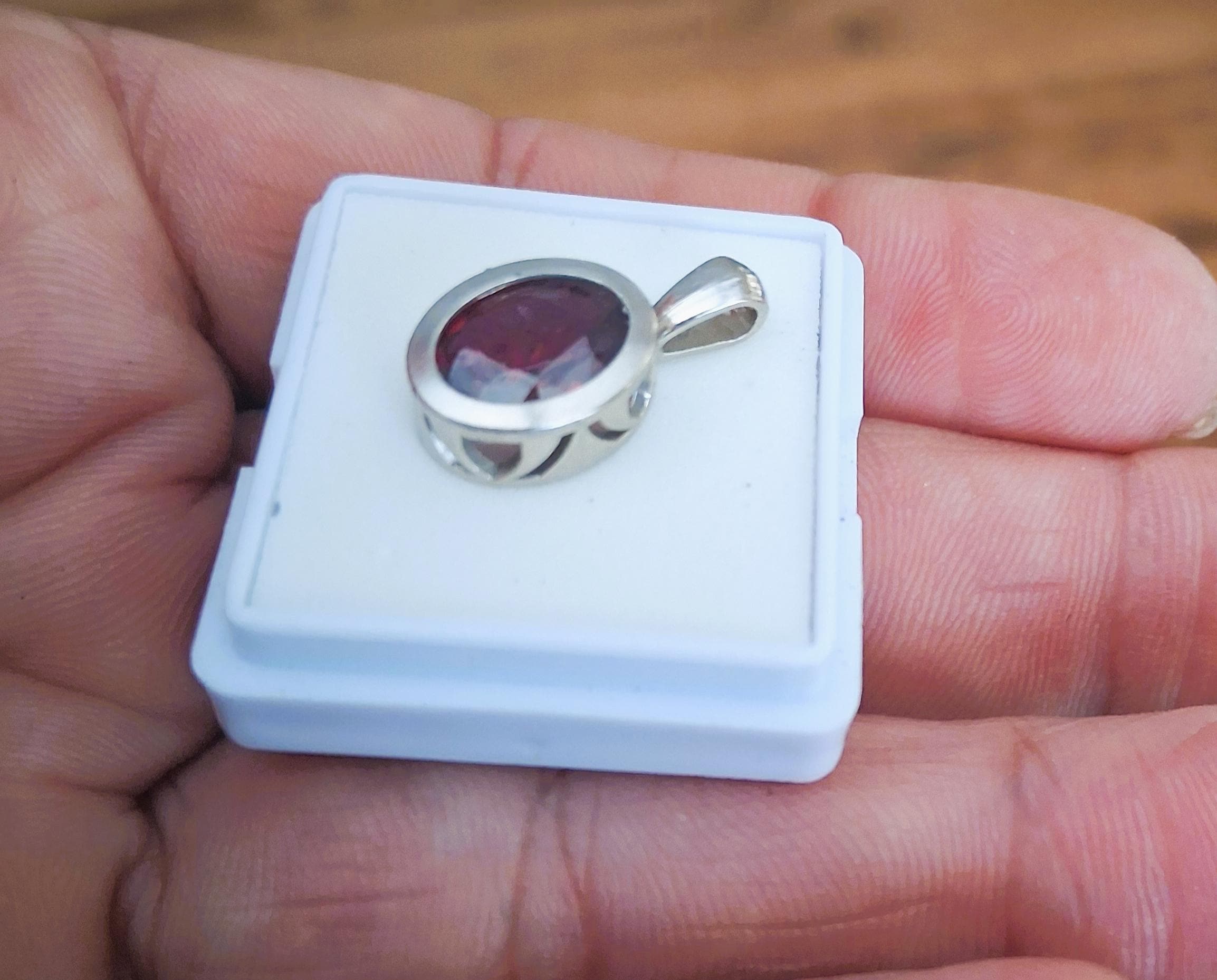 Ruby 14k white gold pendant bezel set gift for her , red gemstone size 9x7 MM oval, weight : 2.50 cts, Mount: 14k white gold bezel setting. Chain not included