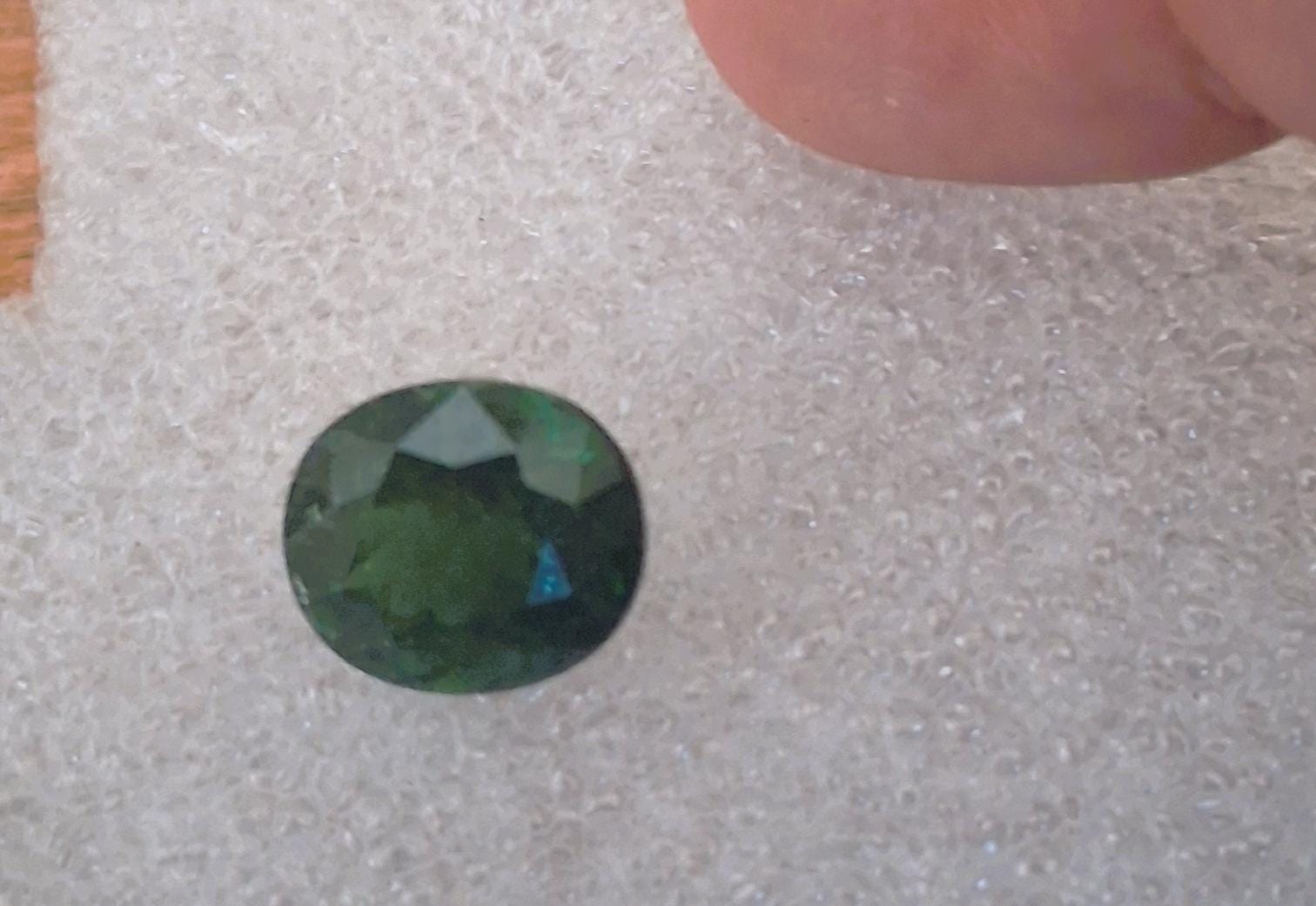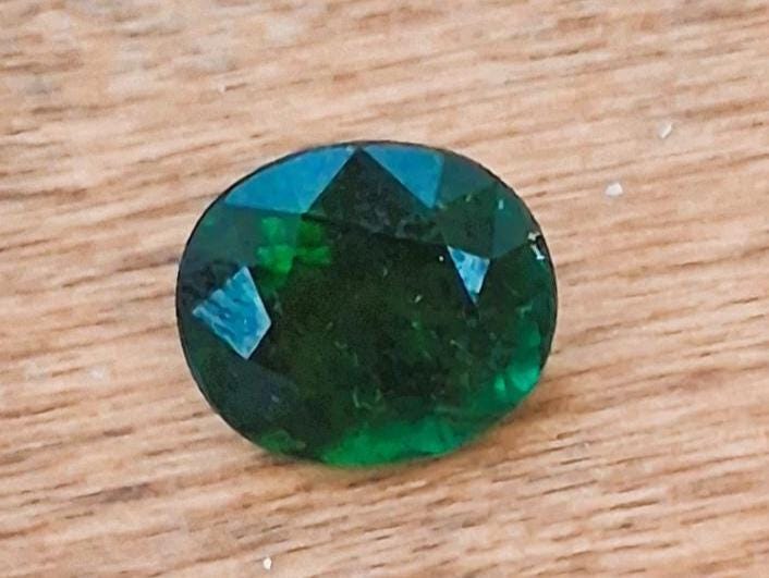 Forest dark green oval tourmaline for September birthstone jewelry. Size 12.5x11mm, weight: 6.75 cts, clarity: inclusions, color: very dark green, Origin; Brazil