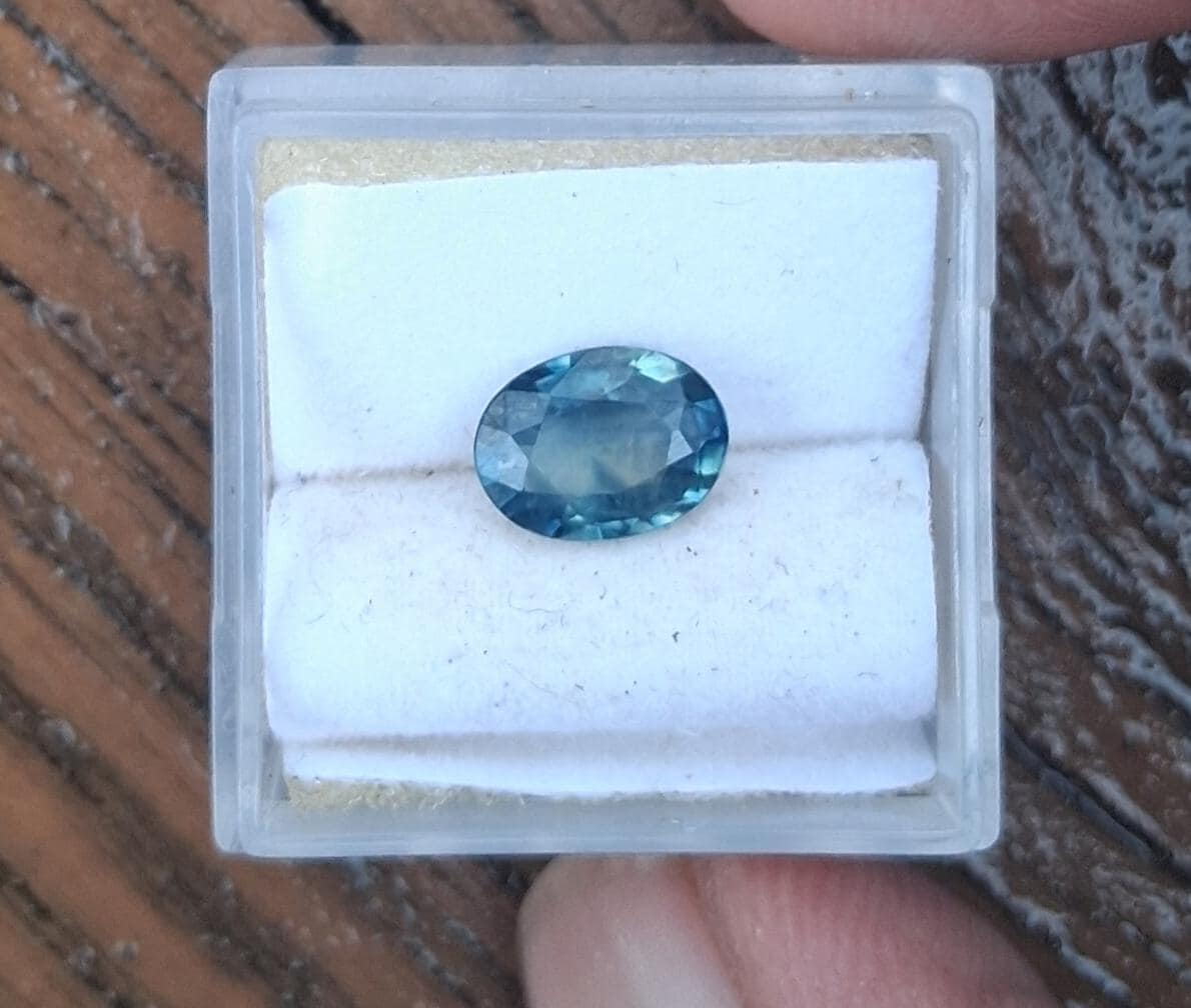 Montana teal oval blue sapphire for anniversary jewelry gift, September birthstone. weight: 1.33 ct size: 8x 6 mm oval, color: teal blue, shape: oval, clarity: minor inclusions , origin: Montana, USA. SBG698