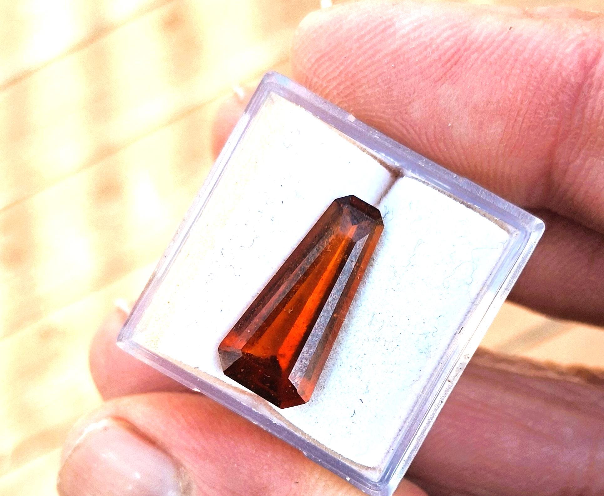 Spessartite Garnet unique shape for anniversary jewelry pendant, January birthstone. weight: 4.10cts, size: 17x8mm , origin: Africa. color: red orange. clarity: no obvious inclusions
