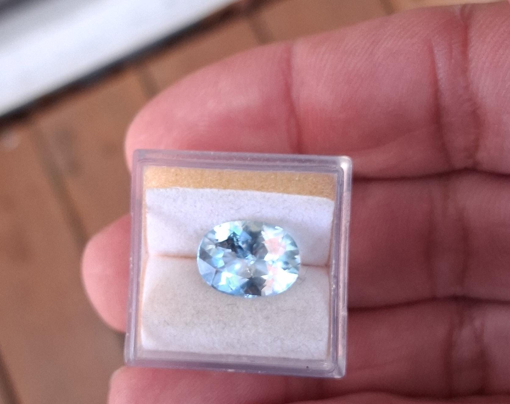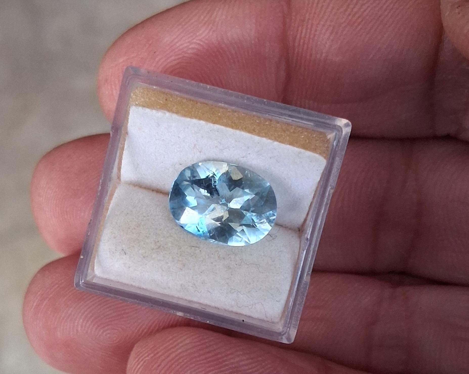 Precision cut gemstone aquamarine March birthstone for anniversary jewelry. color: sky blue, origin: Brazil, size: 11.4x8.5mm, weight: 2.85 cts , clarity: included