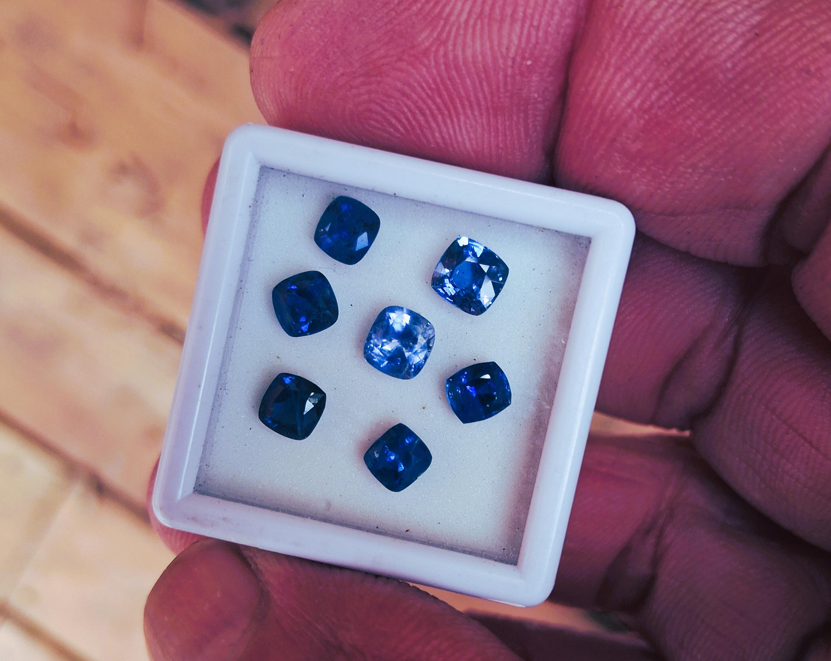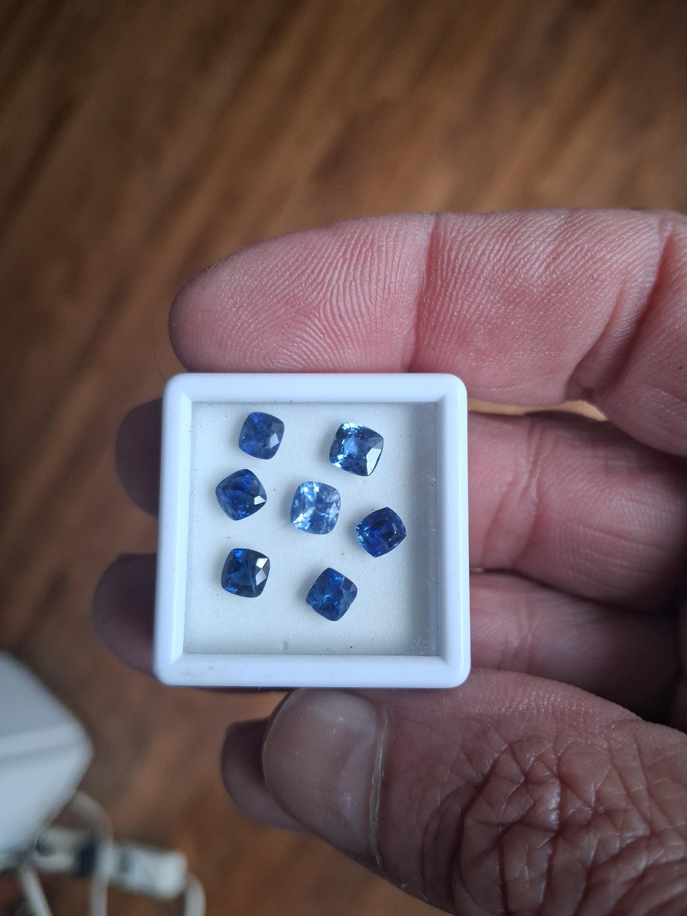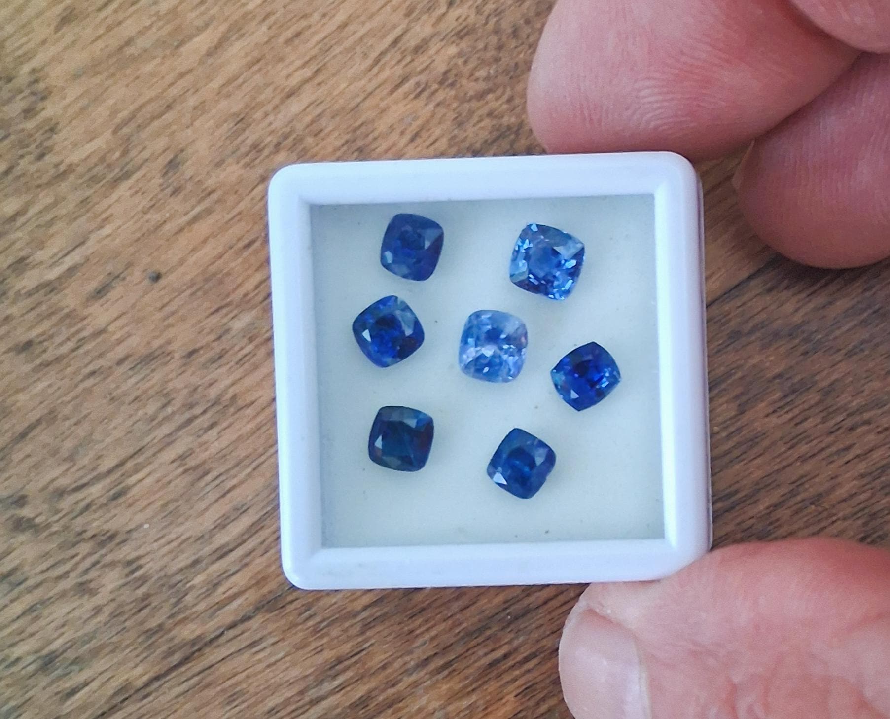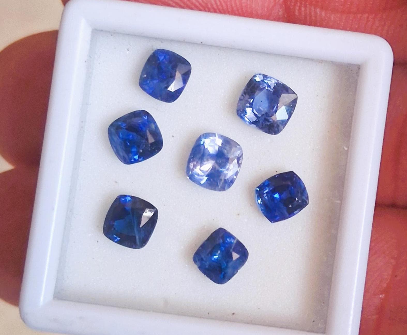 Natural royal blue sapphires square cushion approximate sizes from 4.5 to 5 mm for jewellery .Total weight: 3.88 cts, clarity: eye clean to minor inclusions, origin: Ceylon