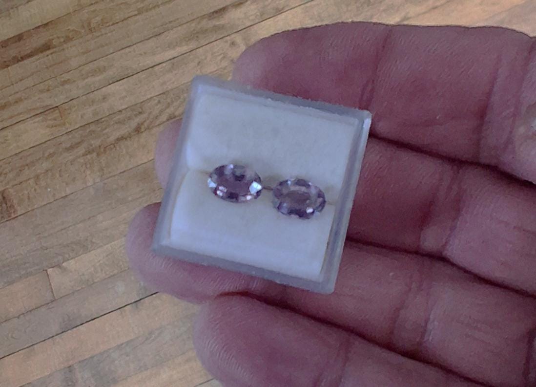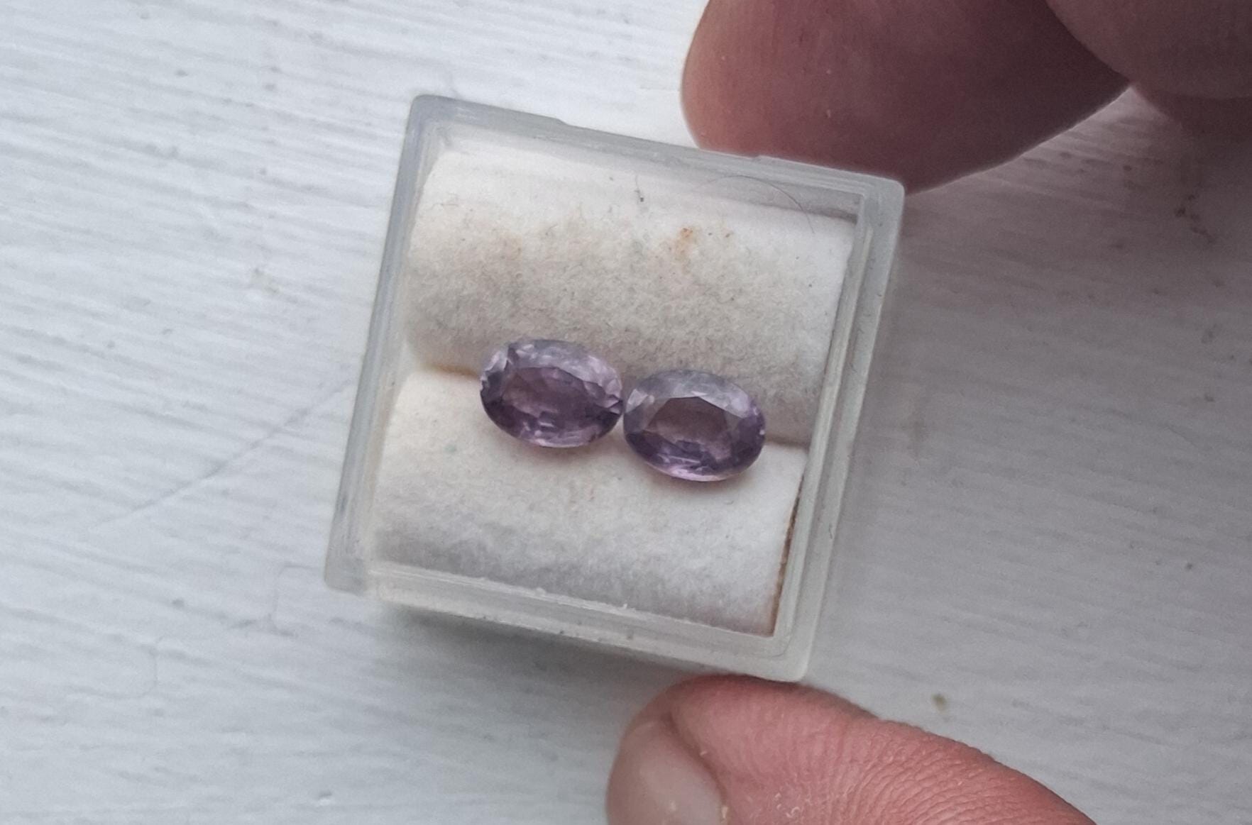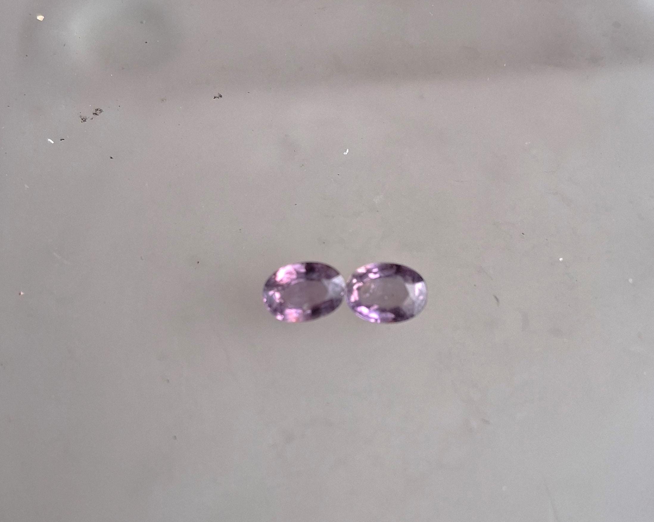 Natural purple sapphire pair September gemstone for earrings jewelry. Total weight: 2.29 cts, Size: 7 x 5.2 mm oval. clarity: eye clean. color: medium purple. Origin: Ceylon