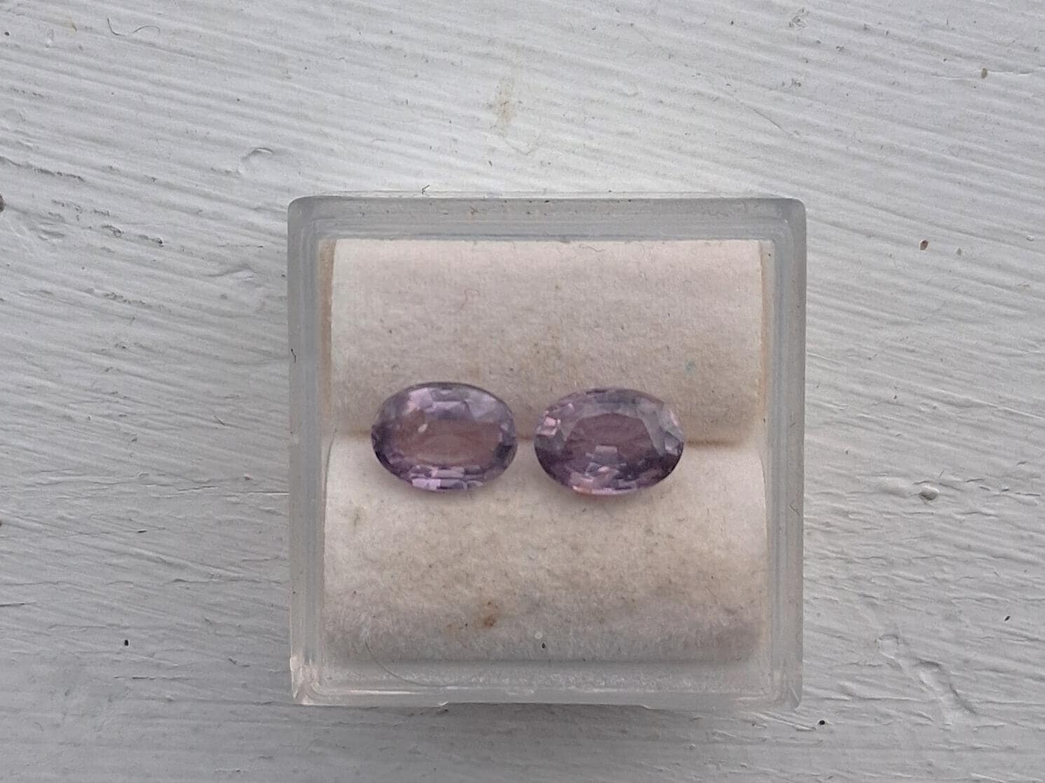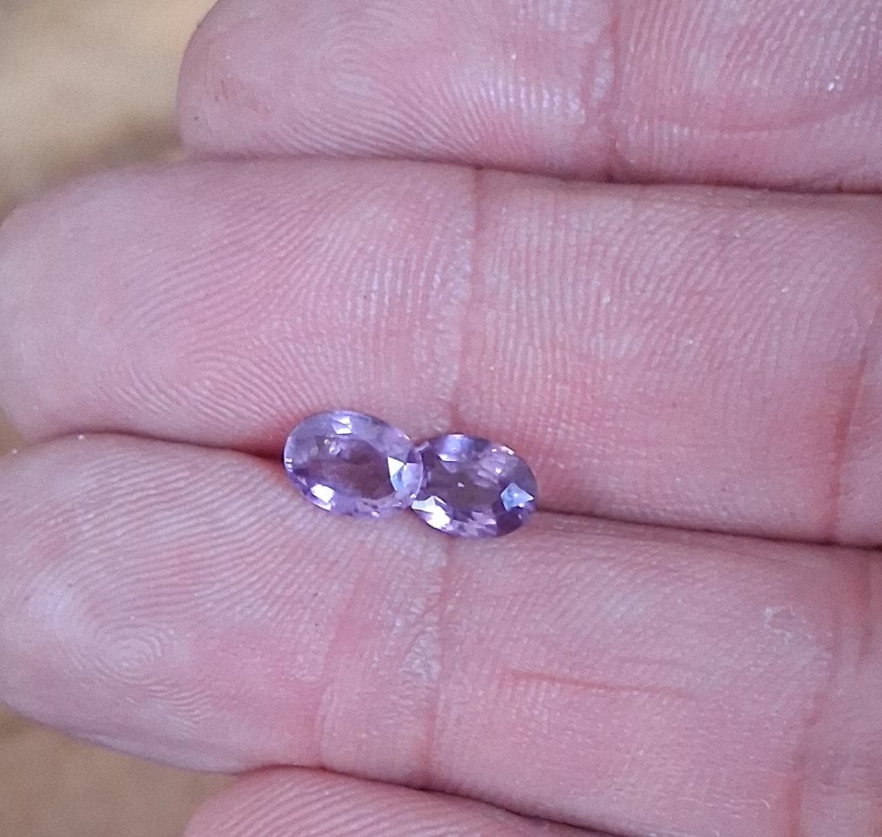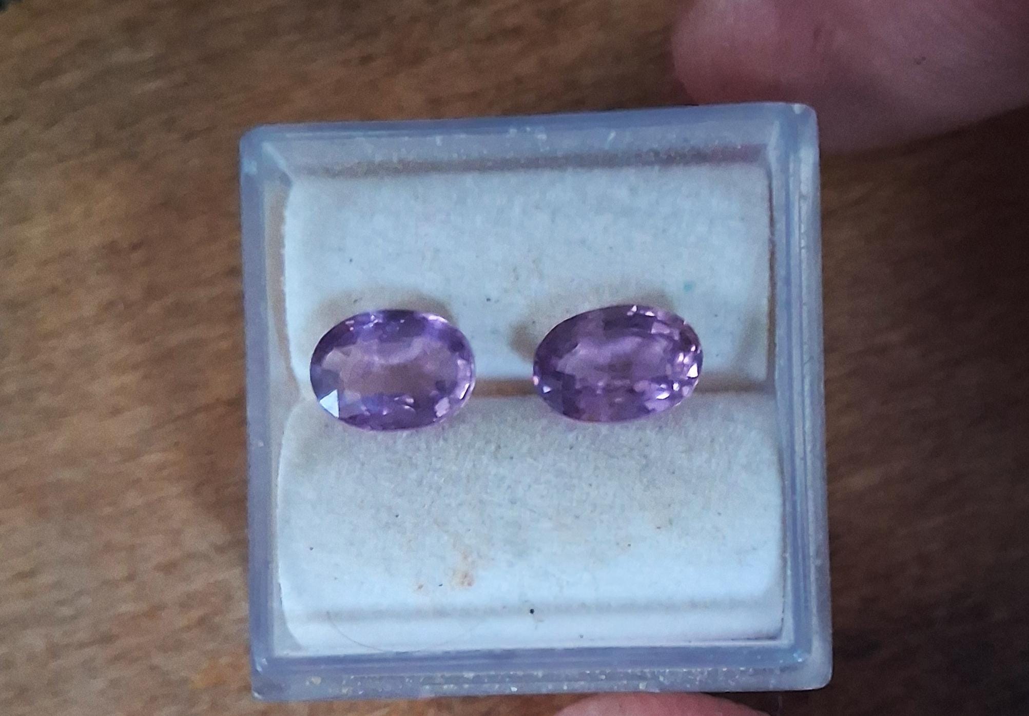 Natural purple sapphire pair September gemstone for earrings jewelry. Total weight: 2.29 cts, Size: 7 x 5.2 mm oval. clarity: eye clean. color: medium purple. Origin: Ceylon