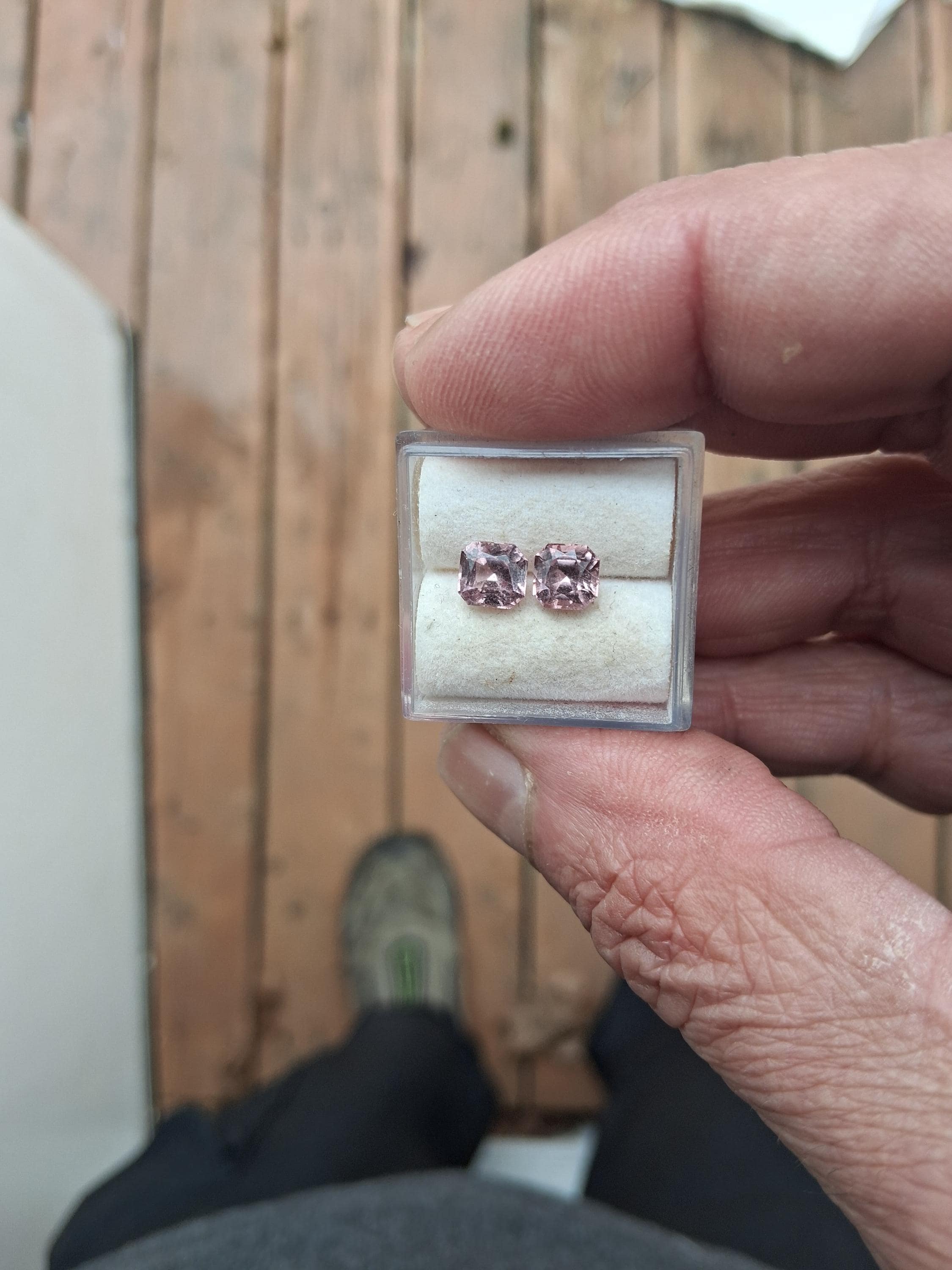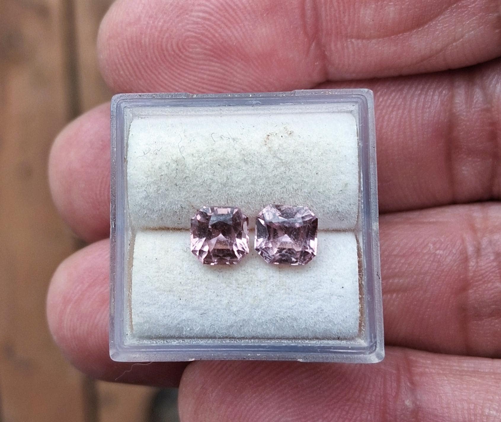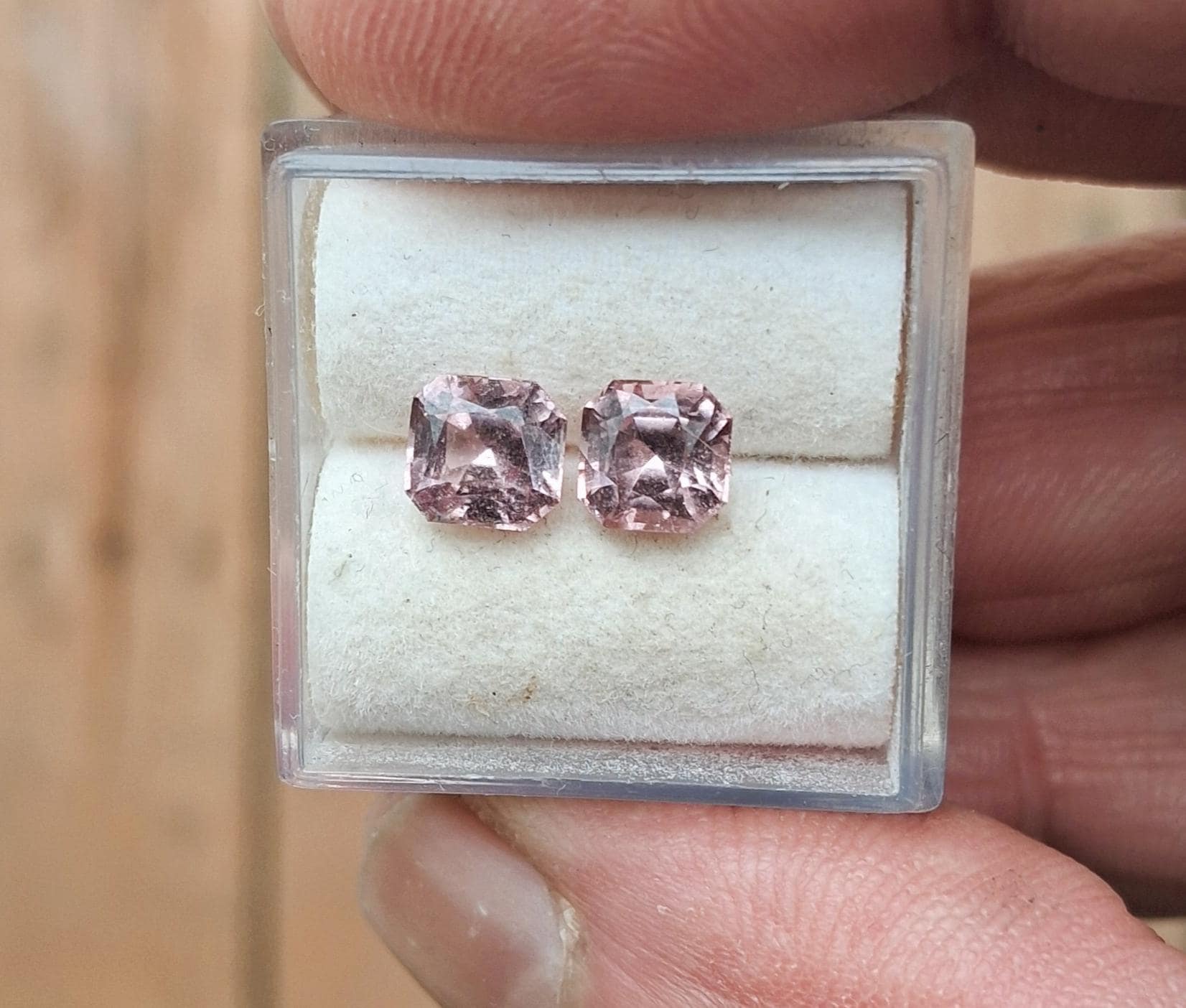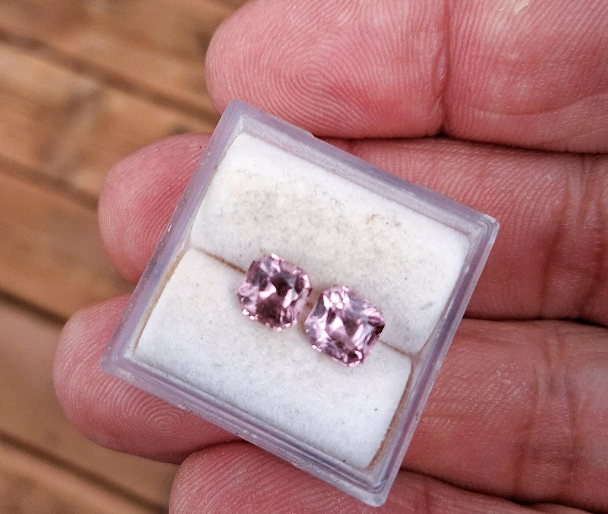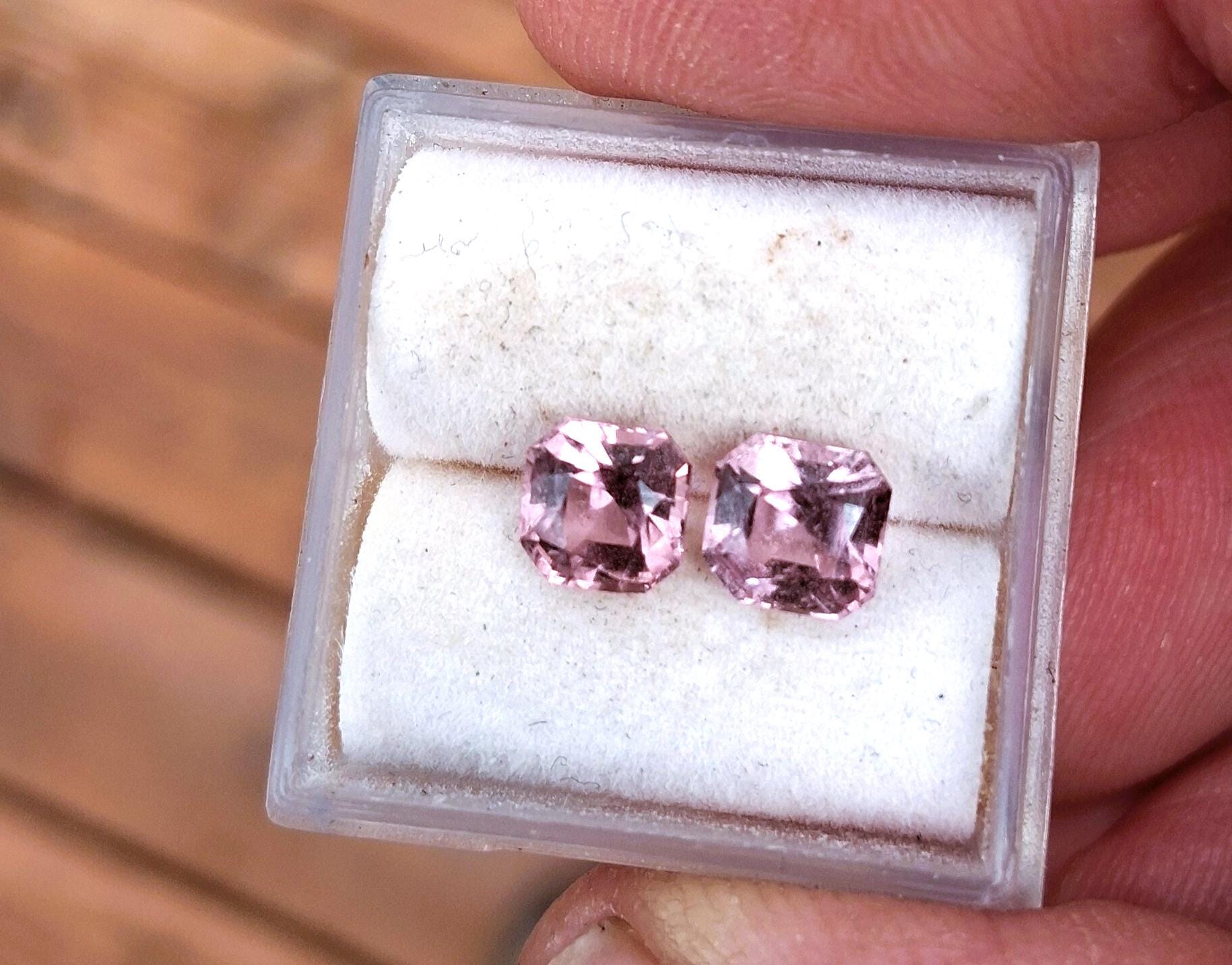 Natural Ceylon precision cut square pink spinels for earrings . total weight 2.07 cts, sizes: 5.3x5.3/5.2x5.2 mm, clarity eye clean, origin: Ceylon