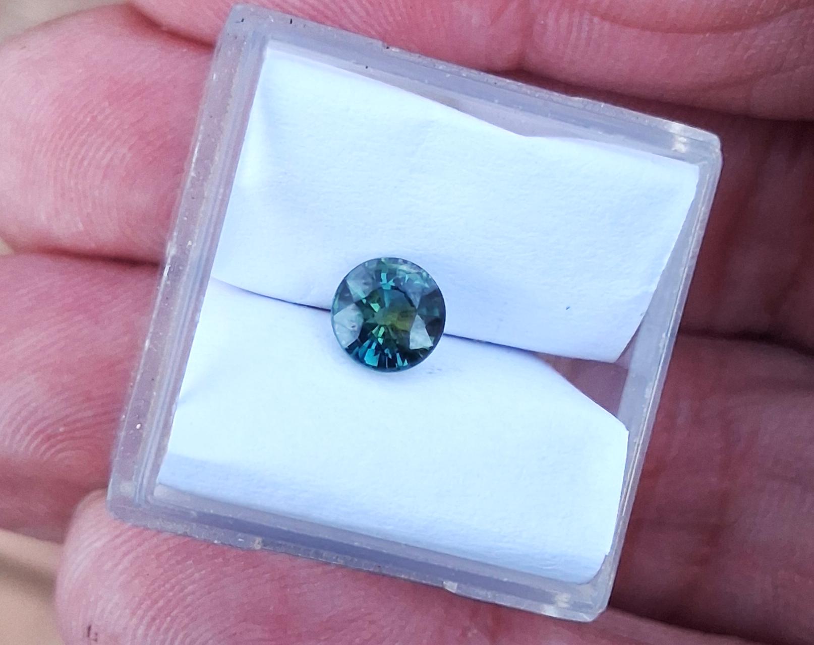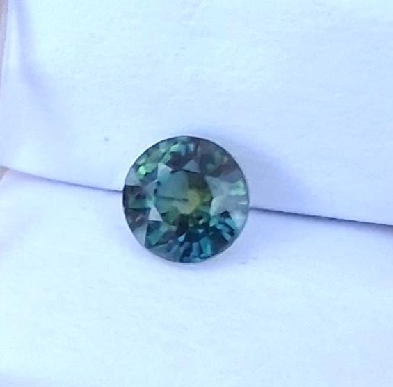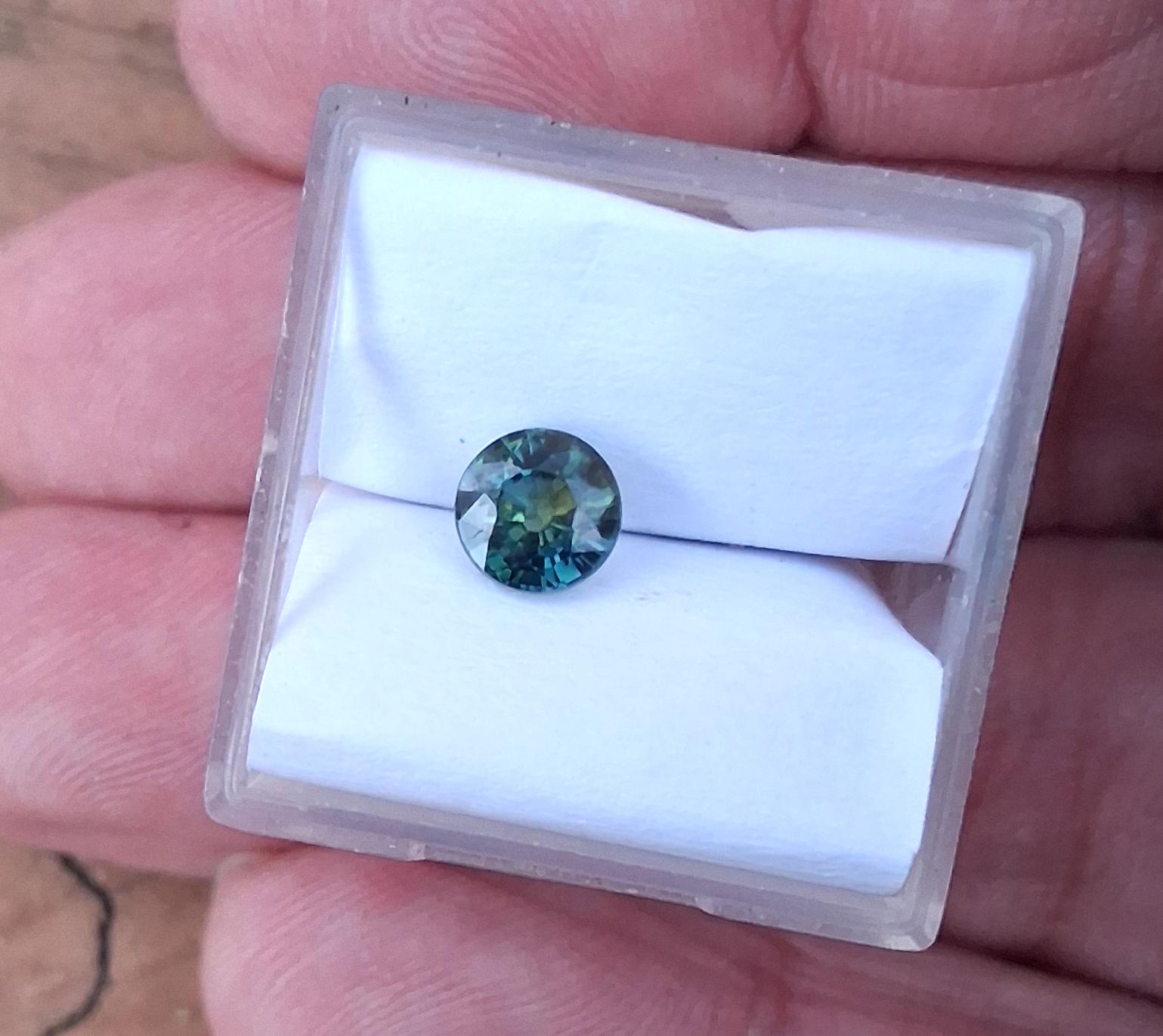Natural parti color round blue green sapphire for engagement ring, ethical gemstone from Ceylon. weight: 1.04 ct, size: 5.5 mm round, clarity : eye clean, inventory SBG711