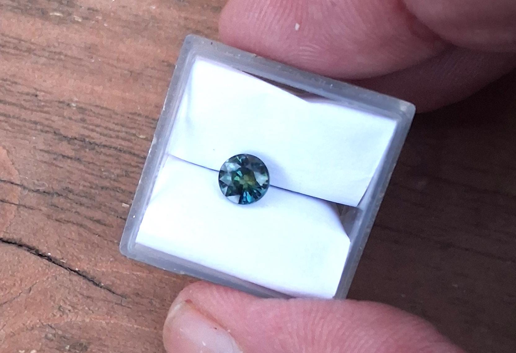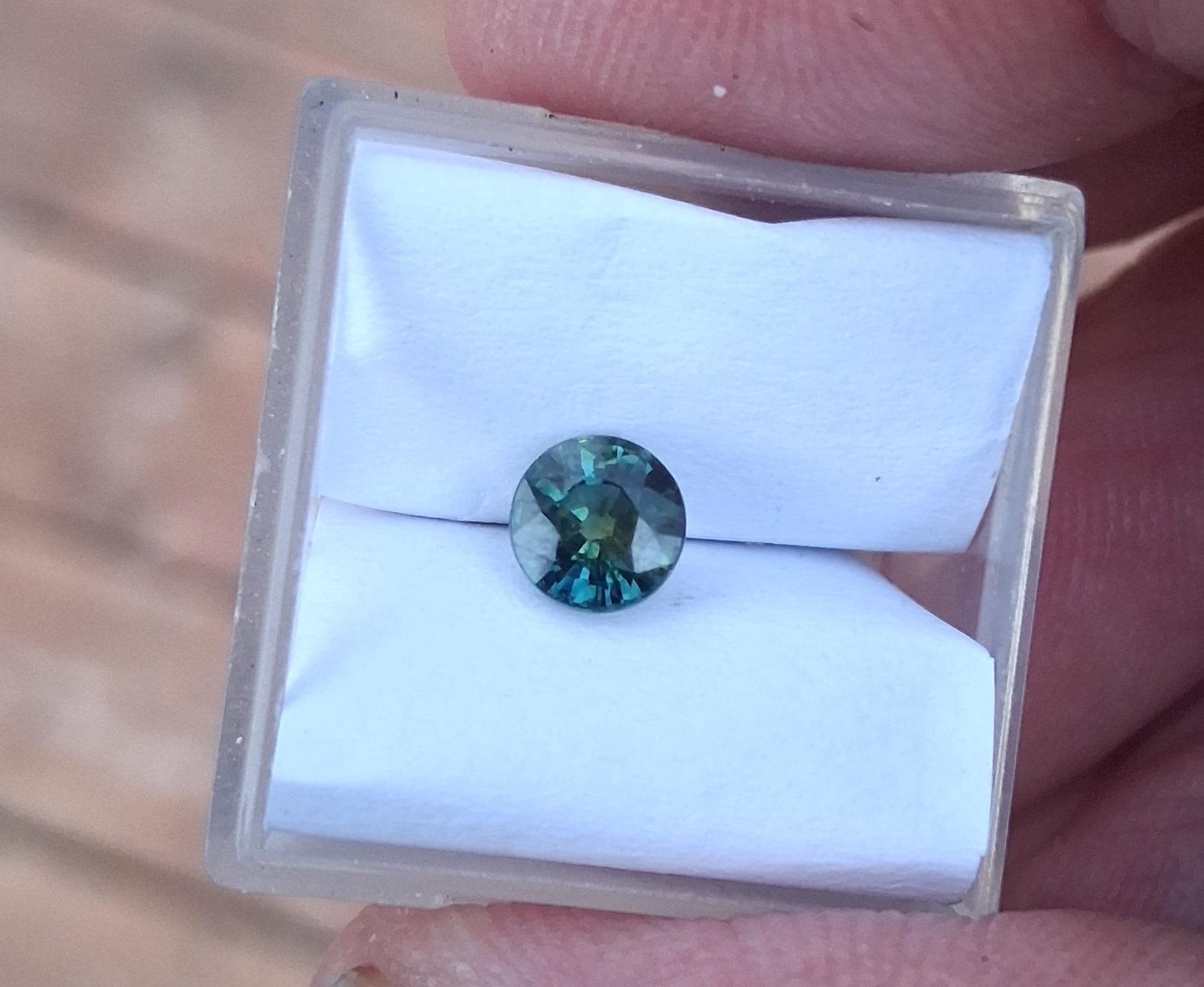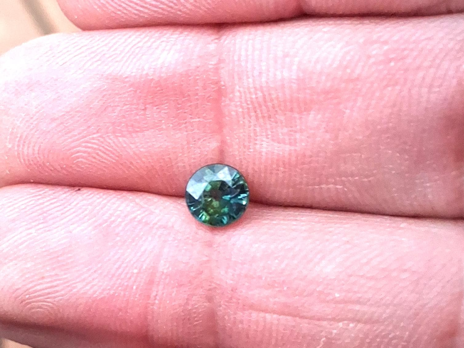 Natural parti color round blue green sapphire for engagement ring, ethical gemstone from Ceylon. weight: 1.04 ct, size: 5.5 mm round, clarity : eye clean, inventory SBG711