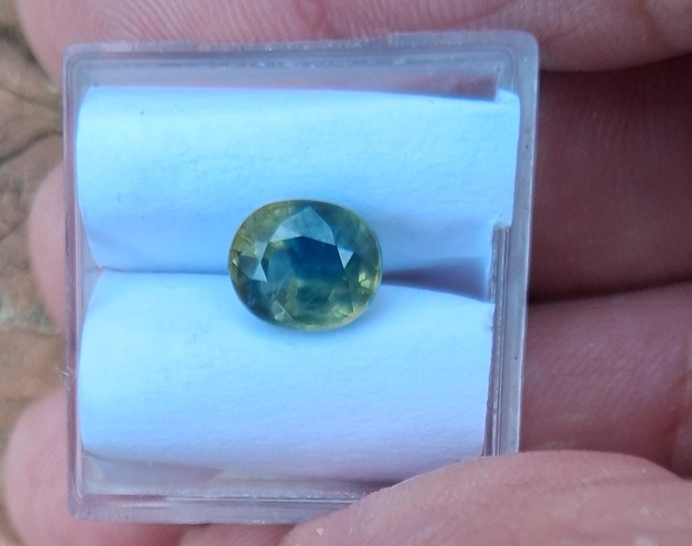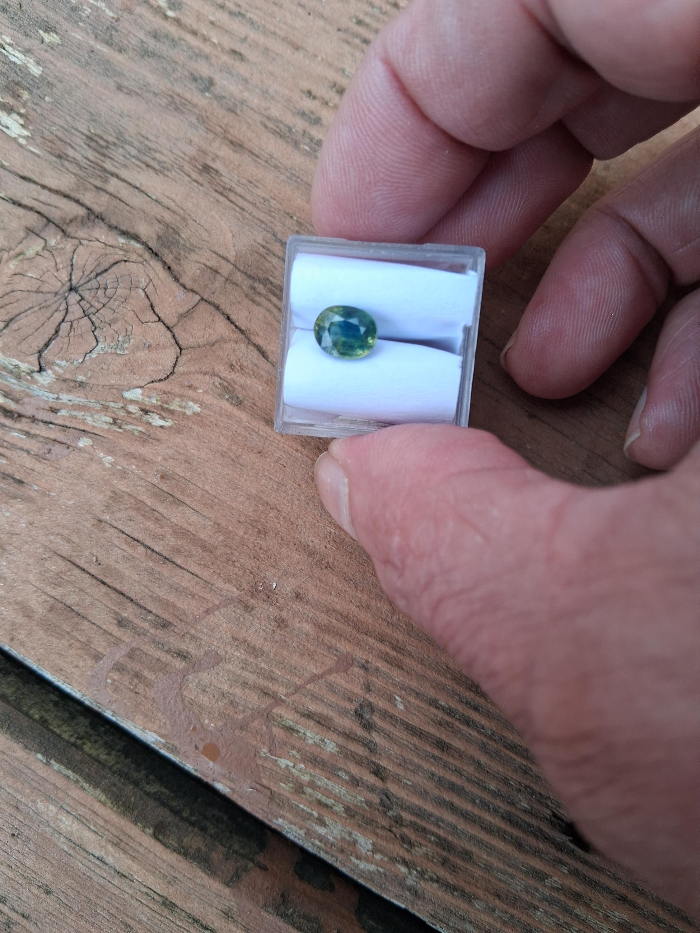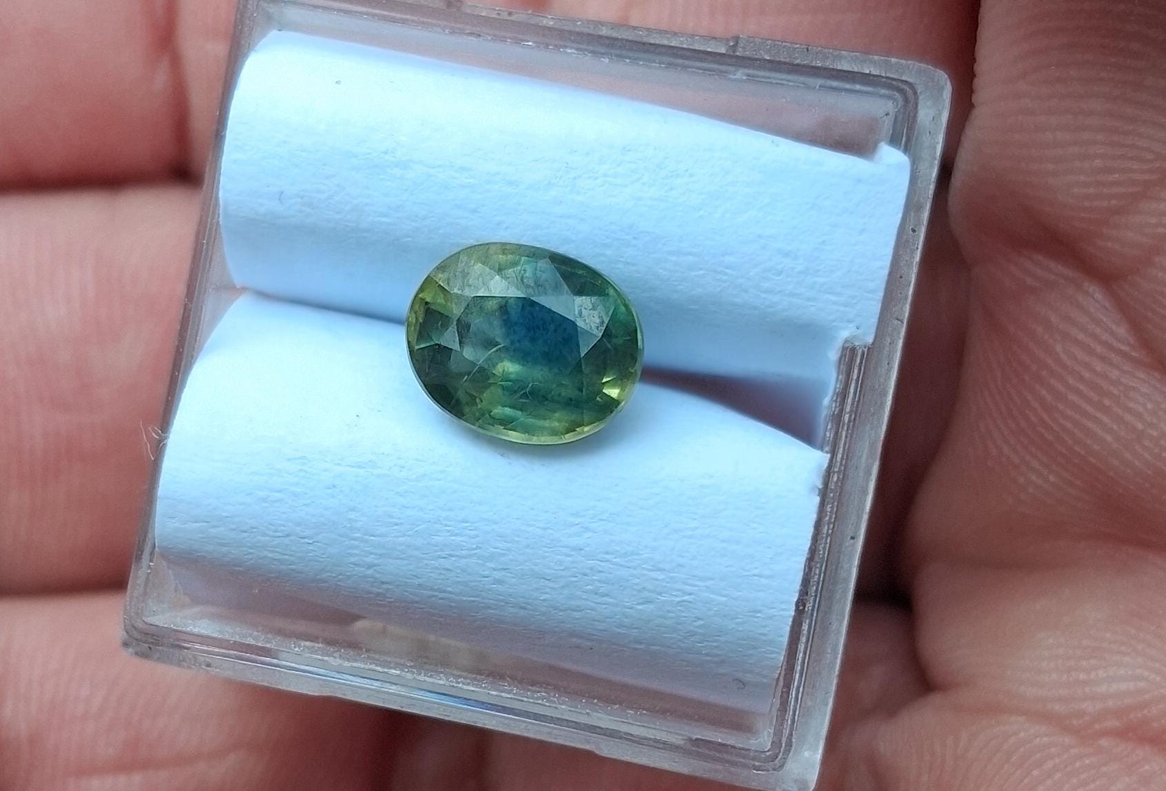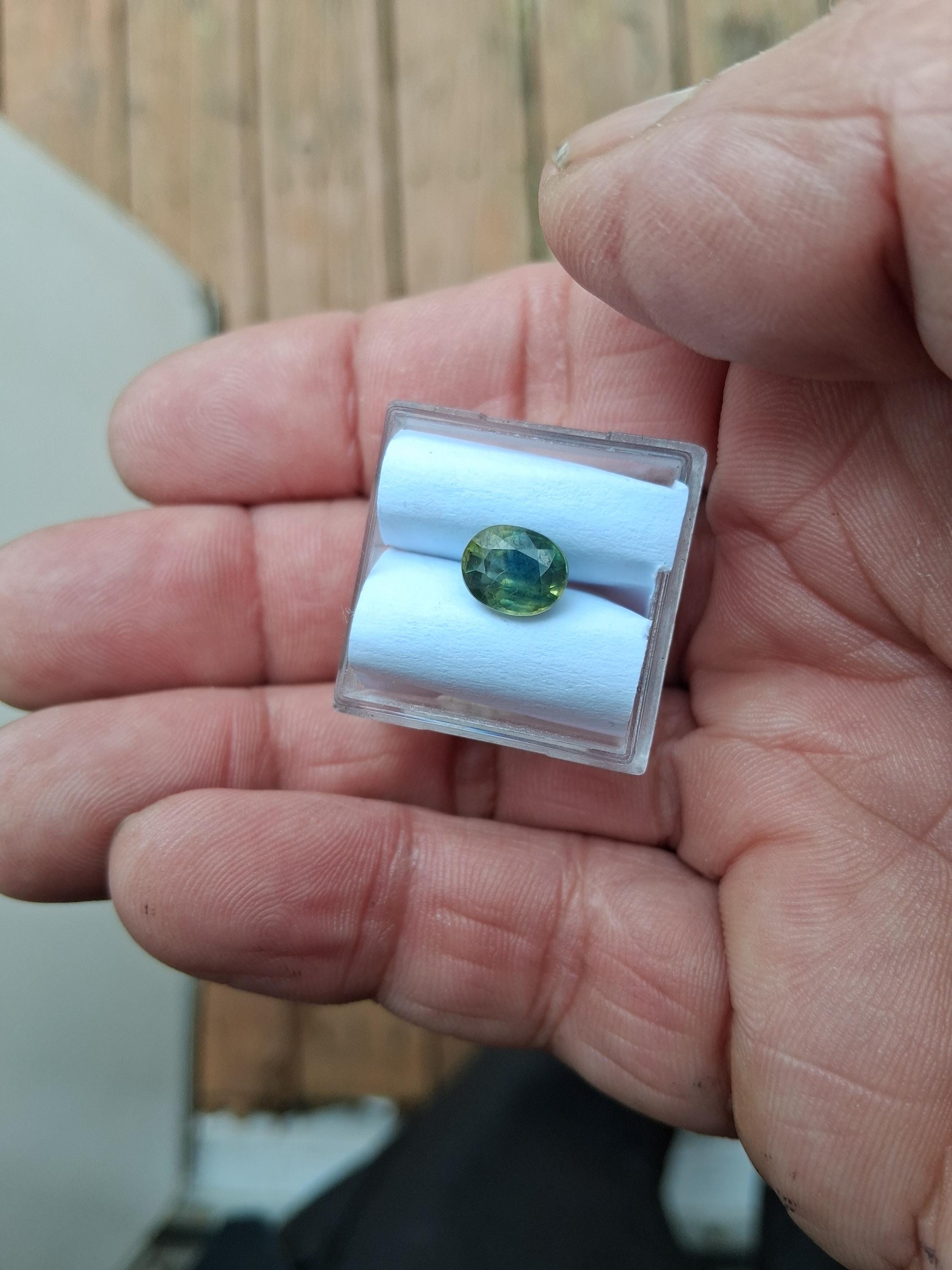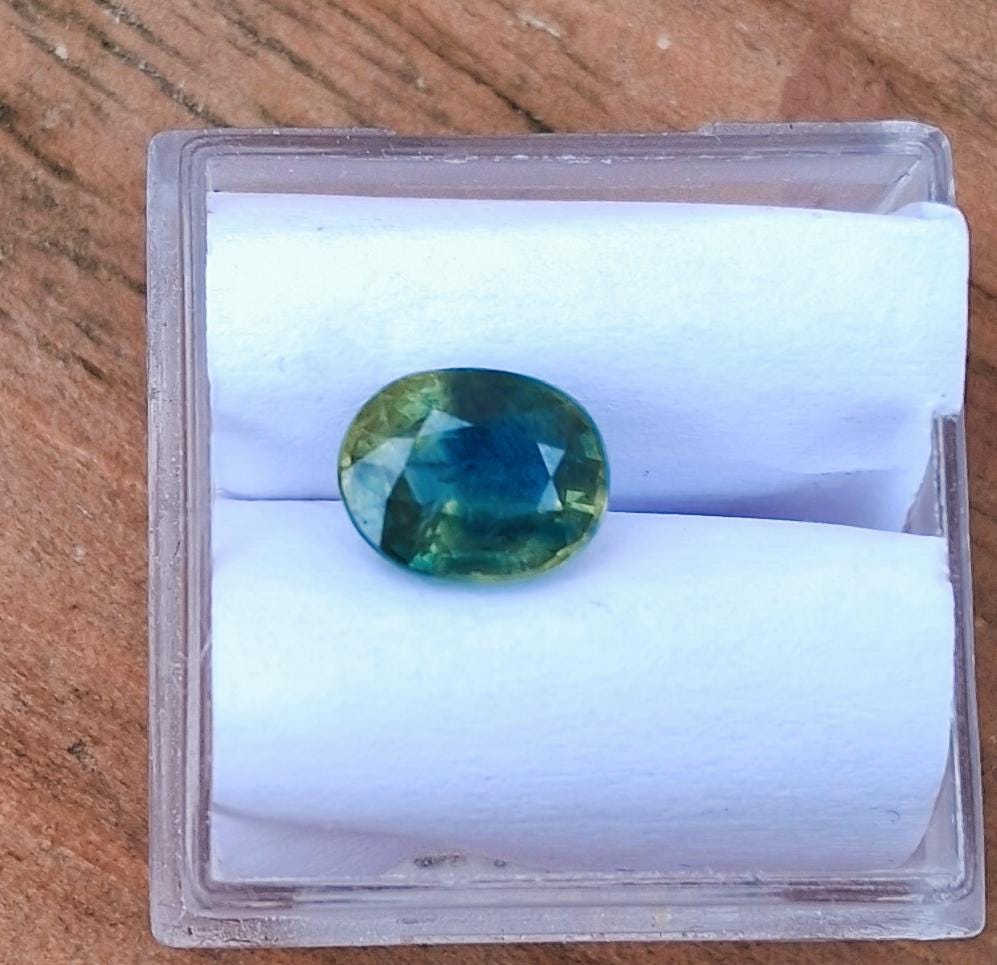 Unique natural parti color sapphire September birthstone for jewelry. size: 8x6.3 mm oval, weight: 2.10 cts, clarity: minor inclusions, color: multicolor yellow green, origin Ceylon inventory SBG721