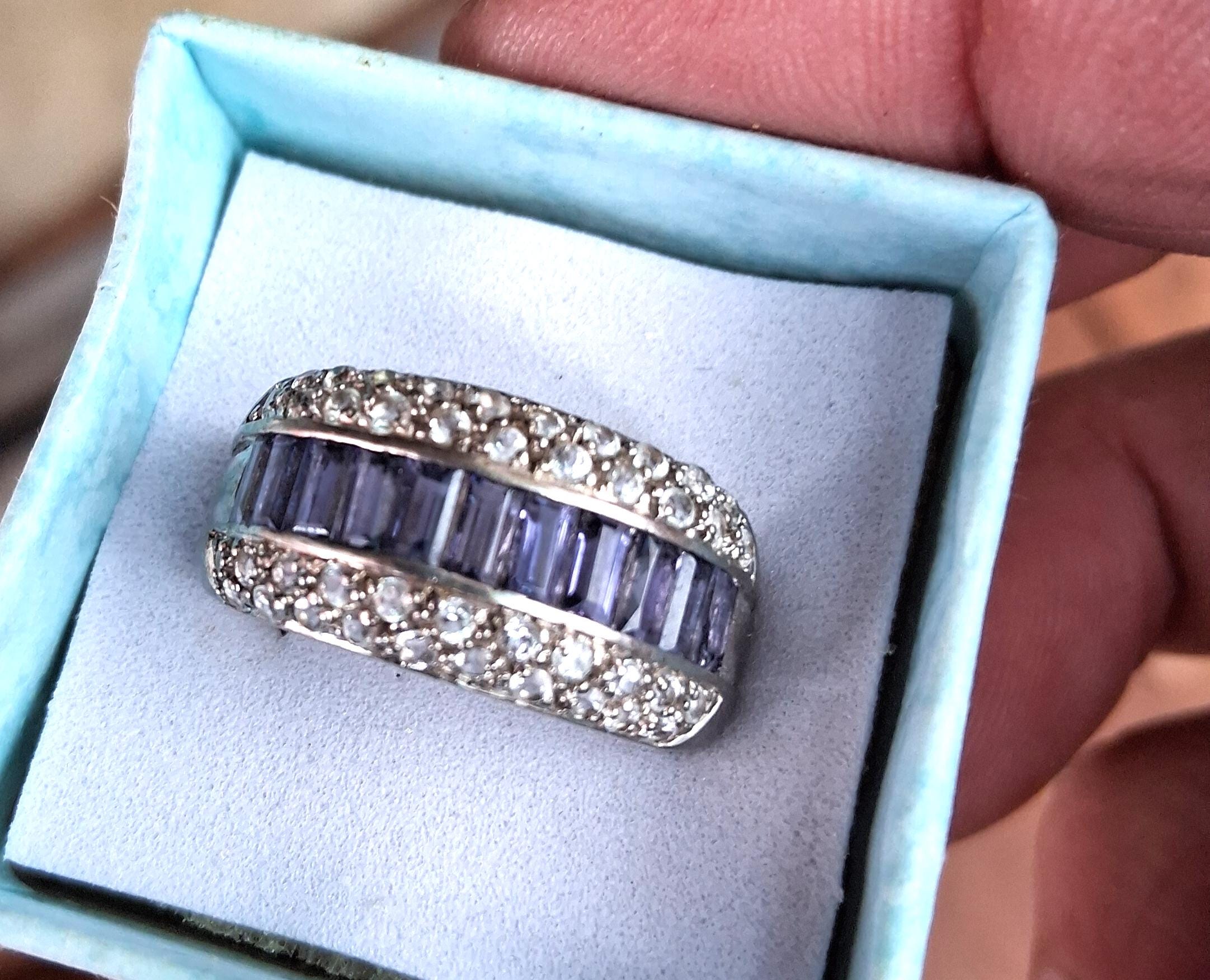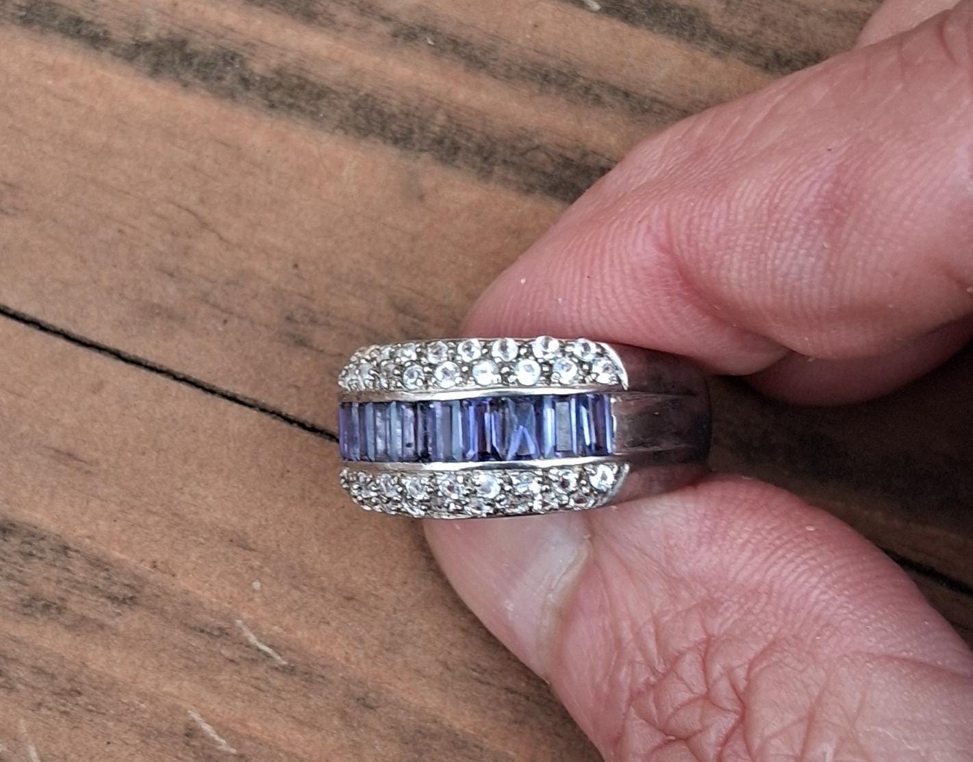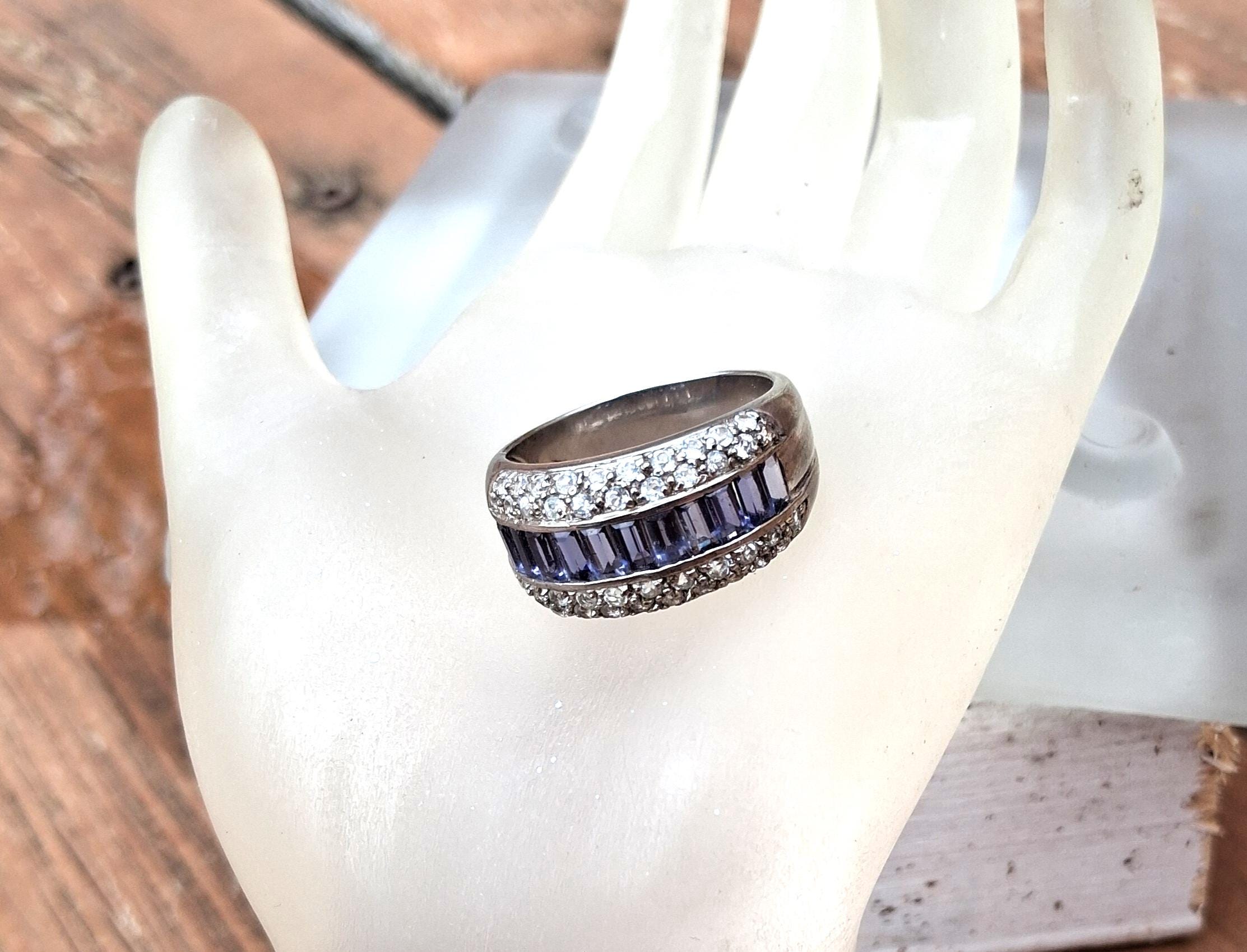 High quality well made design iolite Sterling silver ring with white topaz accent stones, one of a kind design ring for anniversary gift , ring size 8 3/4 US.