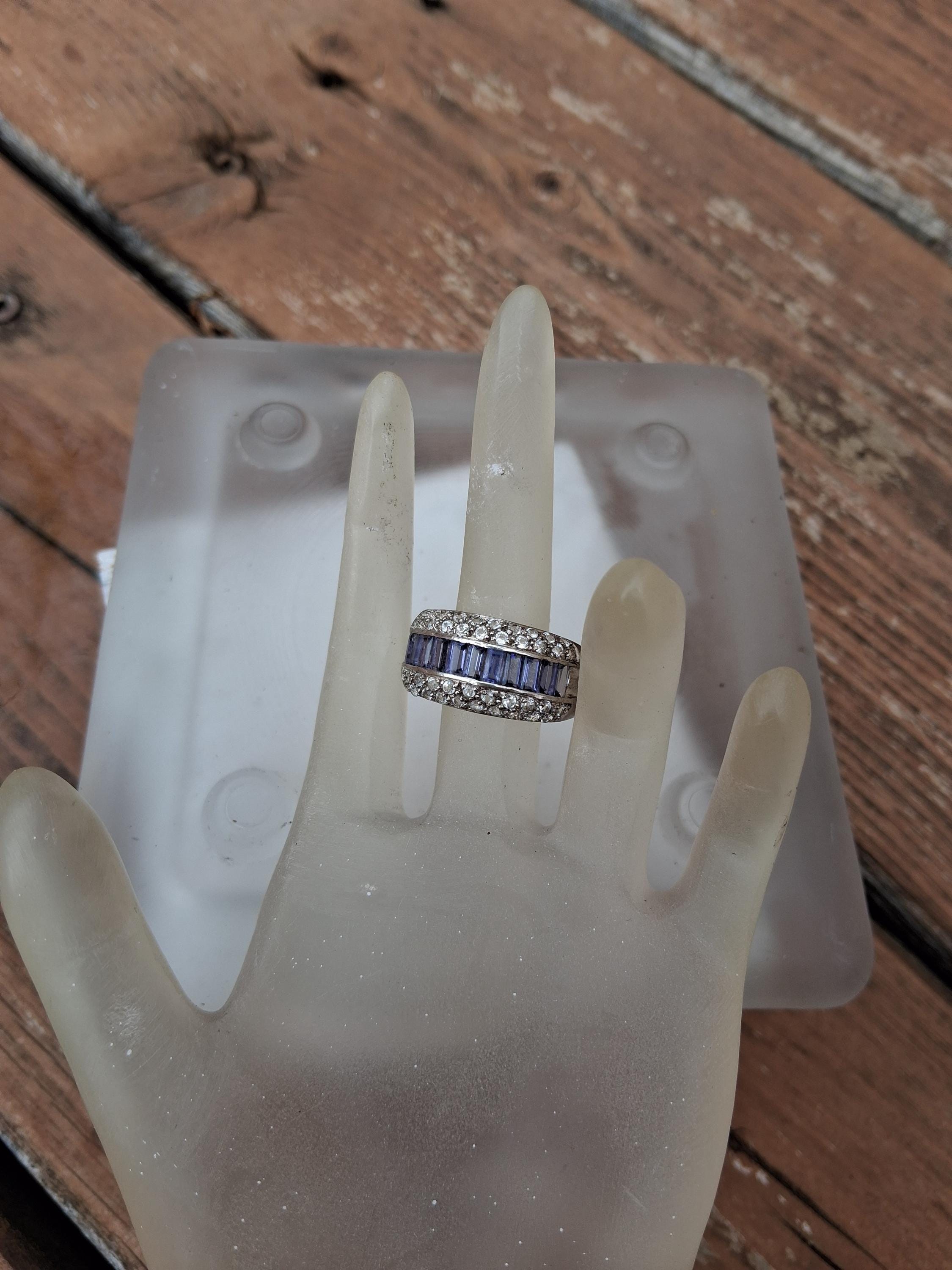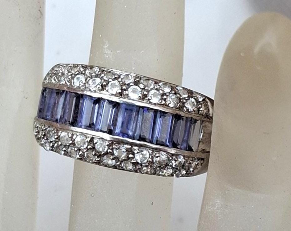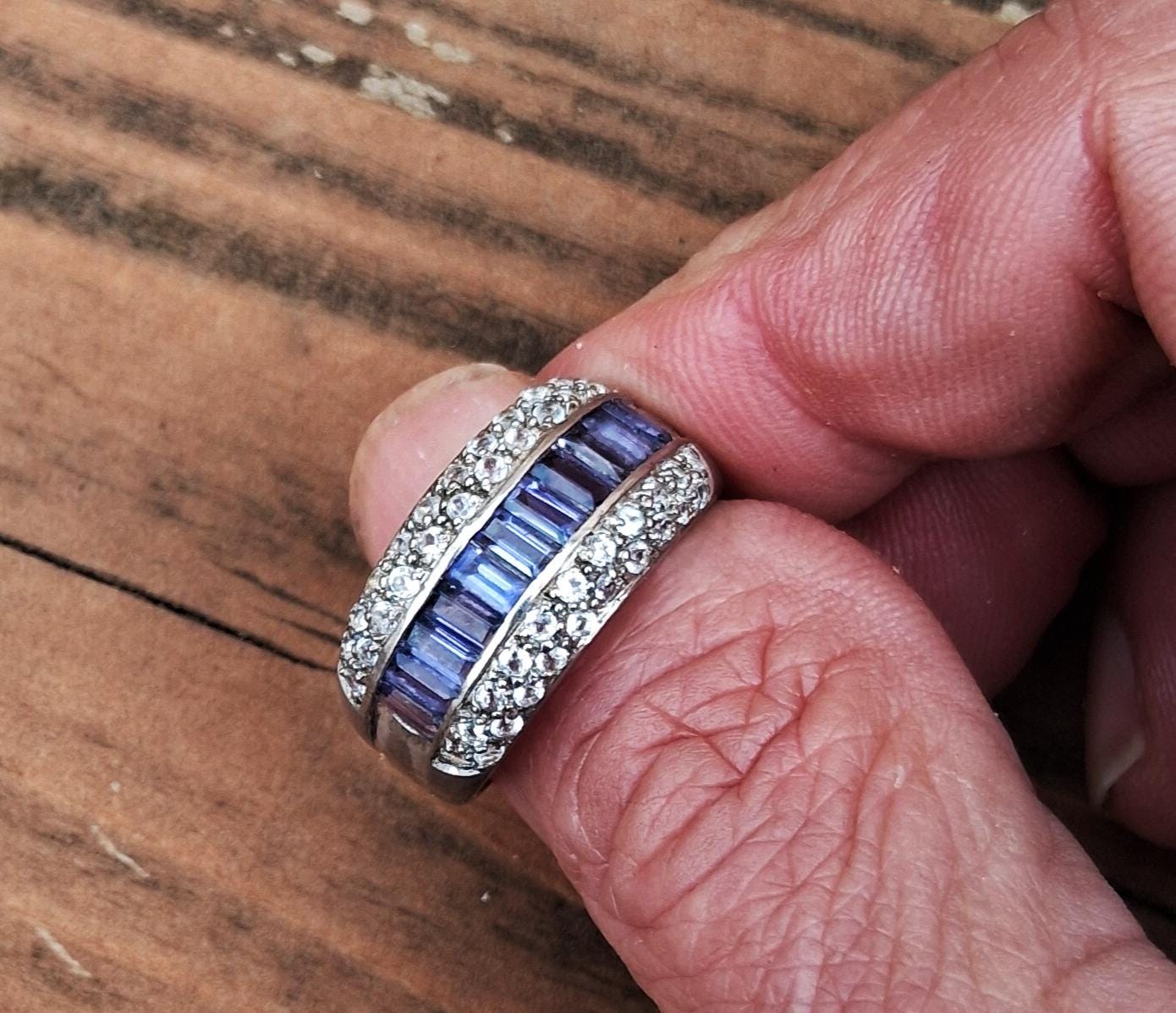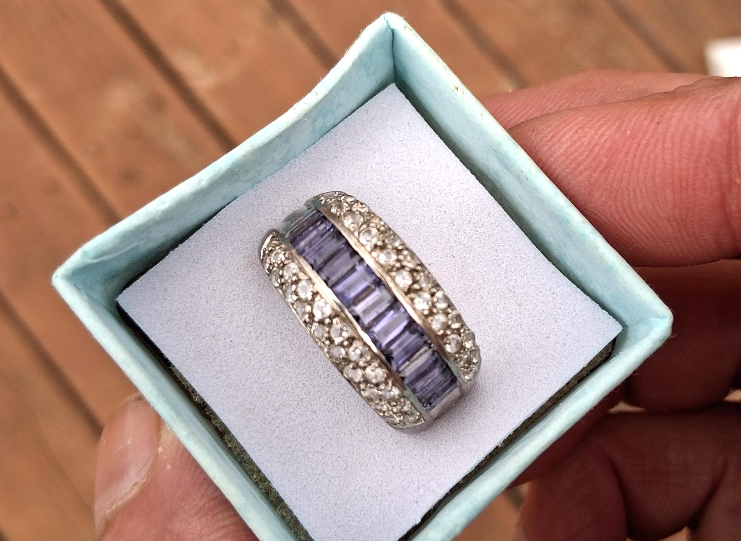 High quality well made design iolite Sterling silver ring with white topaz accent stones, one of a kind design ring for anniversary gift , ring size 8 3/4 US.