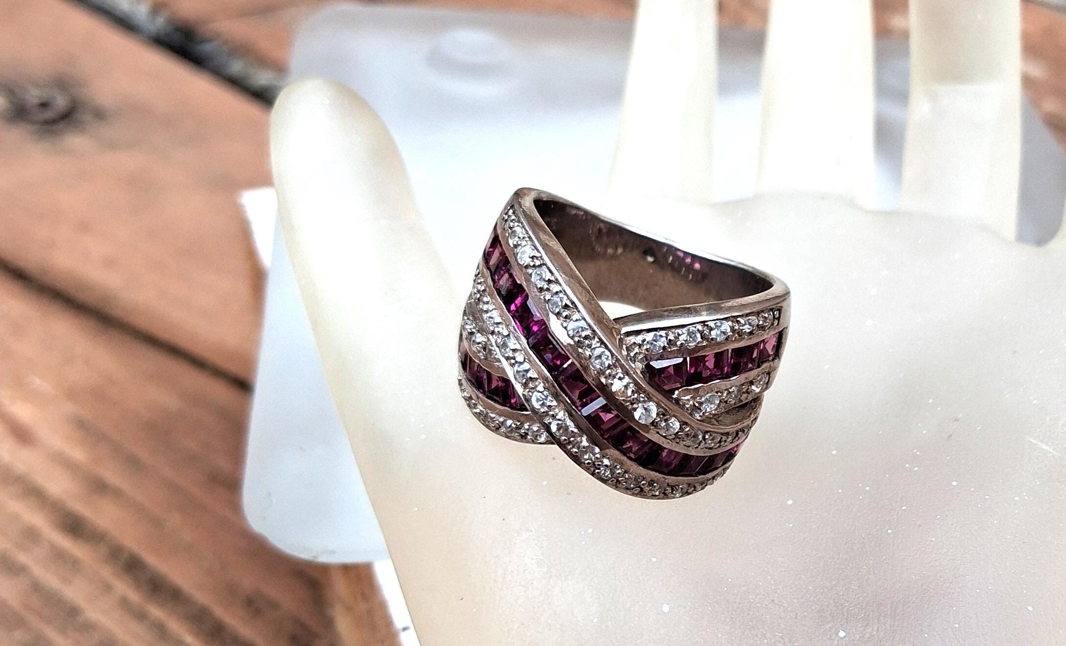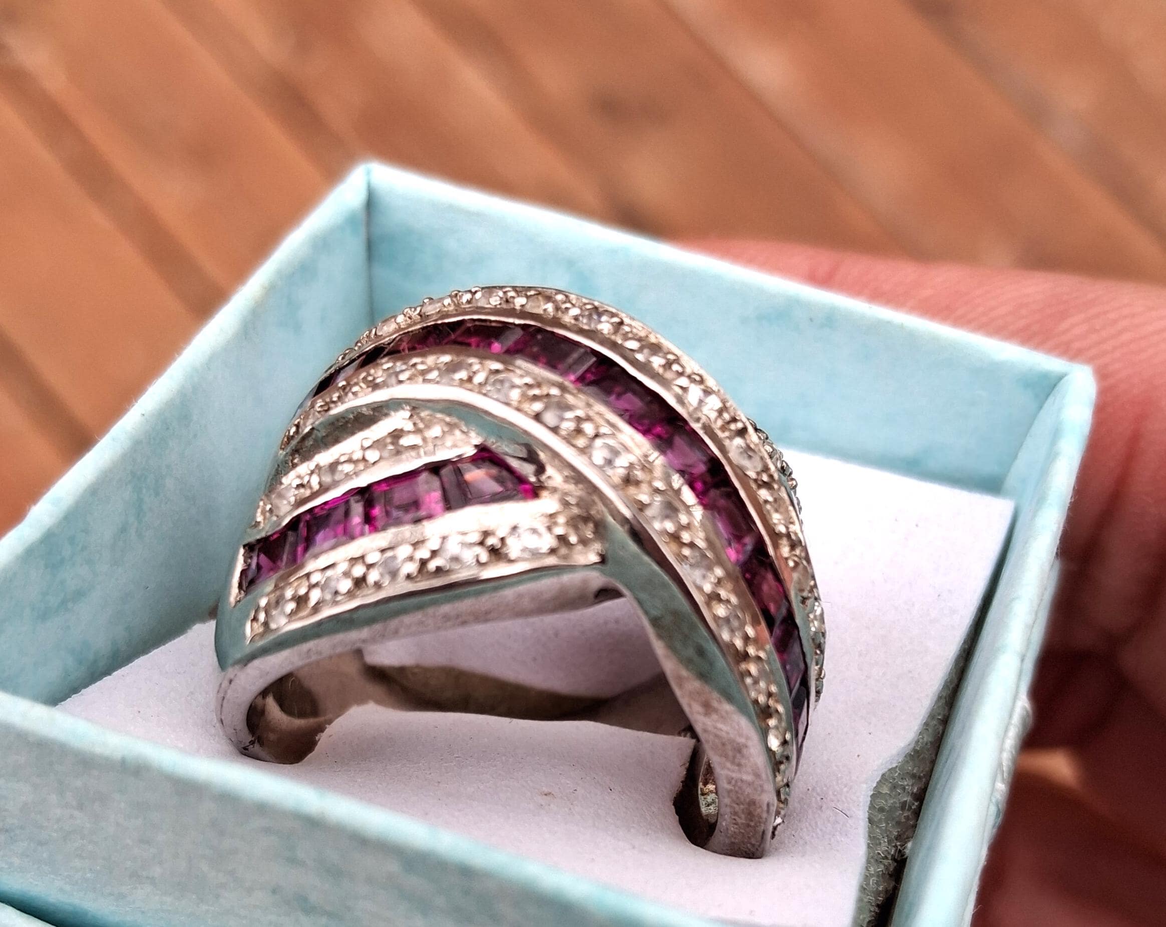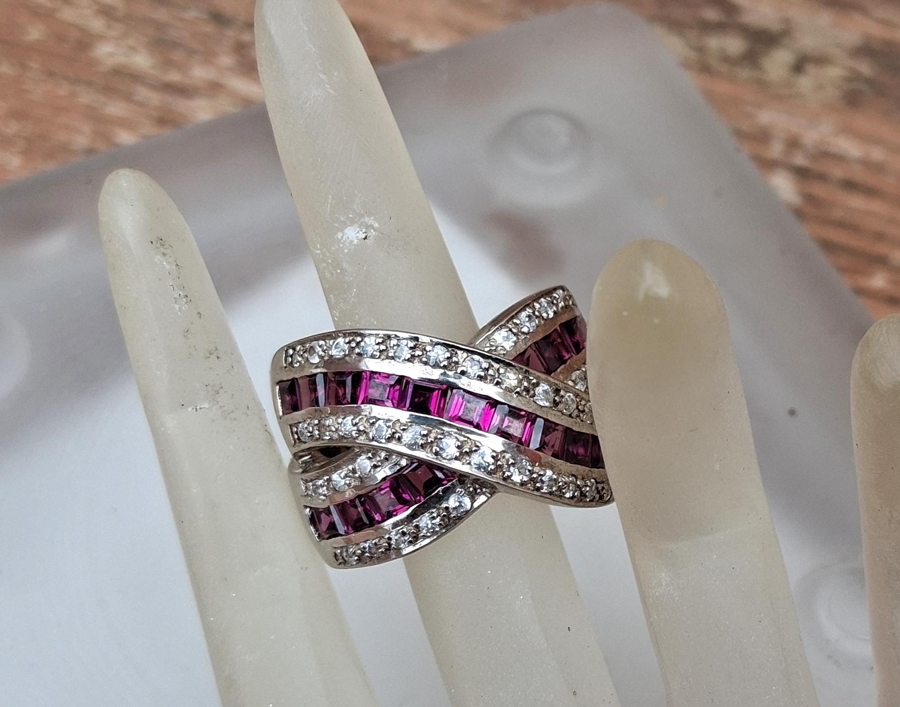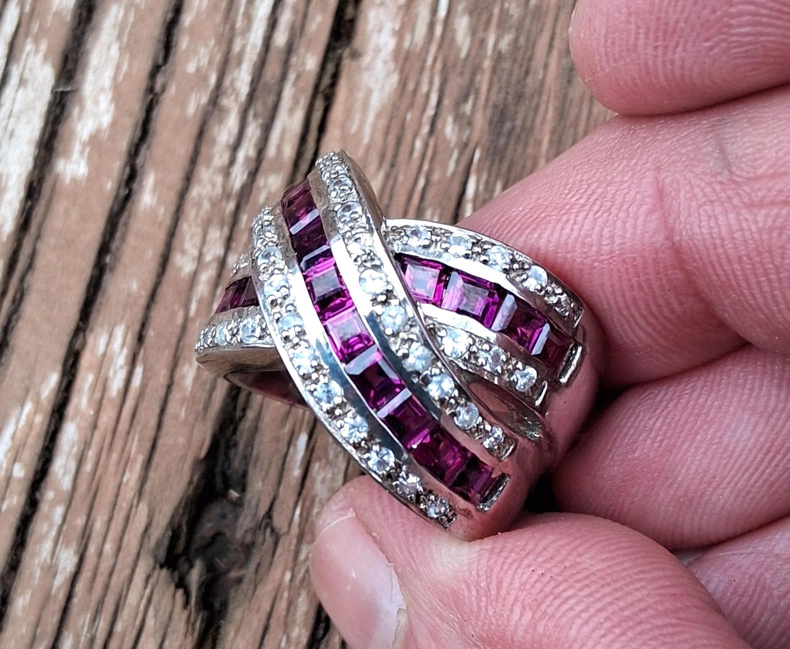 Sterling silver ring rhodolite garnet channel setting, January gemstone. Ring size 9 1/2 US