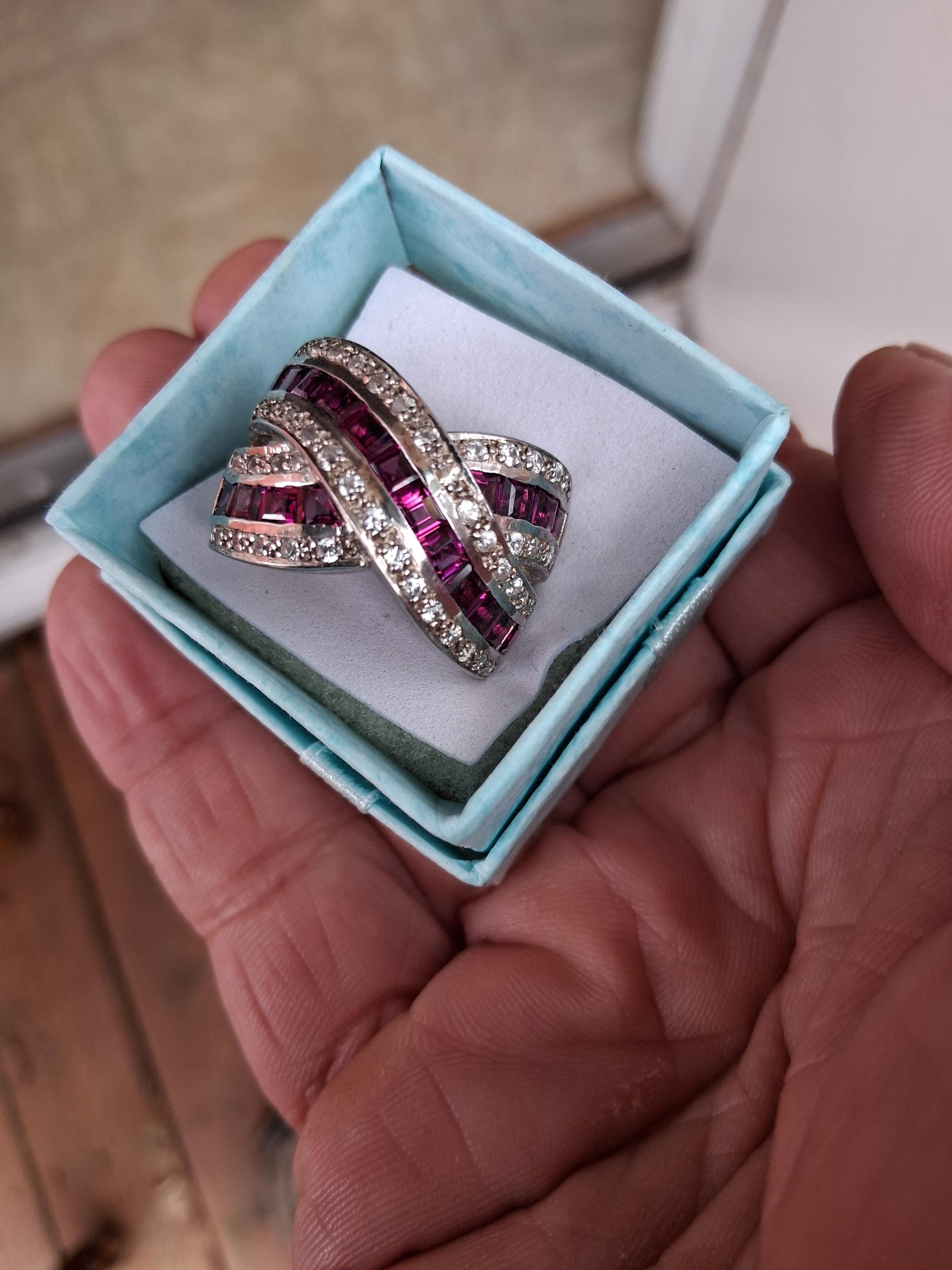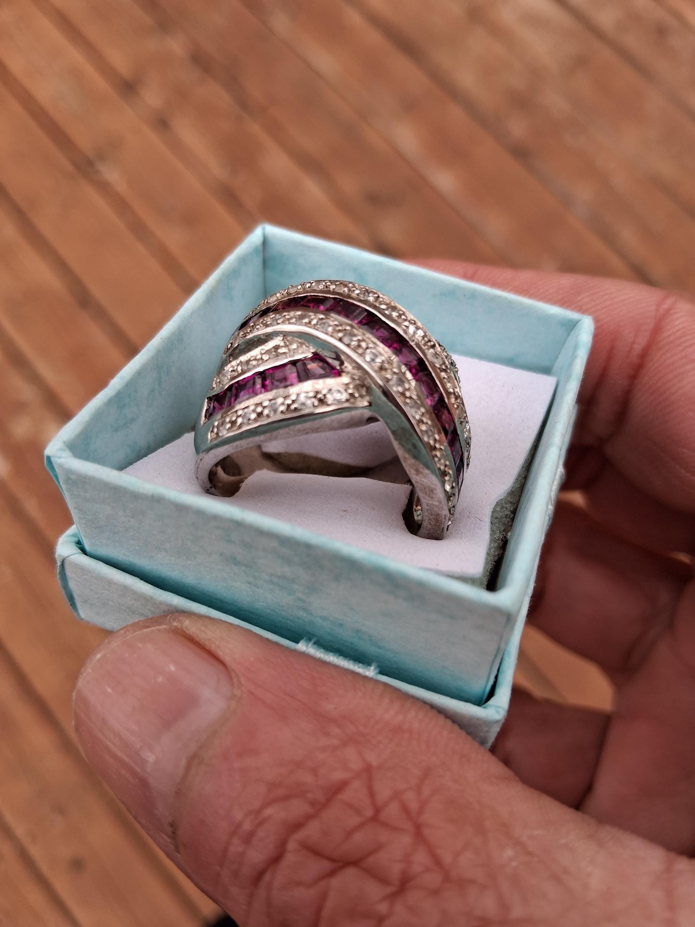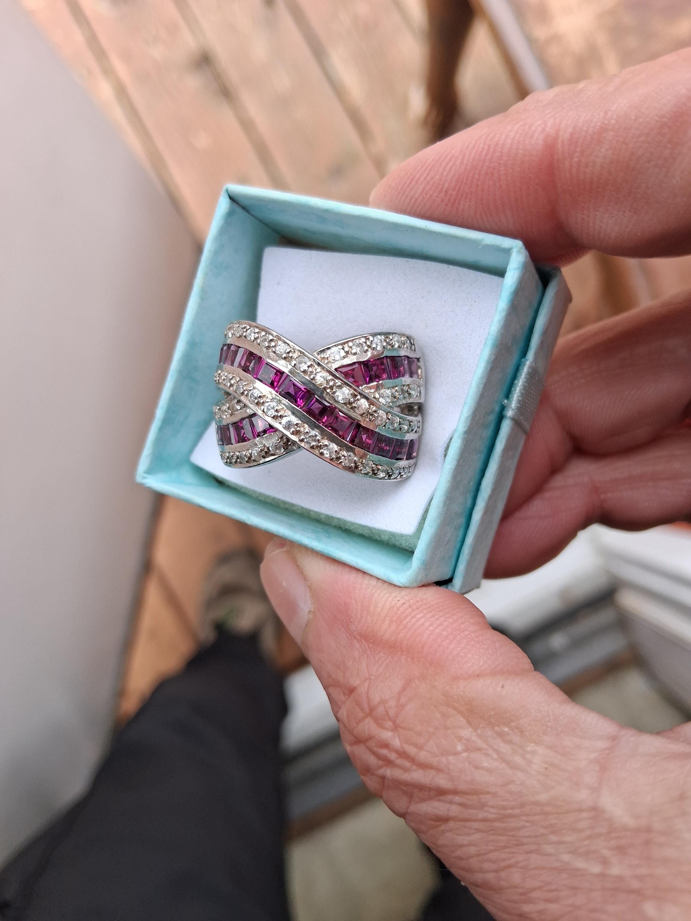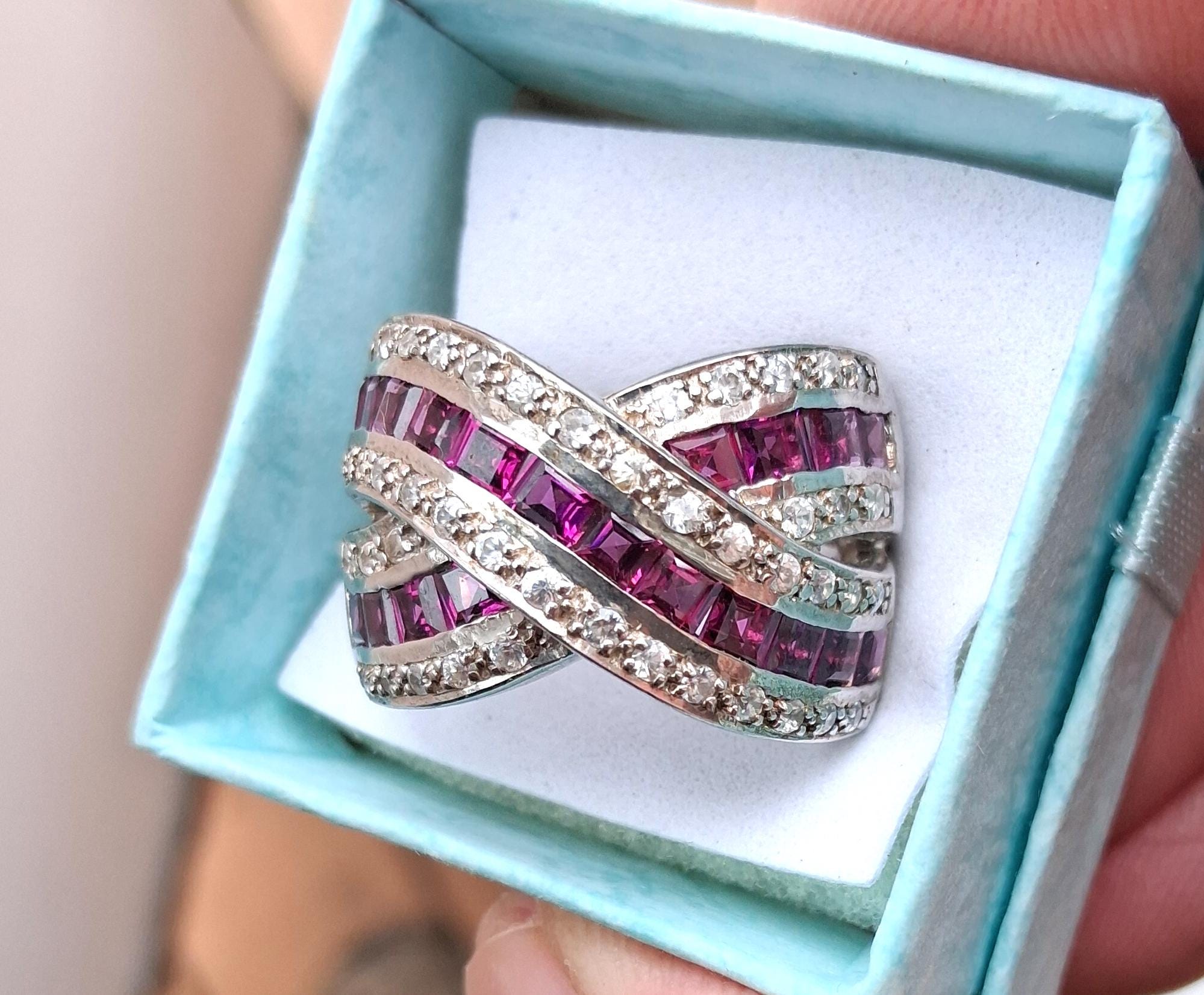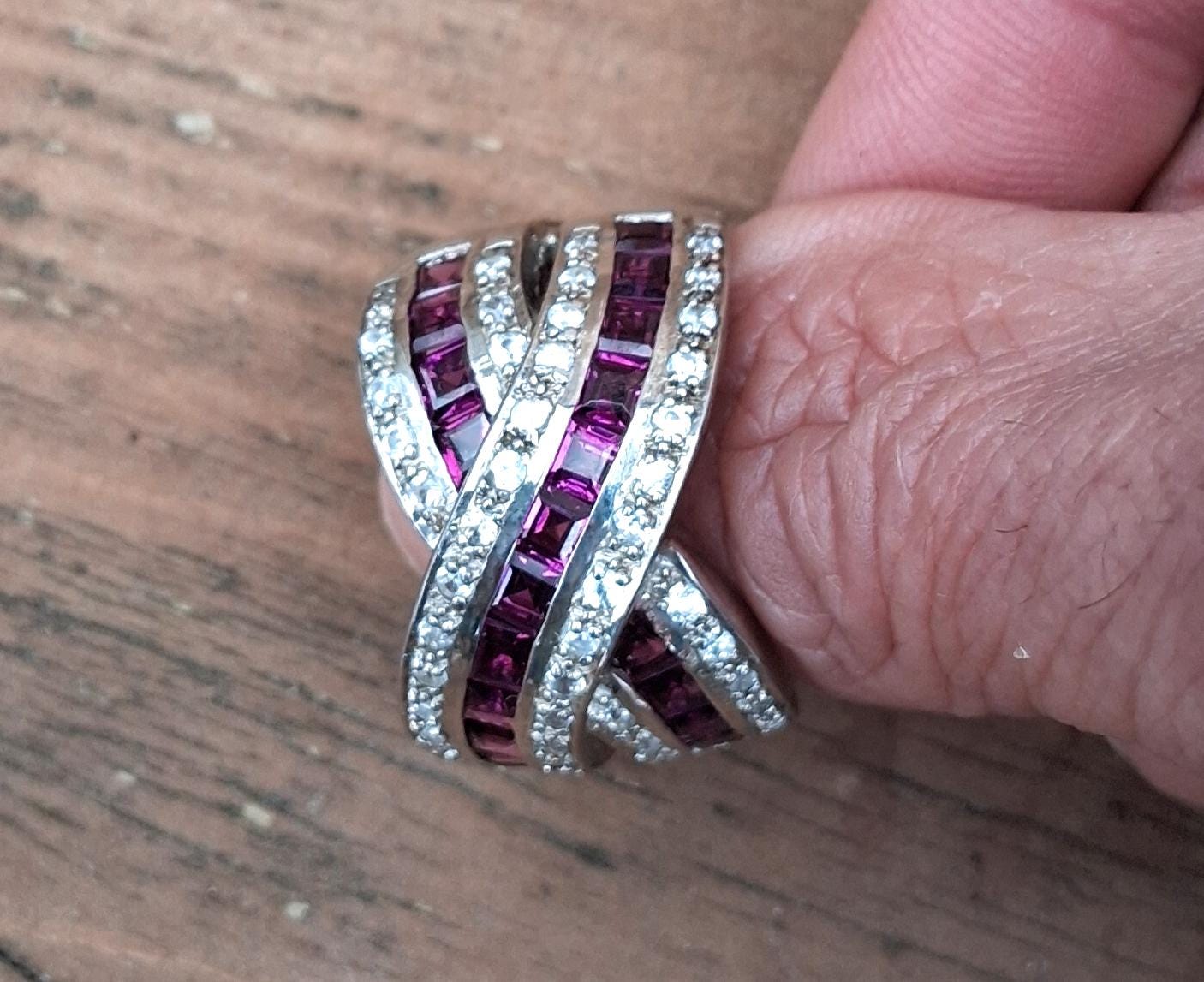 Sterling silver ring rhodolite garnet channel setting, January gemstone. Ring size 9 1/2 US